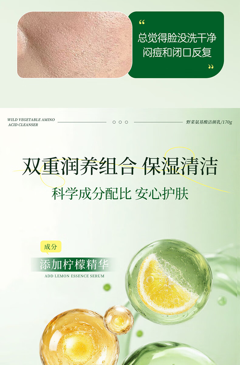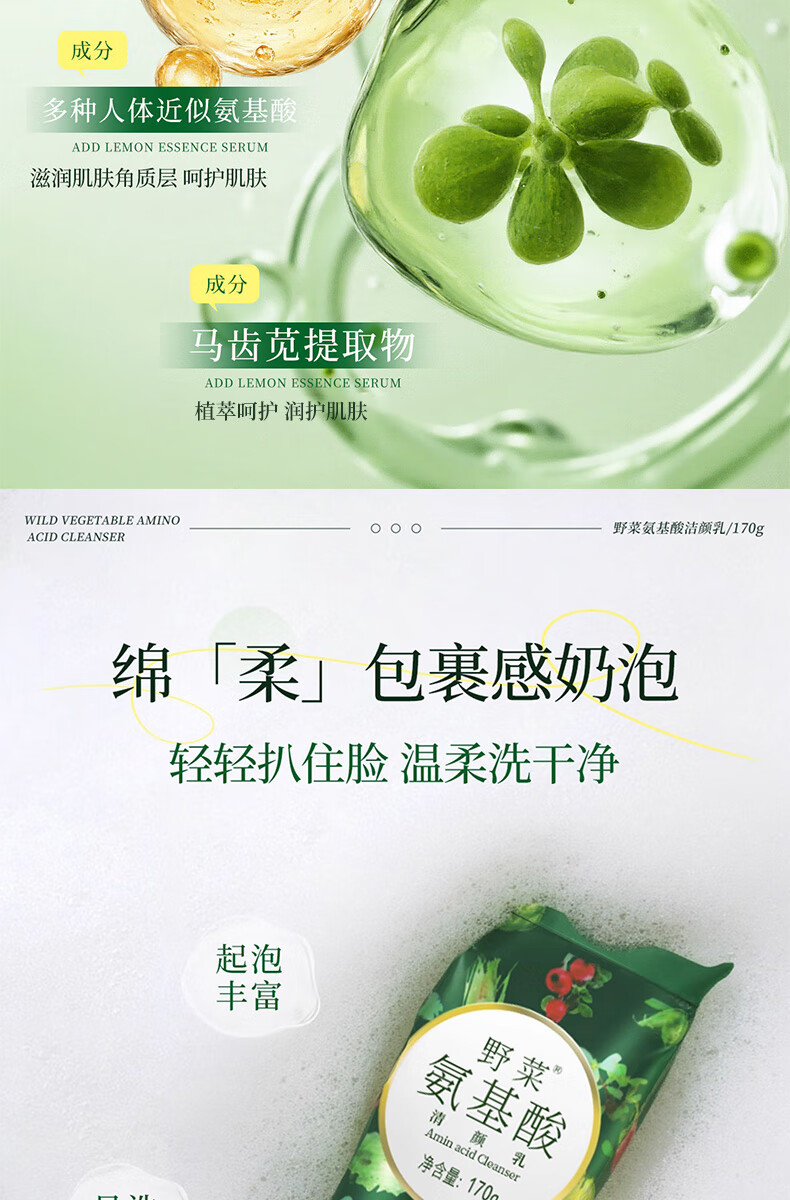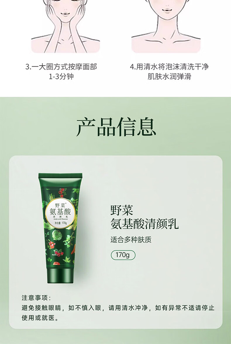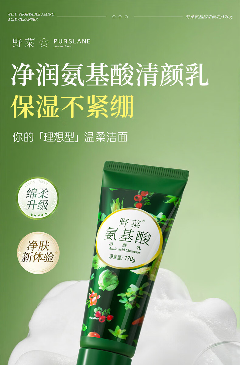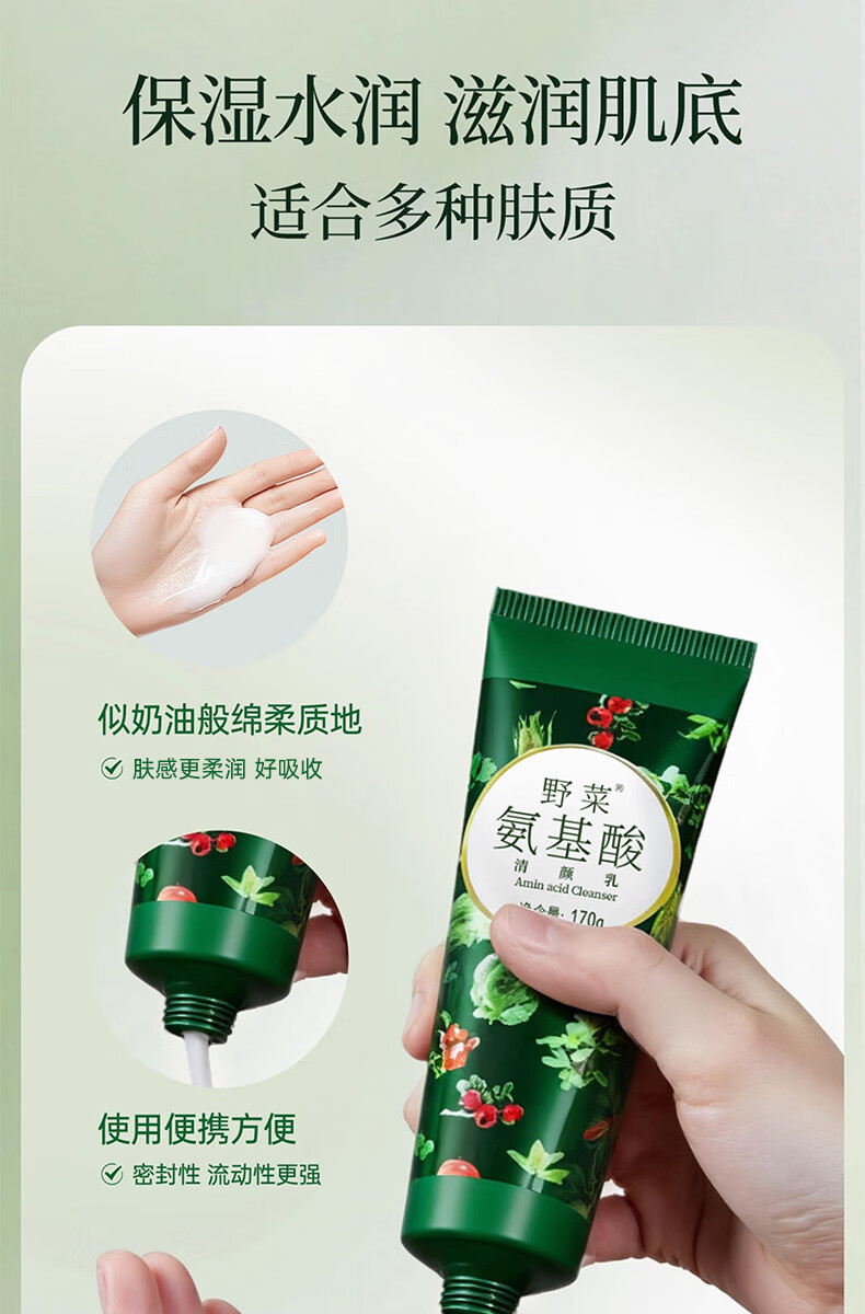 野菜氨基酸洗面奶深层清洁补水毛孔泡沫控油洁面乳 氨基酸清颜乳 170g