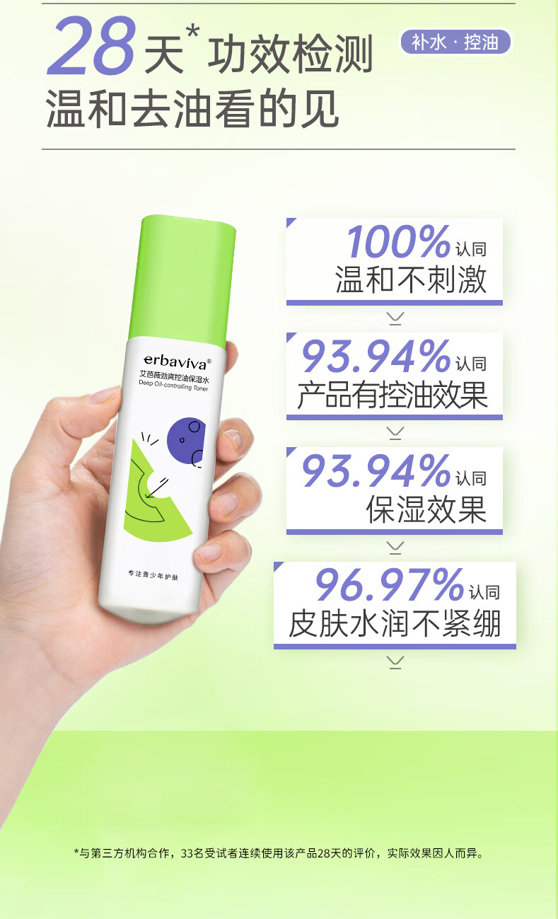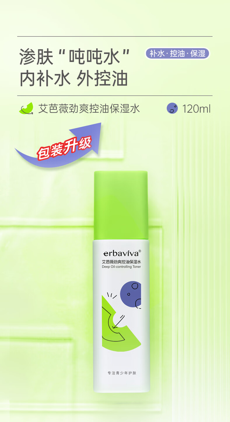 艾芭薇(Erbaviva) 劲爽控油保湿水120ml 清爽保湿青春期学生油痘肌护肤品油皮适用 120ml
