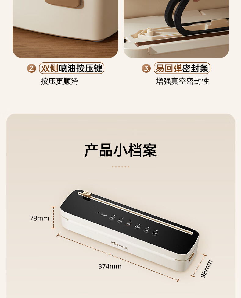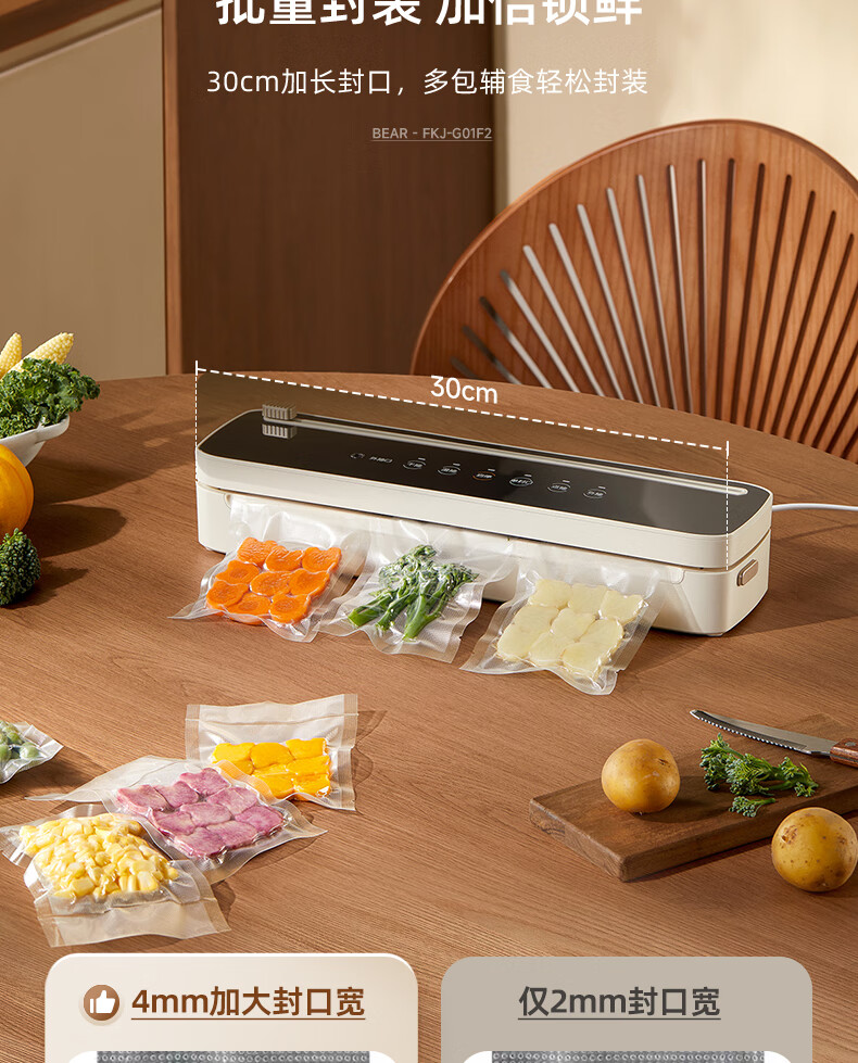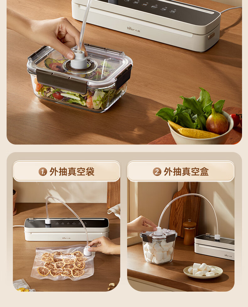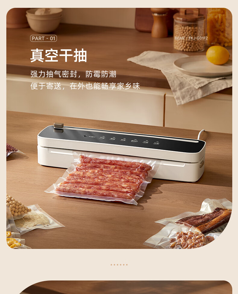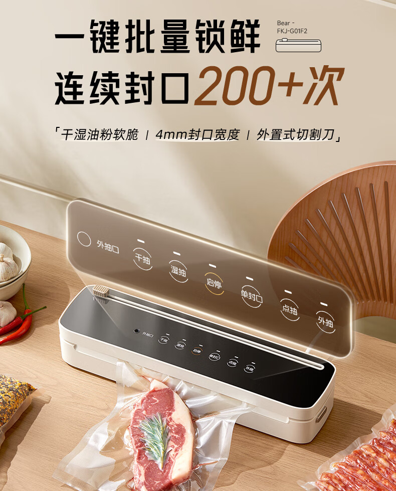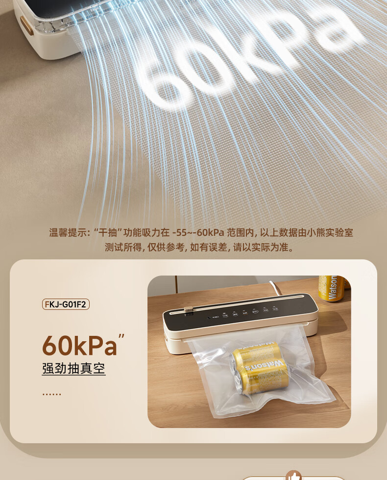 小熊(Bear)真空压缩封口机 家用商用全自动封口真空一体机 干湿两用抽真空密封机包装机 FKJ-G01F2