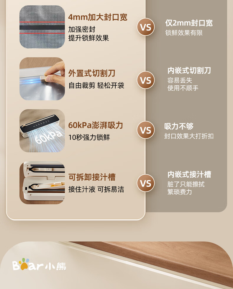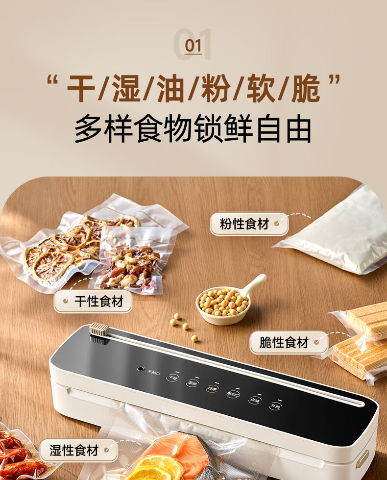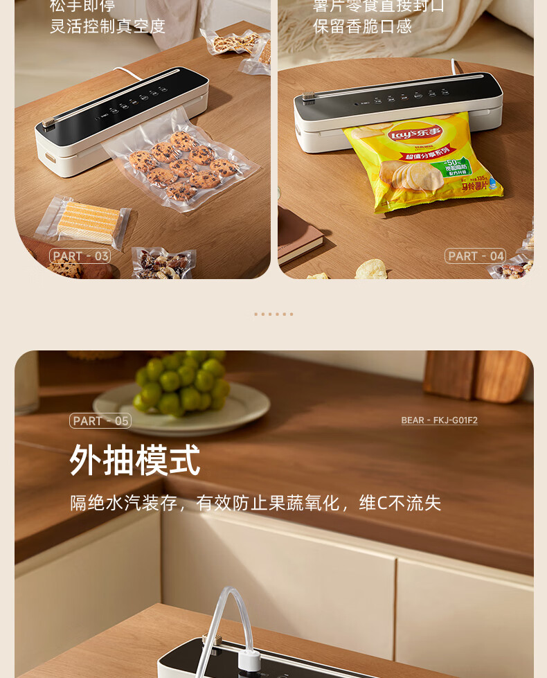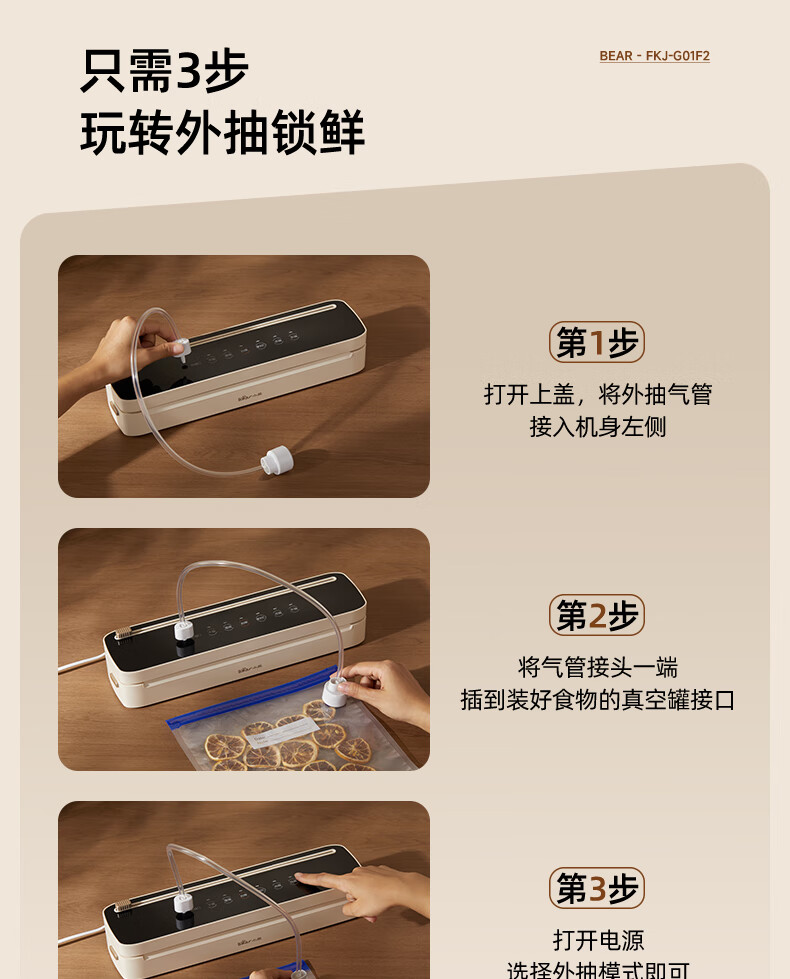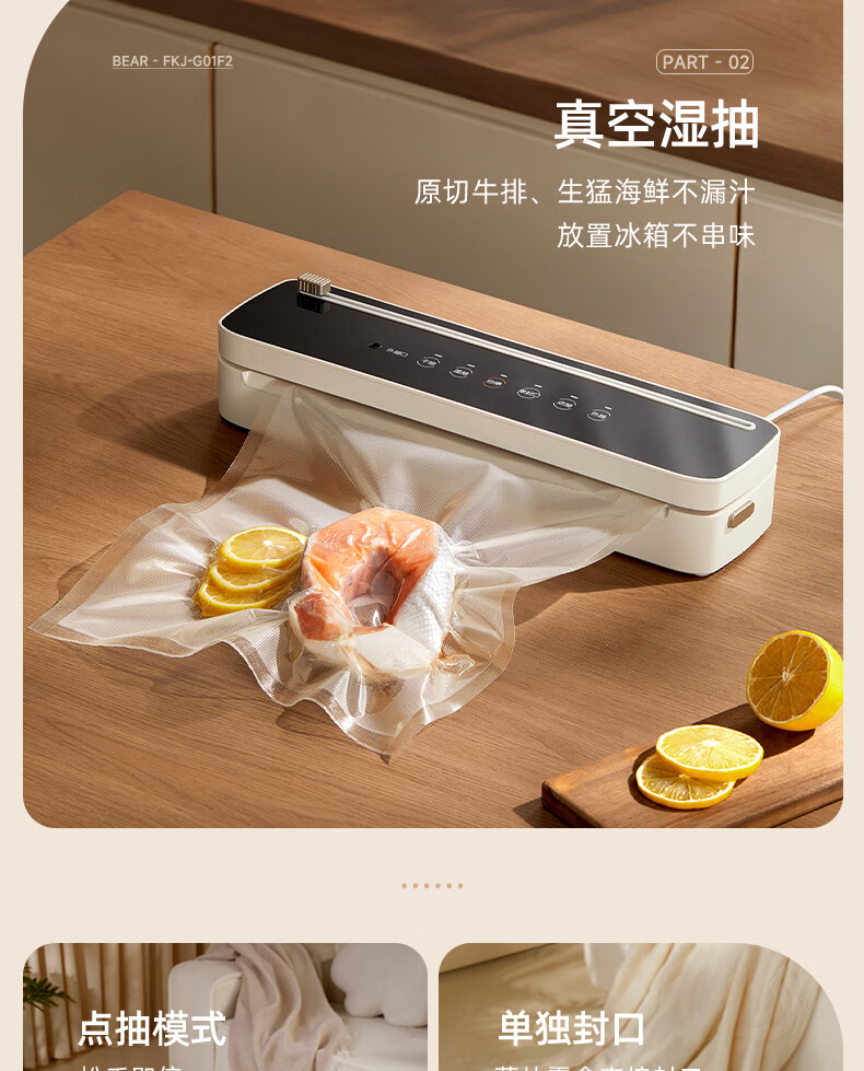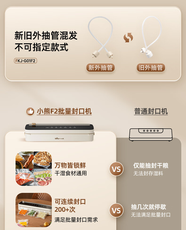 小熊(Bear)真空压缩封口机 家用商用全自动封口真空一体机 干湿两用抽真空密封机包装机 FKJ-G01F2