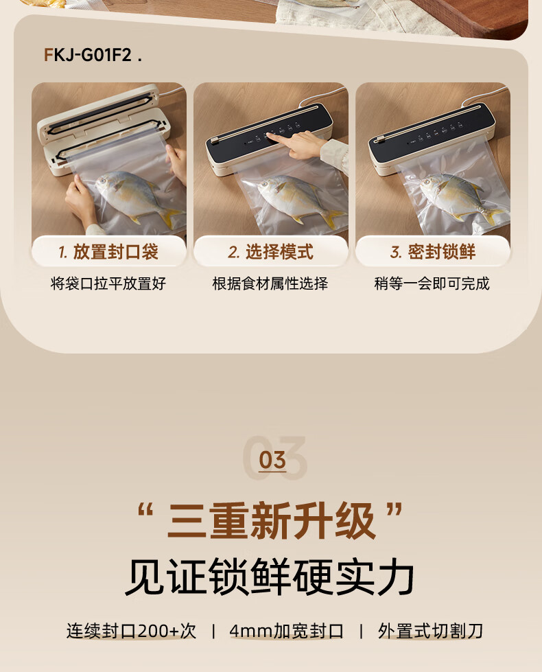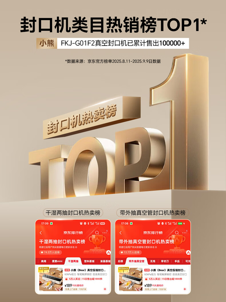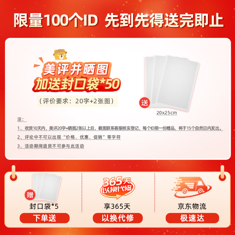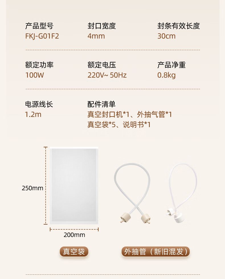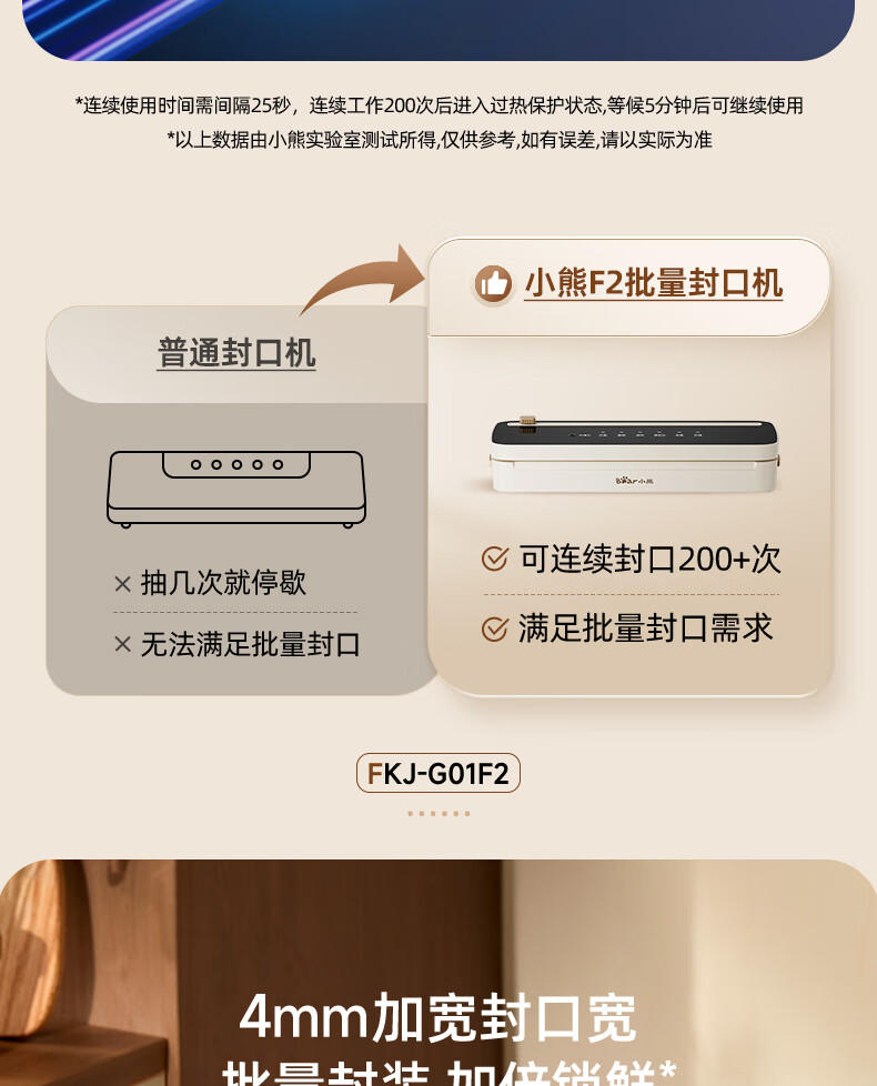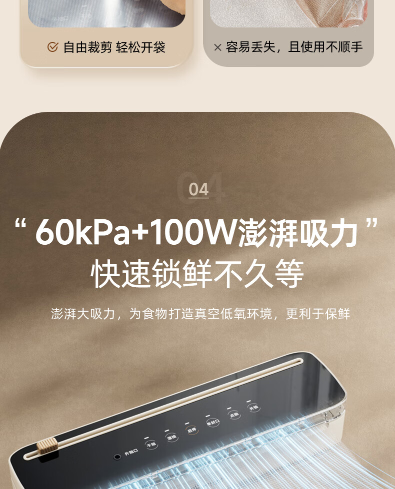 小熊(Bear)真空压缩封口机 家用商用全自动封口真空一体机 干湿两用抽真空密封机包装机 FKJ-G01F2