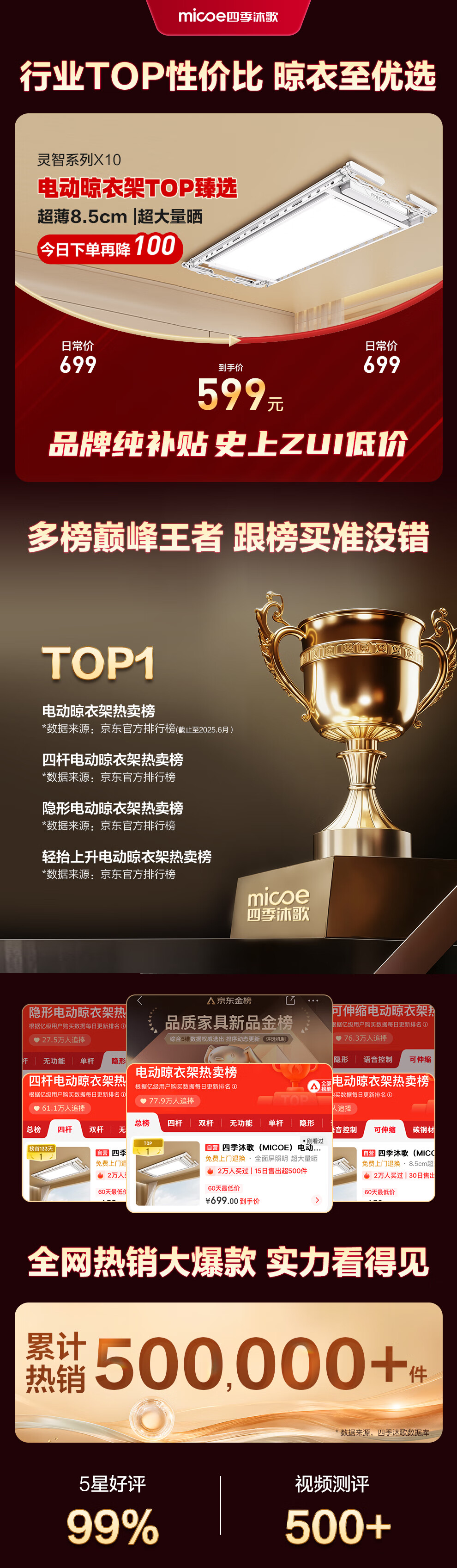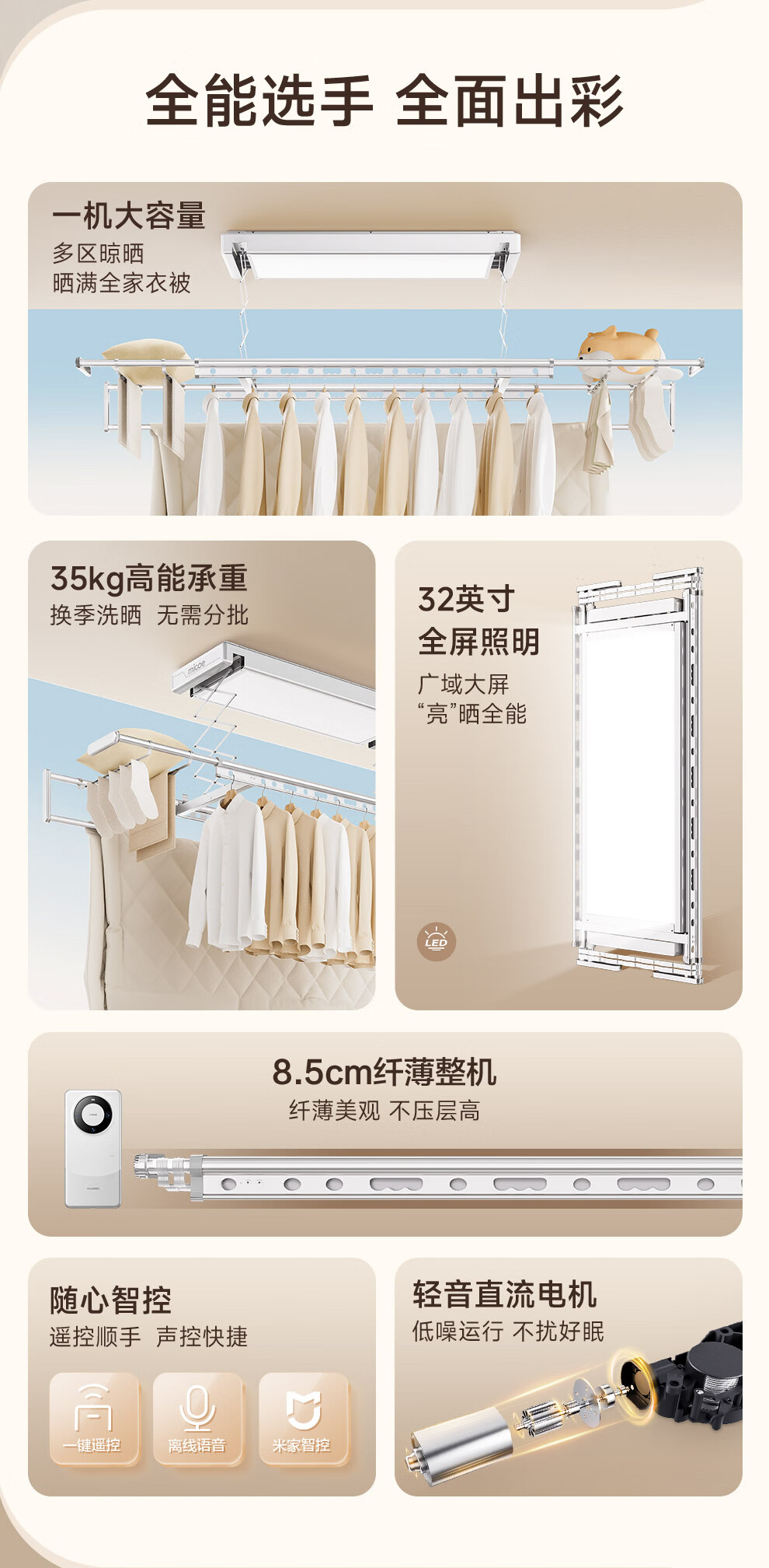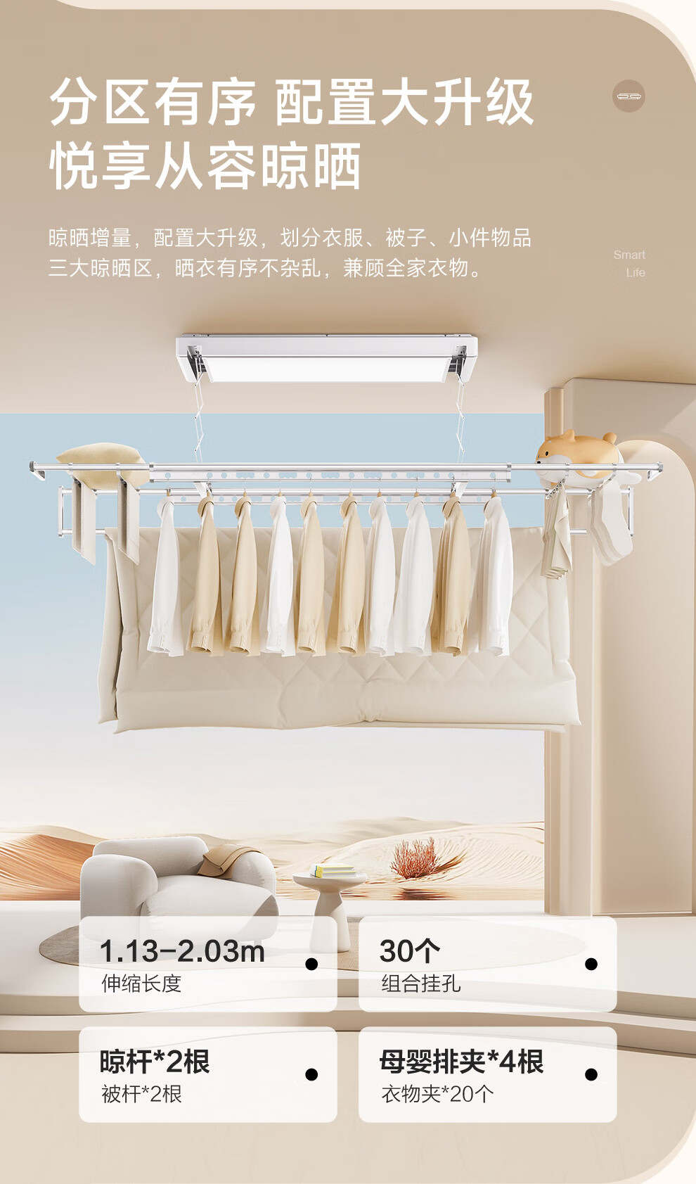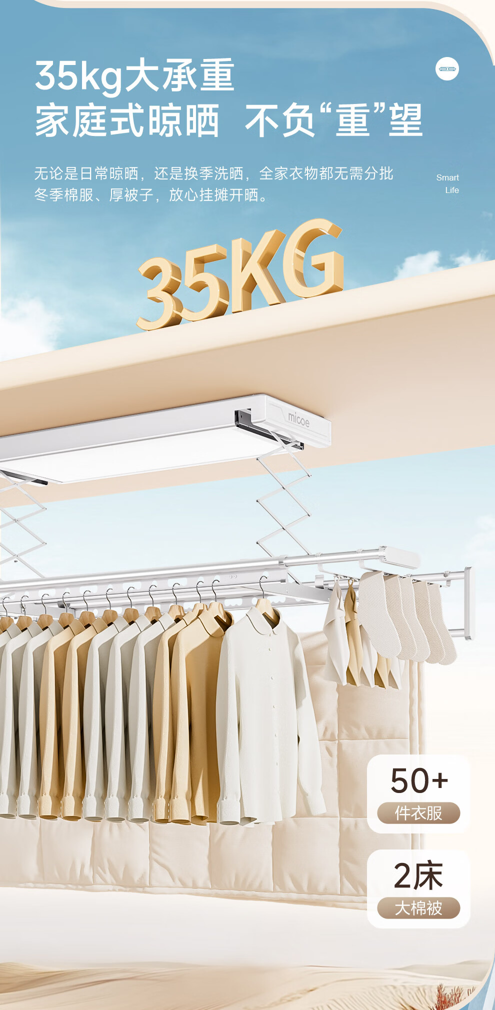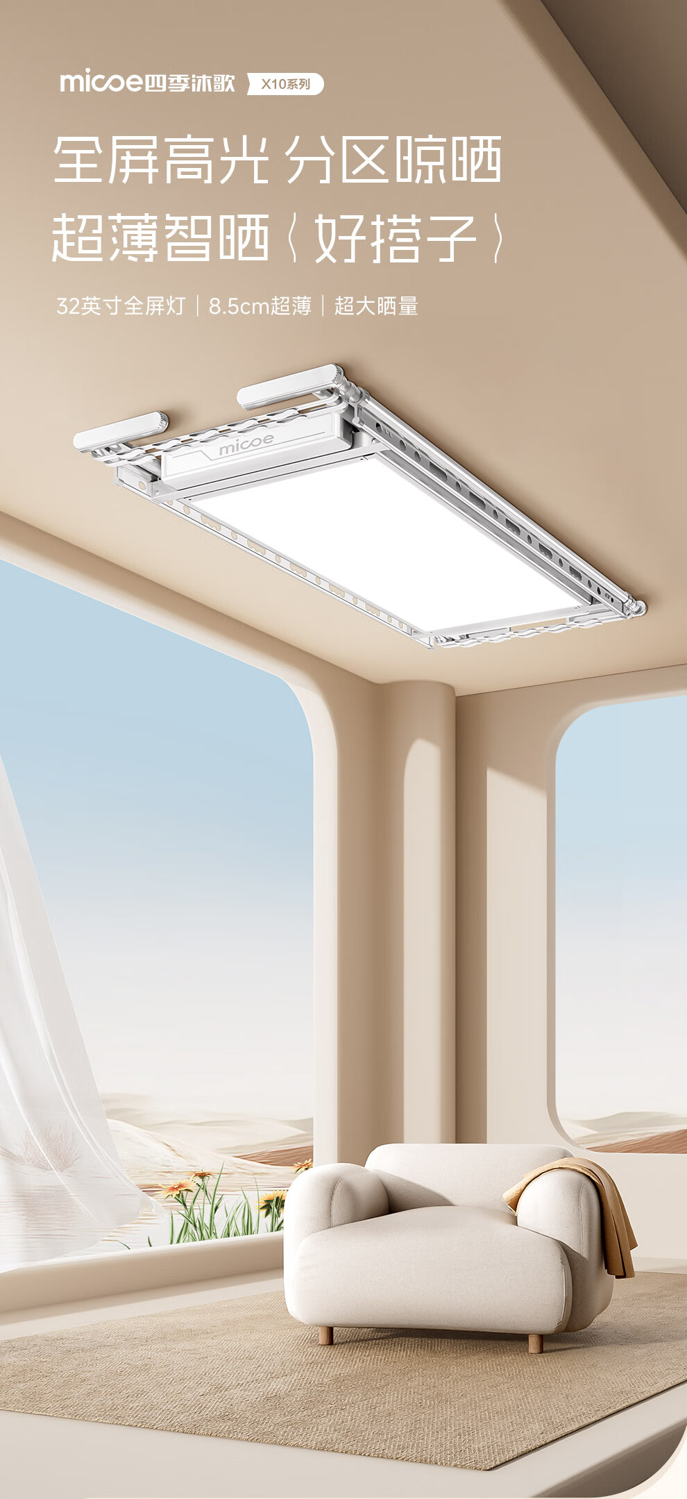四季沐歌(MICOE)电动晾衣架隐藏式隐形纤薄遥控晾衣架阳台晒衣自动升降智能晾衣机