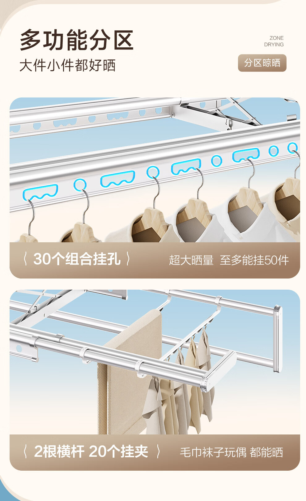 奥克斯(AUX)电动晾衣架智能晾衣机全自动升降杆遥控阳台超薄隐藏嵌入式晒衣机