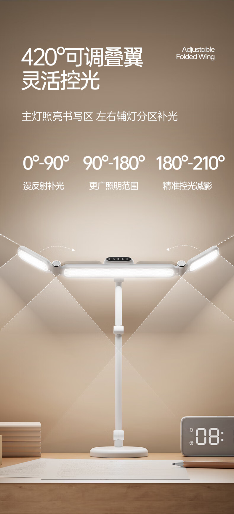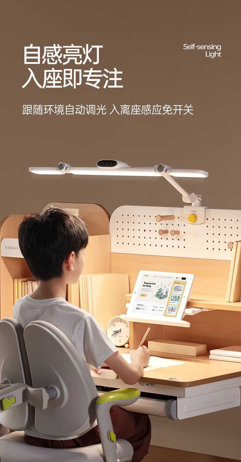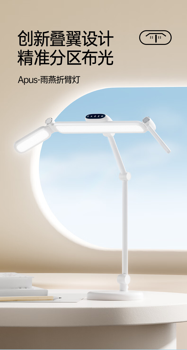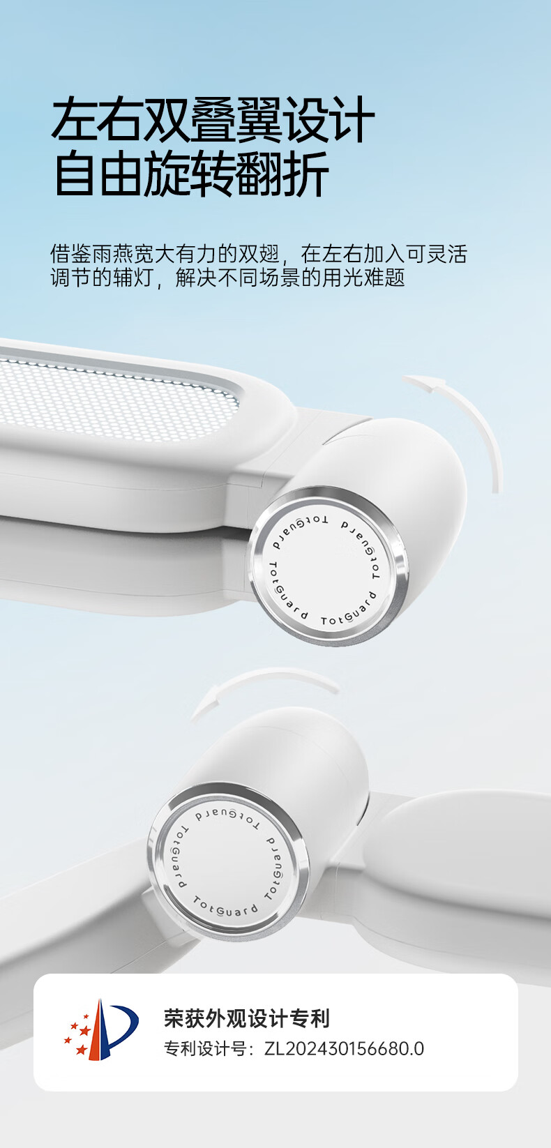 护童(Totguard)台灯护眼学习宿舍家用护眼台灯学生专用 雨燕折臂灯白 夹子款