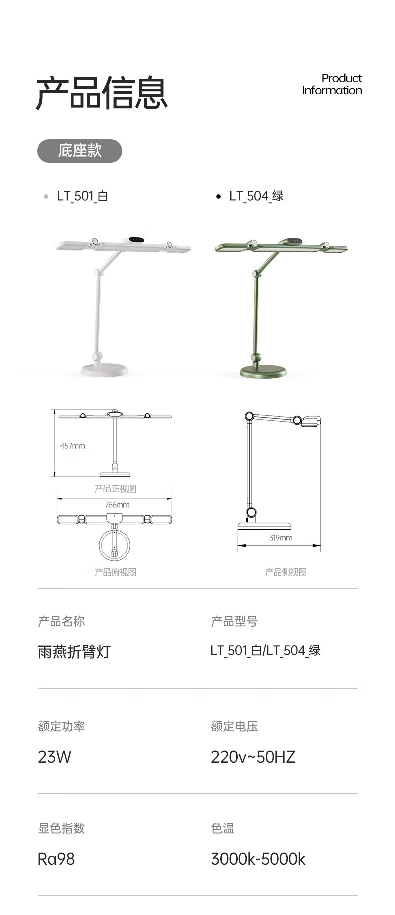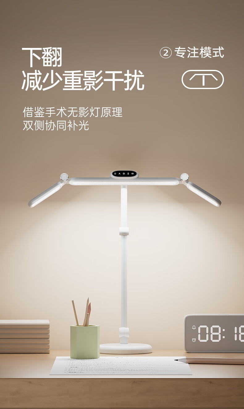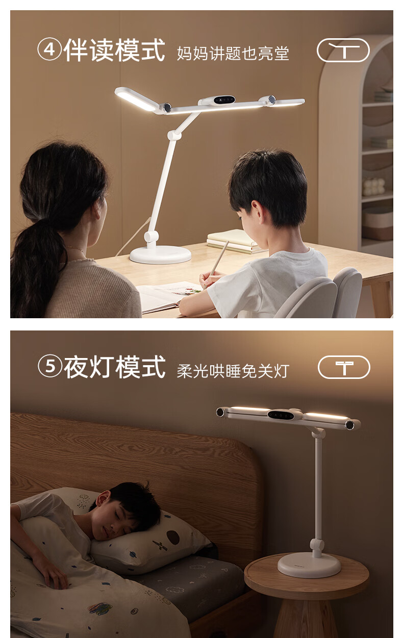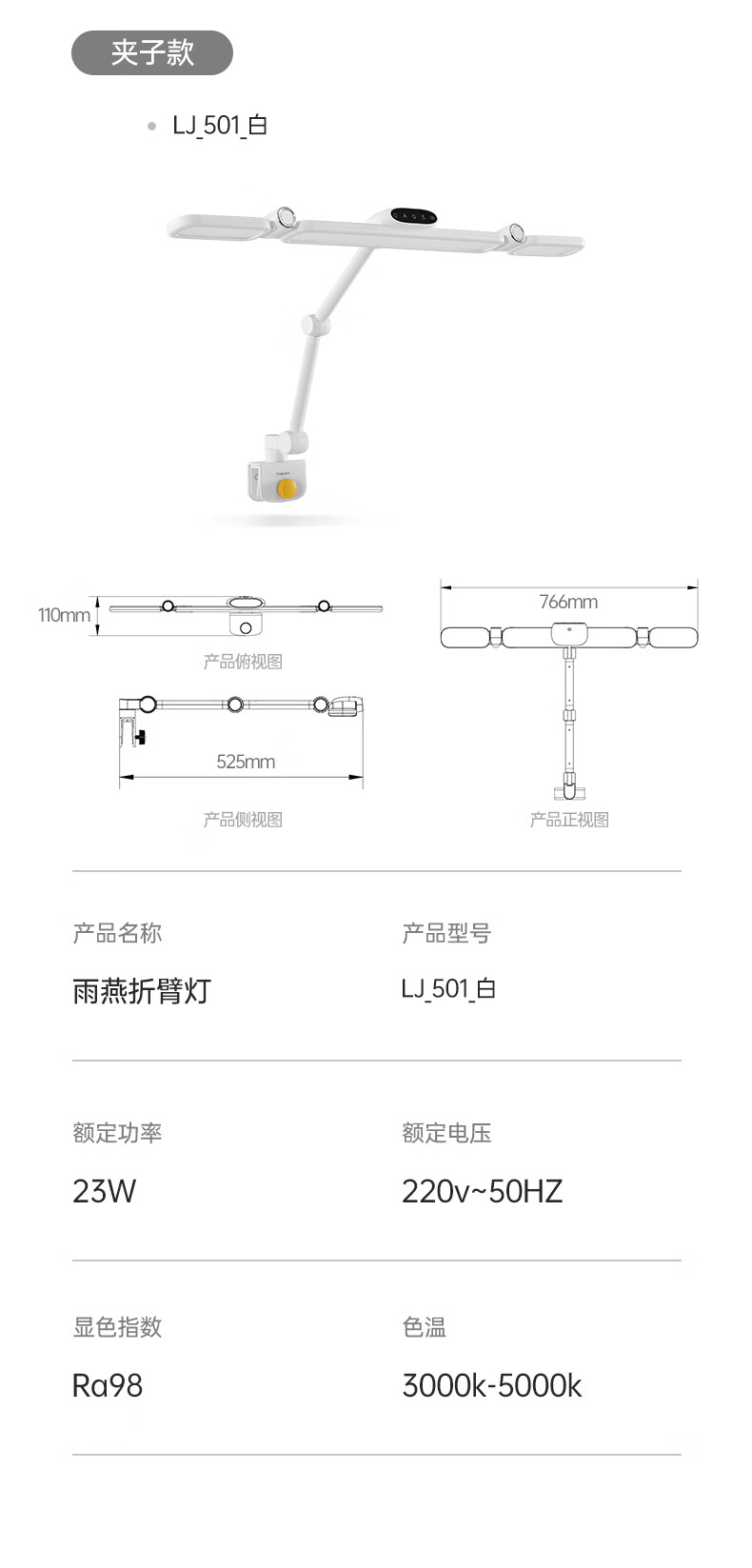 护童(Totguard)台灯护眼学习宿舍家用护眼台灯学生专用 雨燕折臂灯白 夹子款