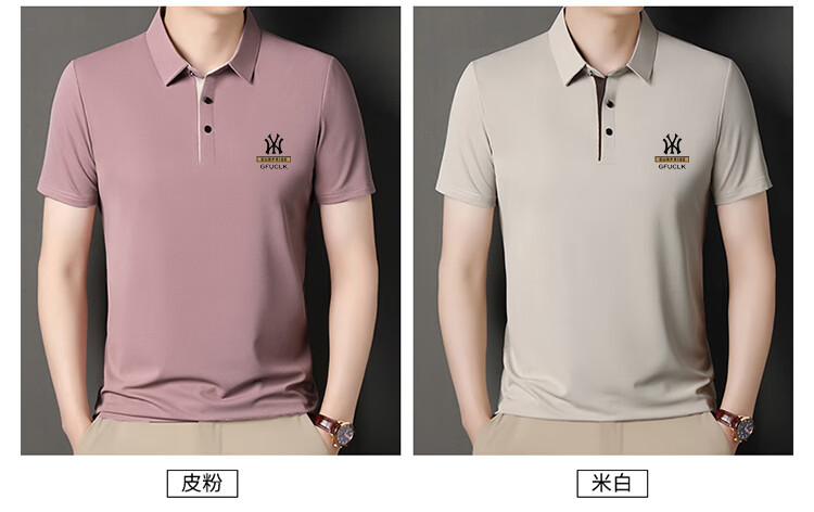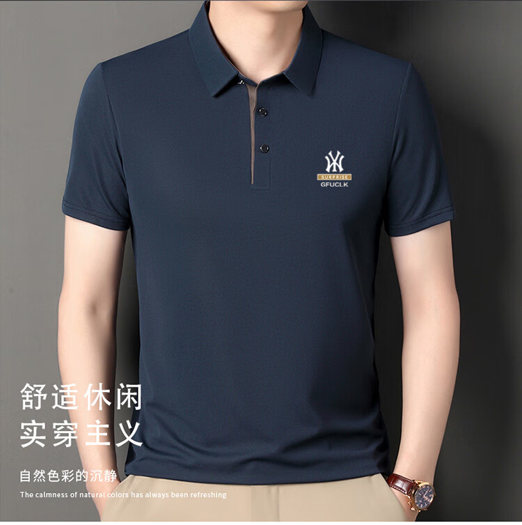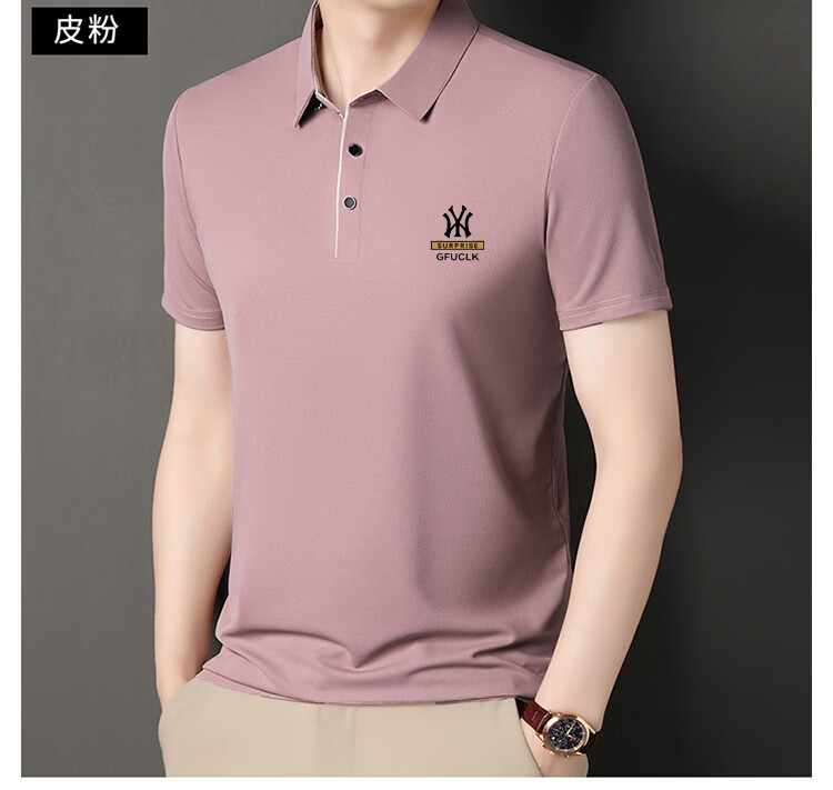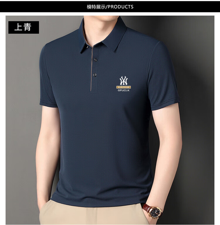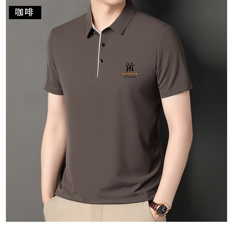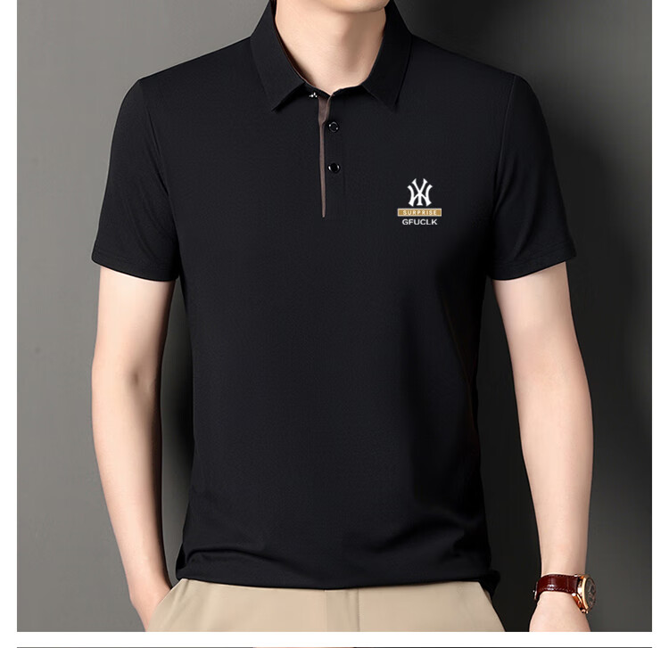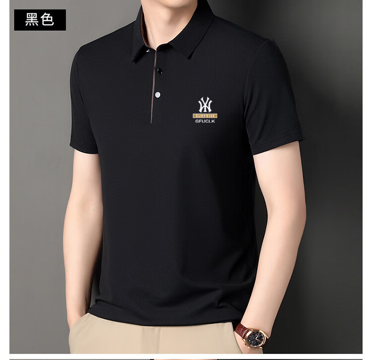 啄木鸟桑蚕丝男士短袖t恤夏季薄款翻领POLO衫免烫抗皱商务休闲上衣 短袖YW889黑色 2XL 180建议150-165斤
