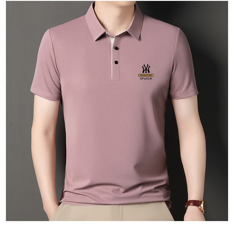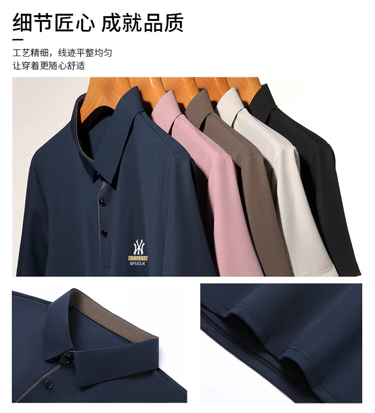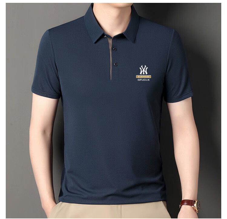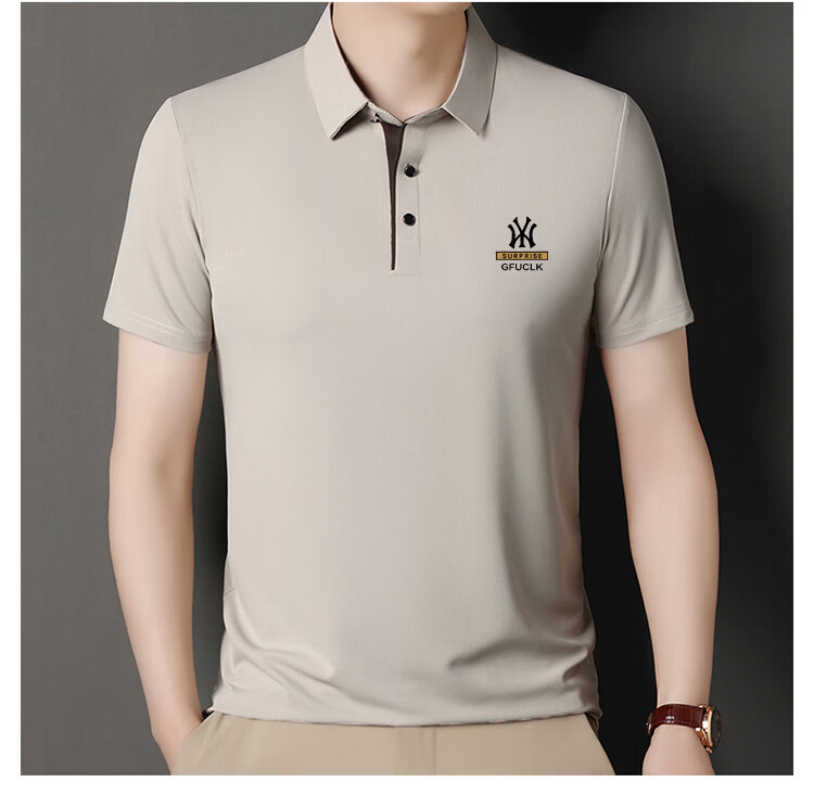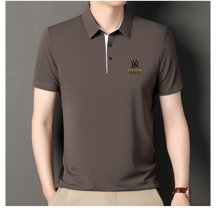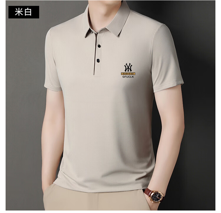 啄木鸟桑蚕丝男士短袖t恤夏季薄款翻领POLO衫免烫抗皱商务休闲上衣 短袖YW889黑色 2XL 180建议150-165斤