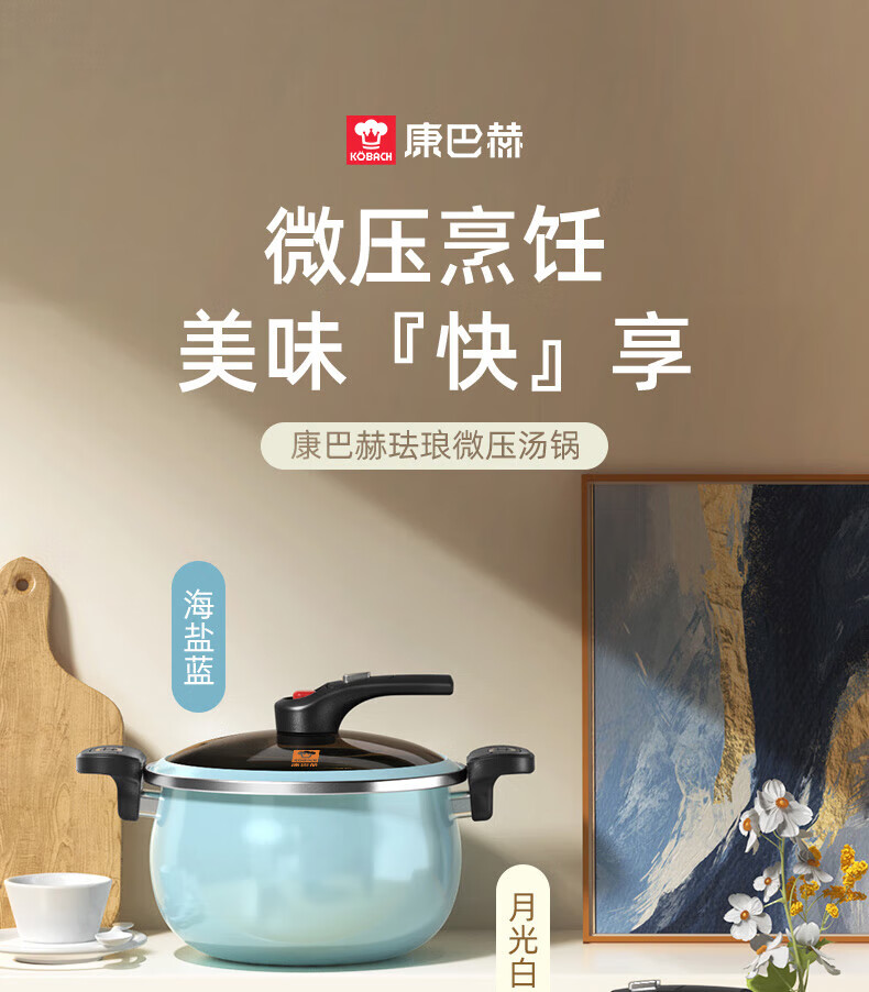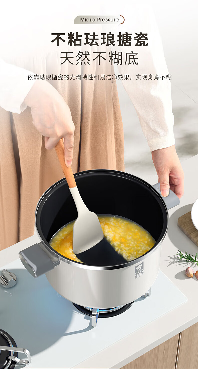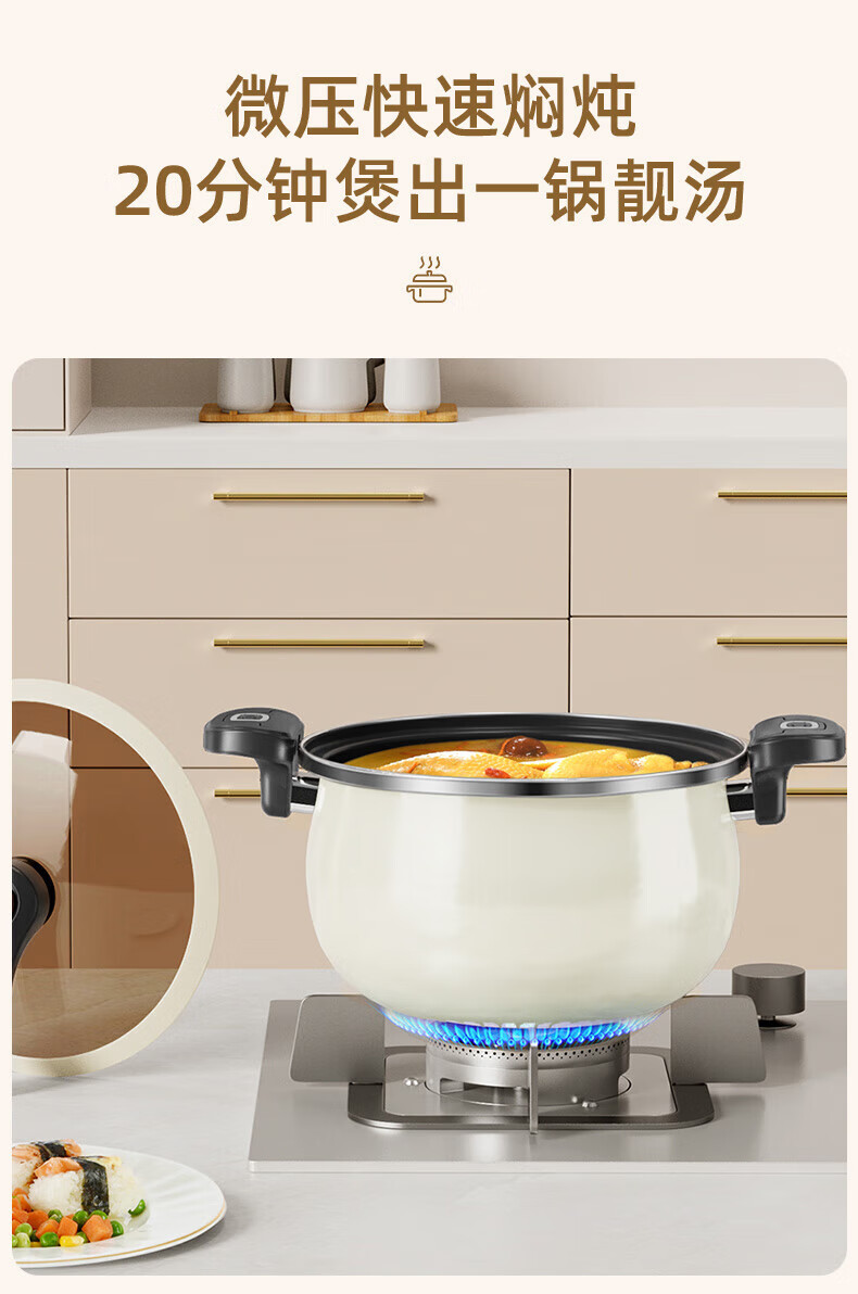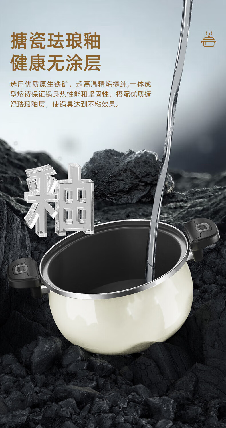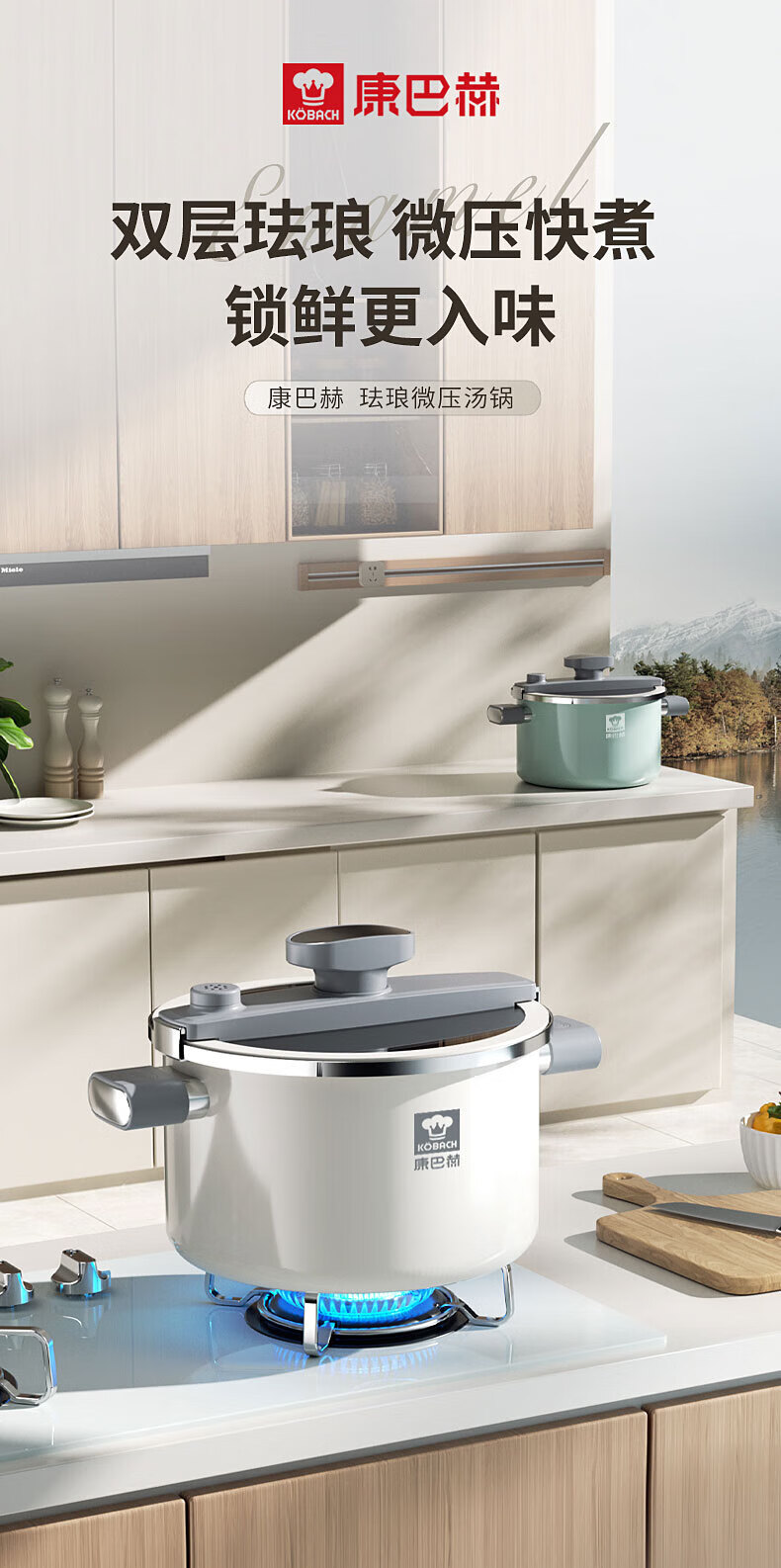 康巴赫(KBH)珐琅锅汤锅 微压搪瓷锅精铁锅易洁不沾炖煮锅电磁炉燃气灶通用 微压汤锅【月光白】 26cm 6.5L