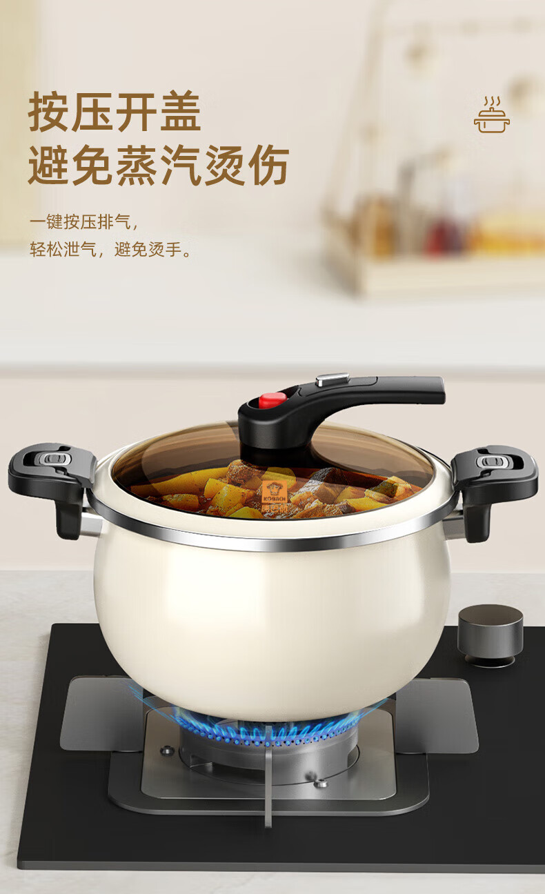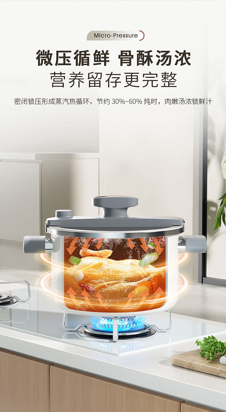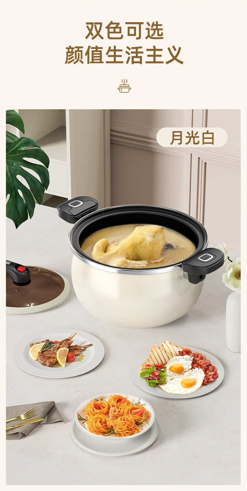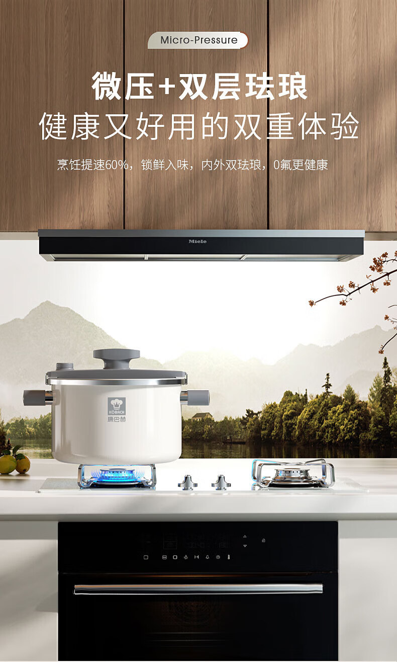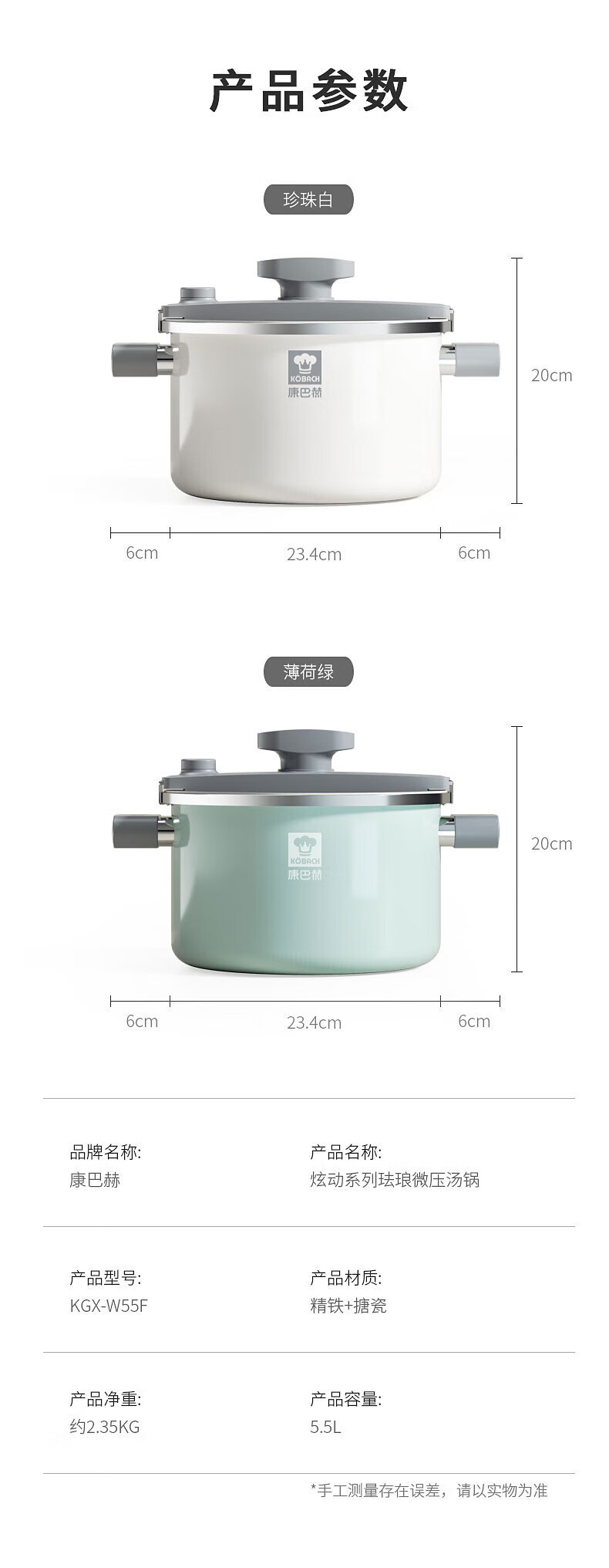 康巴赫(KBH)珐琅锅汤锅 微压搪瓷锅精铁锅易洁不沾炖煮锅电磁炉燃气灶通用 微压汤锅【月光白】 26cm 6.5L