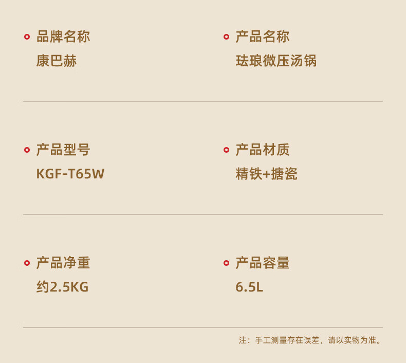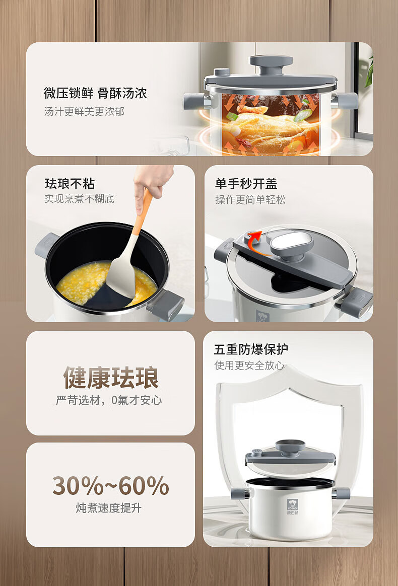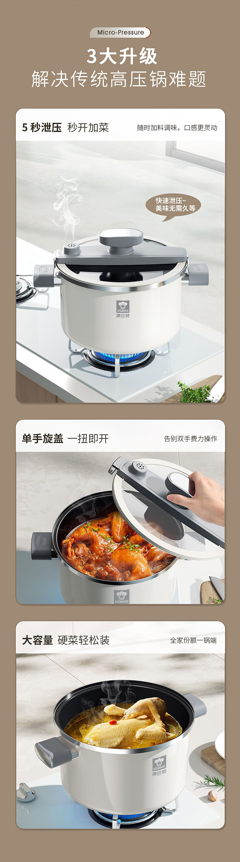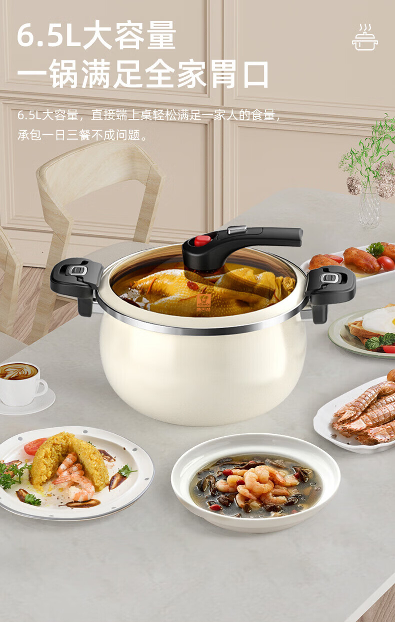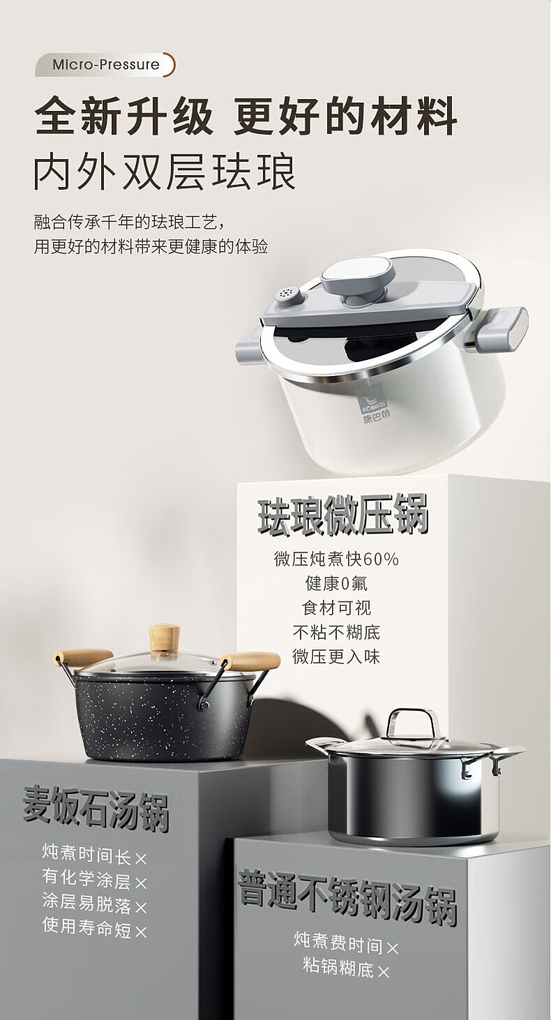 康巴赫(KBH)珐琅锅汤锅 微压搪瓷锅精铁锅易洁不沾炖煮锅电磁炉燃气灶通用 微压汤锅【月光白】 26cm 6.5L