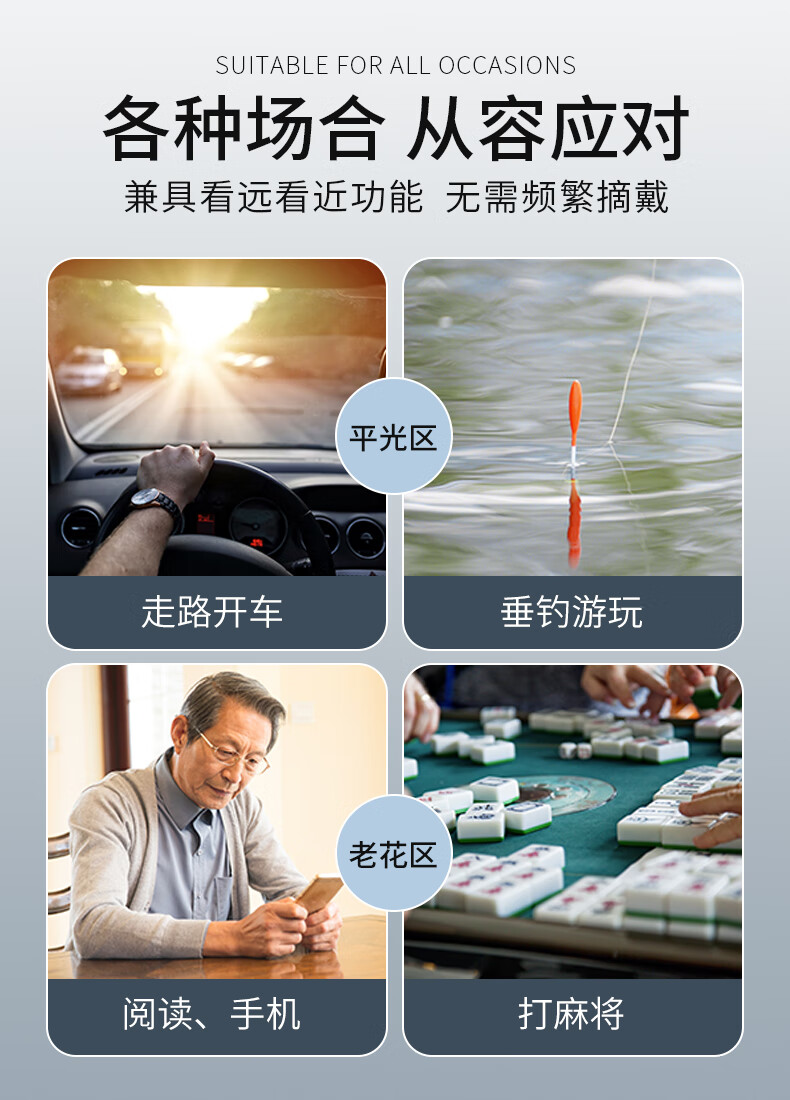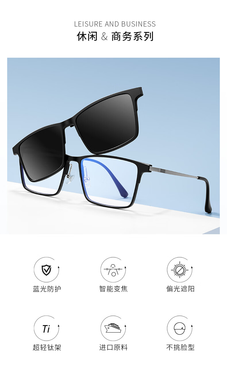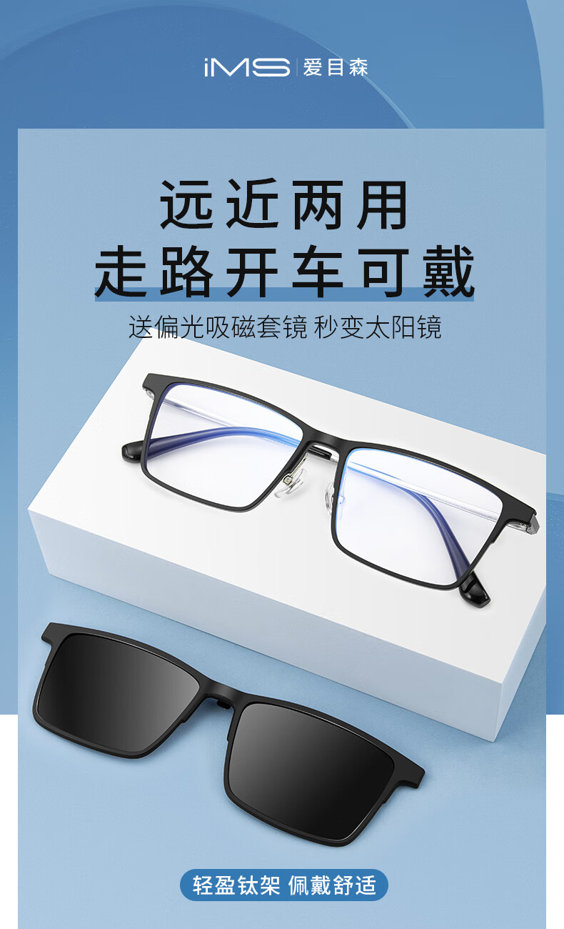 爱目森IMSEEING老花镜男超轻商务钛架 智能变焦渐进多焦点远近两用室外遮阳偏光