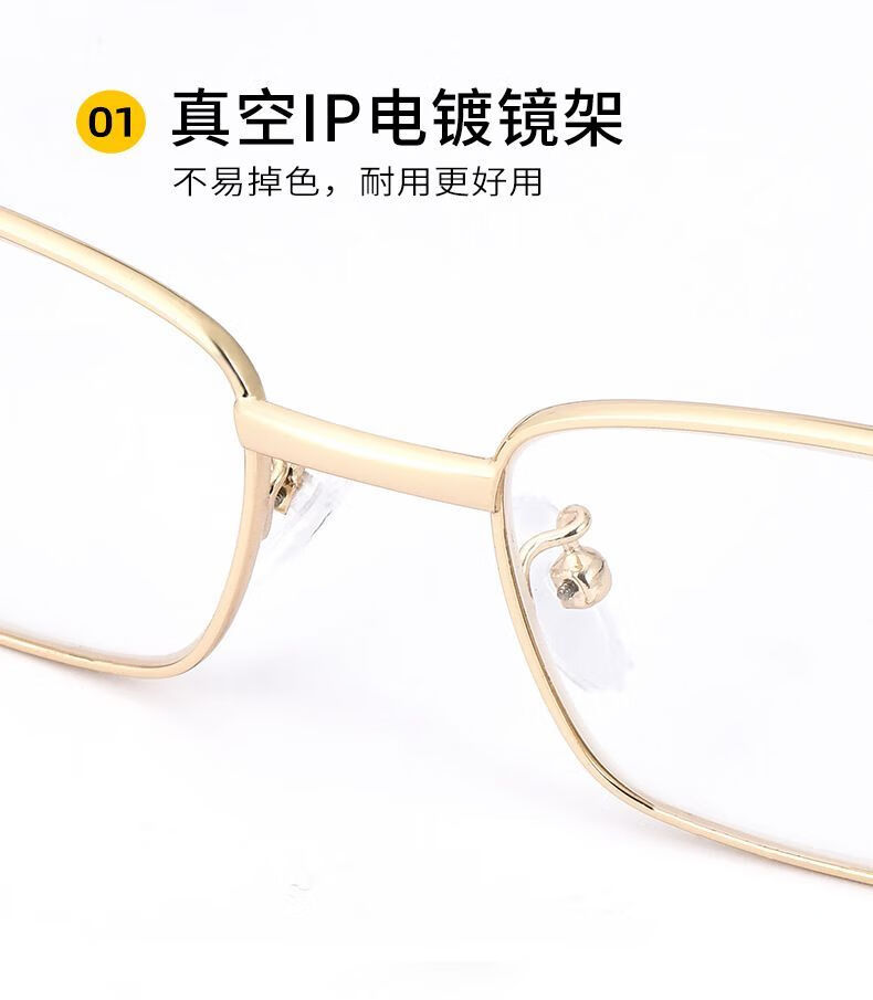 LESCA LUNETIER高档玻璃老花镜中老年男女高清老光眼镜 金色-玻璃镜片 200度