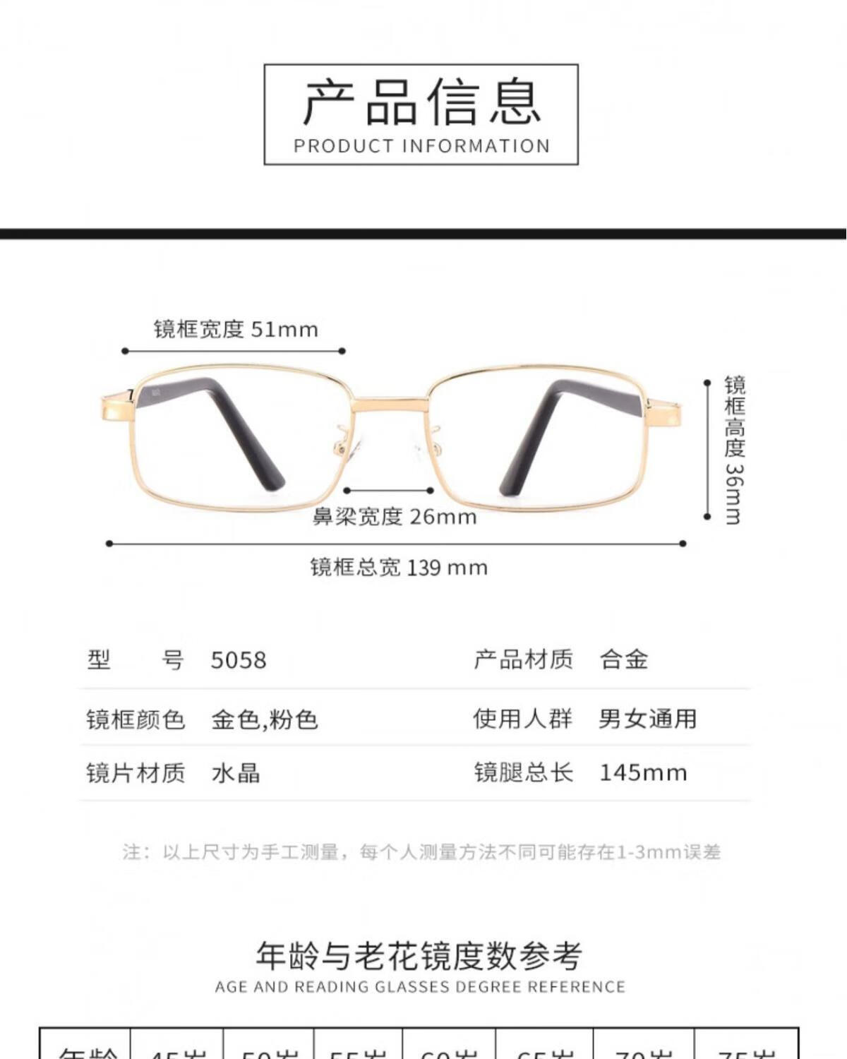 HB防蓝光无框老花镜 时尚耐磨点漆 高清舒适 开学