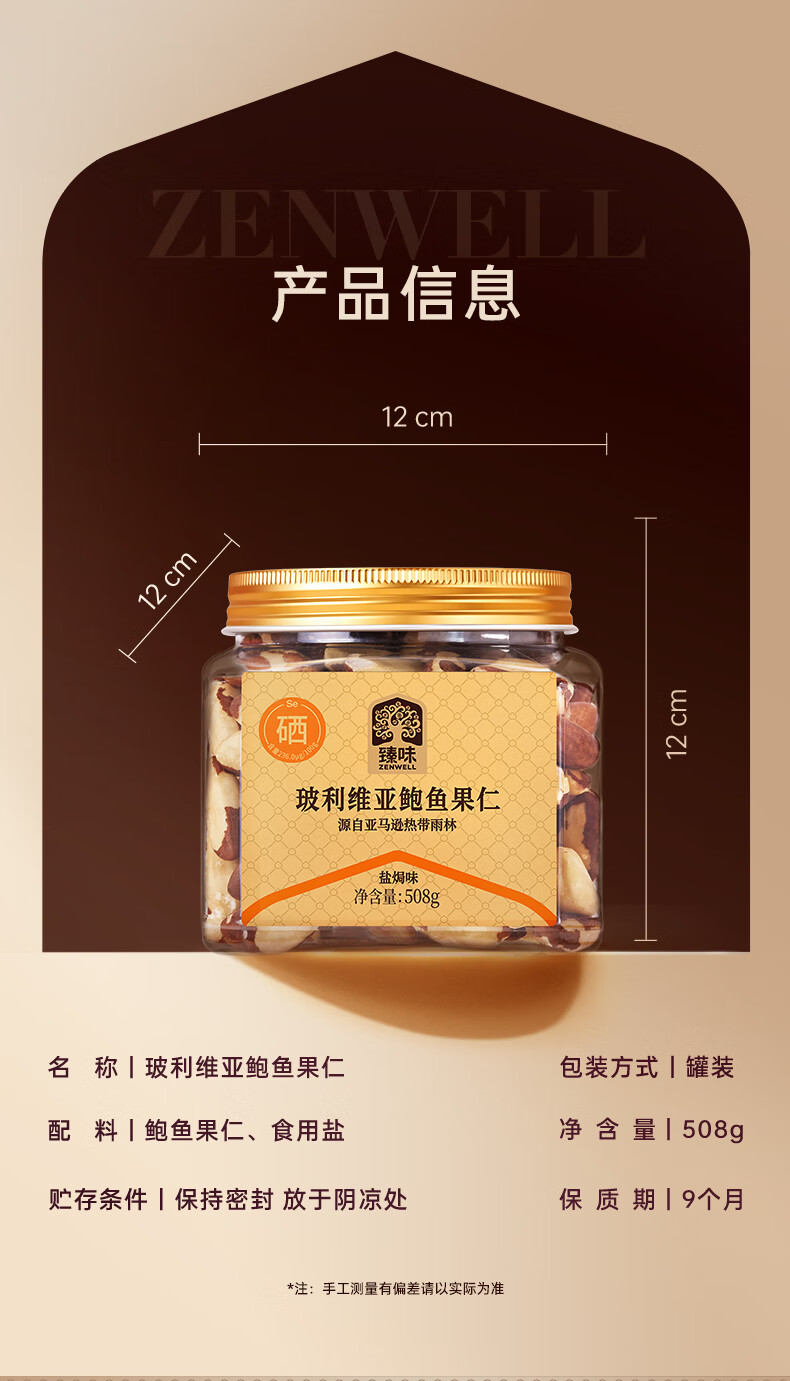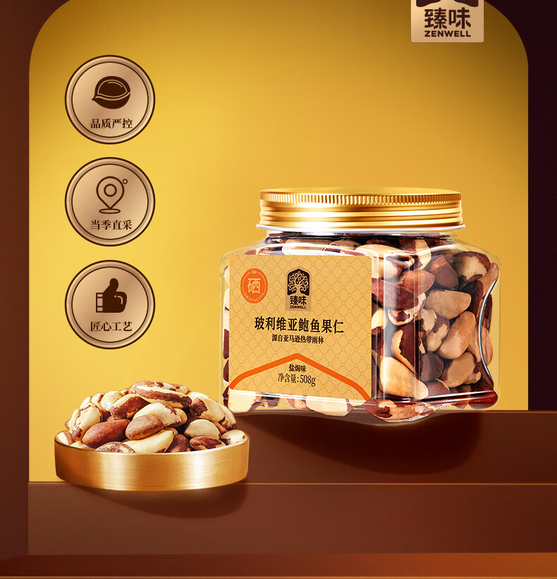 臻味鲍鱼果仁508g大颗粒富硒巴西坚果炒货去皮休闲儿童孕妇零食有机硒