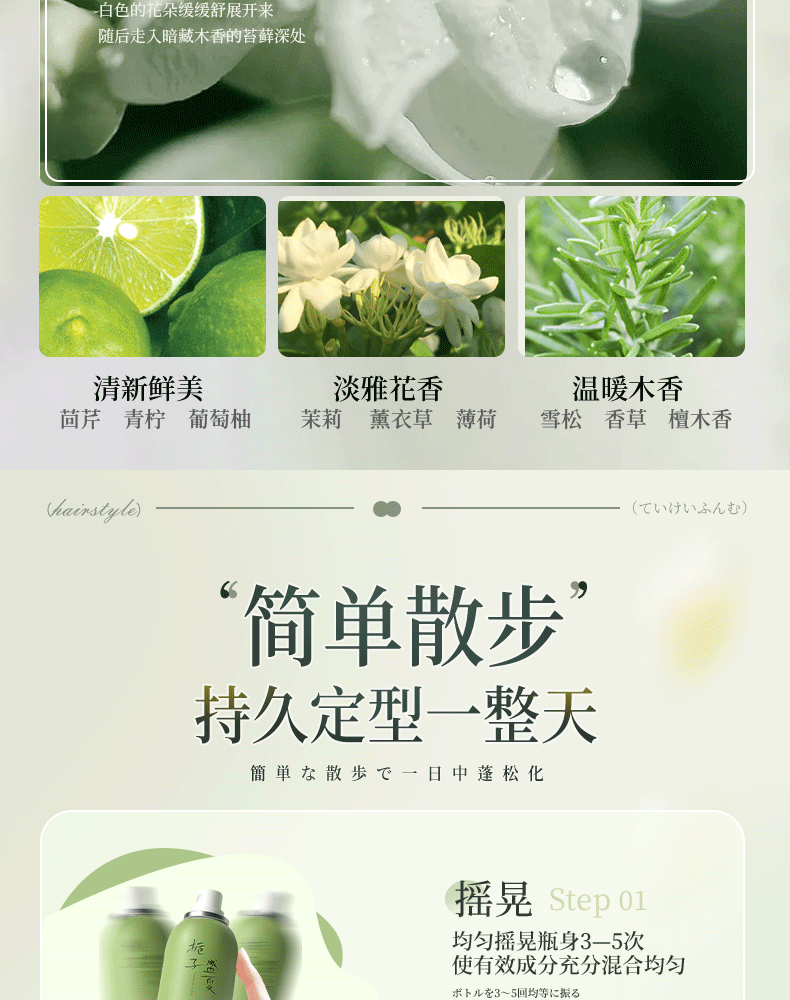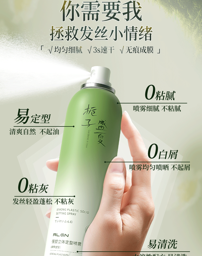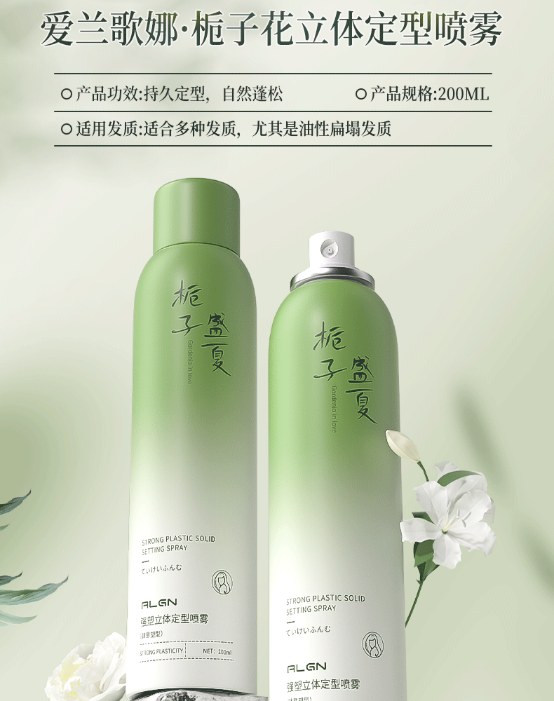 爱兰歌娜栀子花香氛定型喷雾持久清香男女士自然蓬松哑光高颅顶发型胶神器 【98%的选择】栀子花定型喷雾2瓶