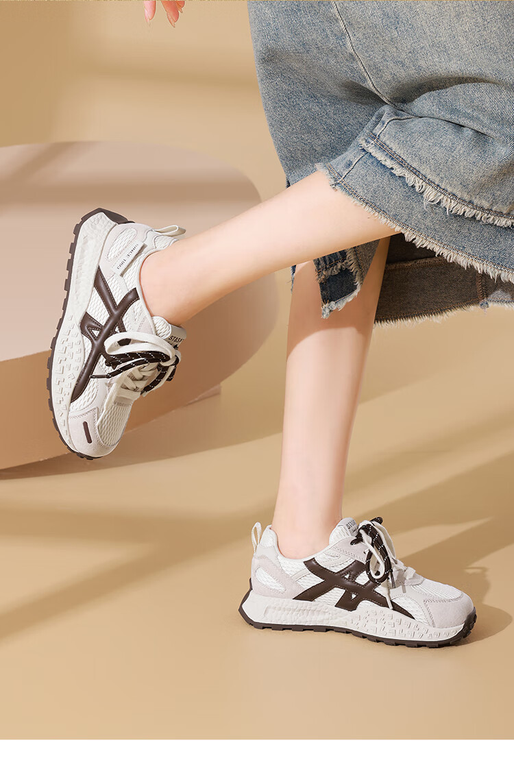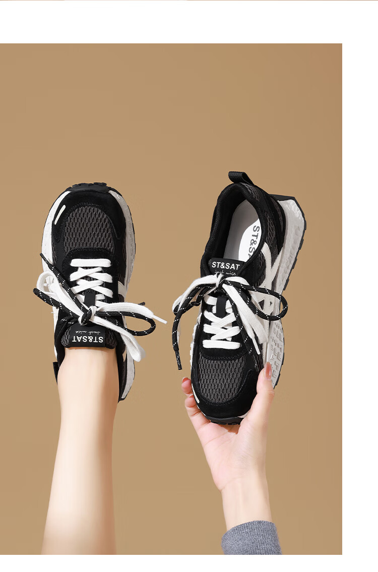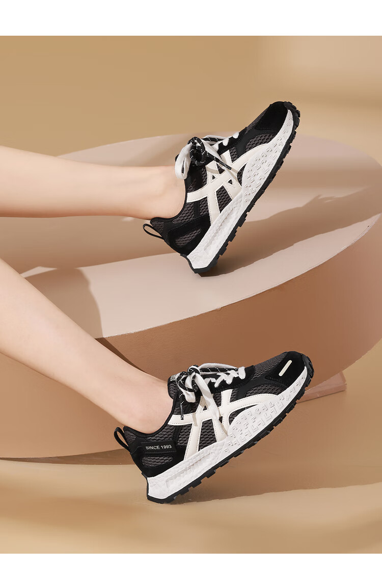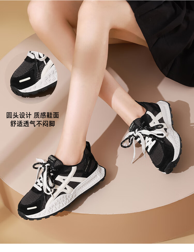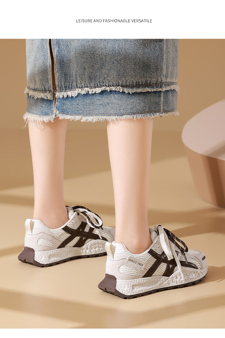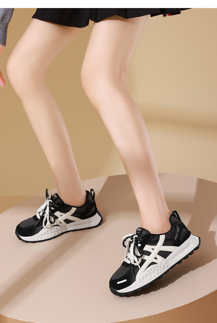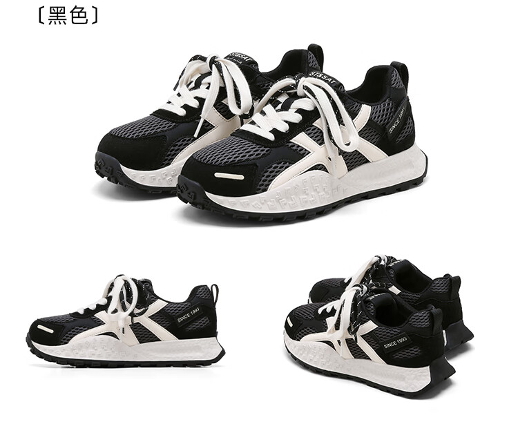 热风厚底休闲鞋女款2025年秋季新款网面运动女鞋黑色百搭鞋子女 21红白 37