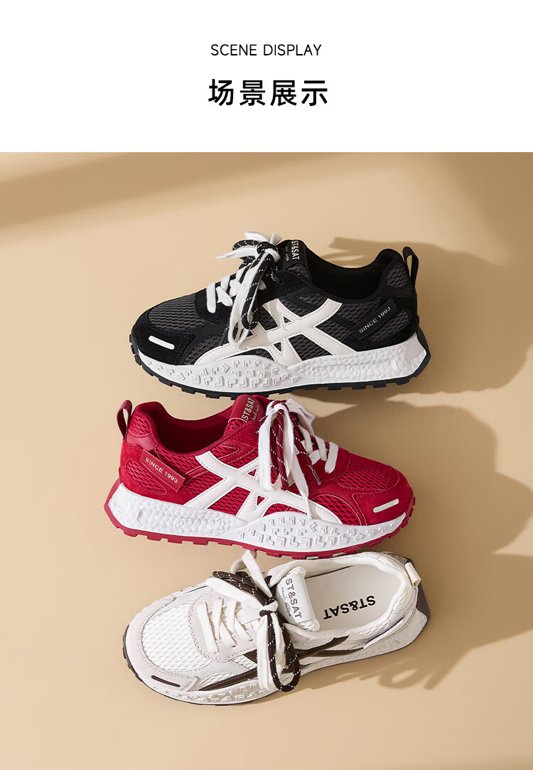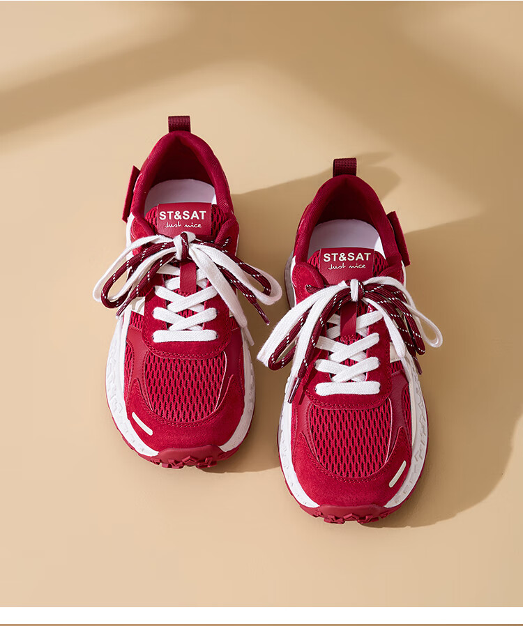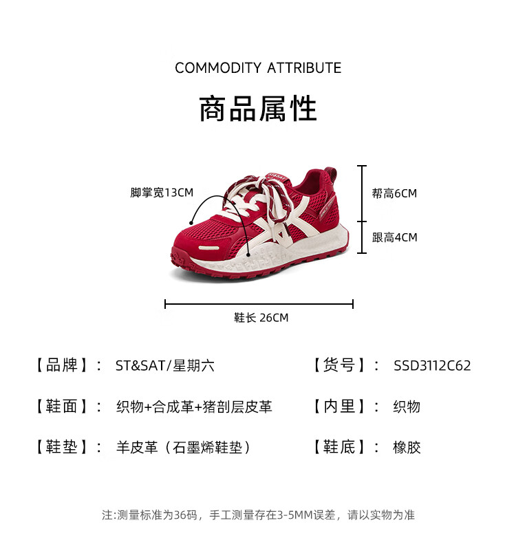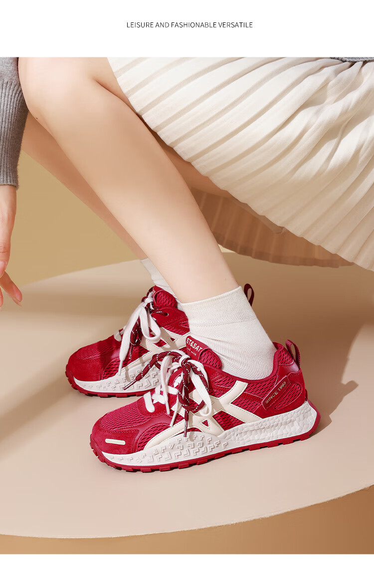 星期六时尚潮流百搭休闲女鞋2025秋季新款学院风运动鞋MTSSD3112C62 红色 35