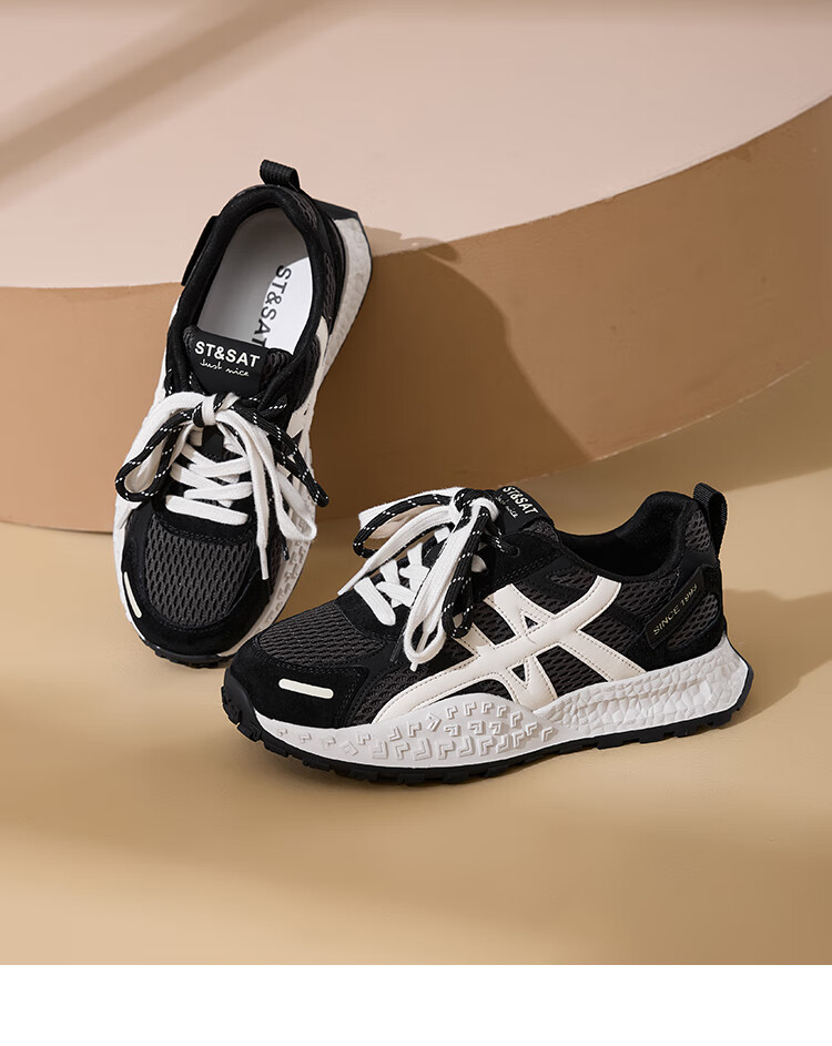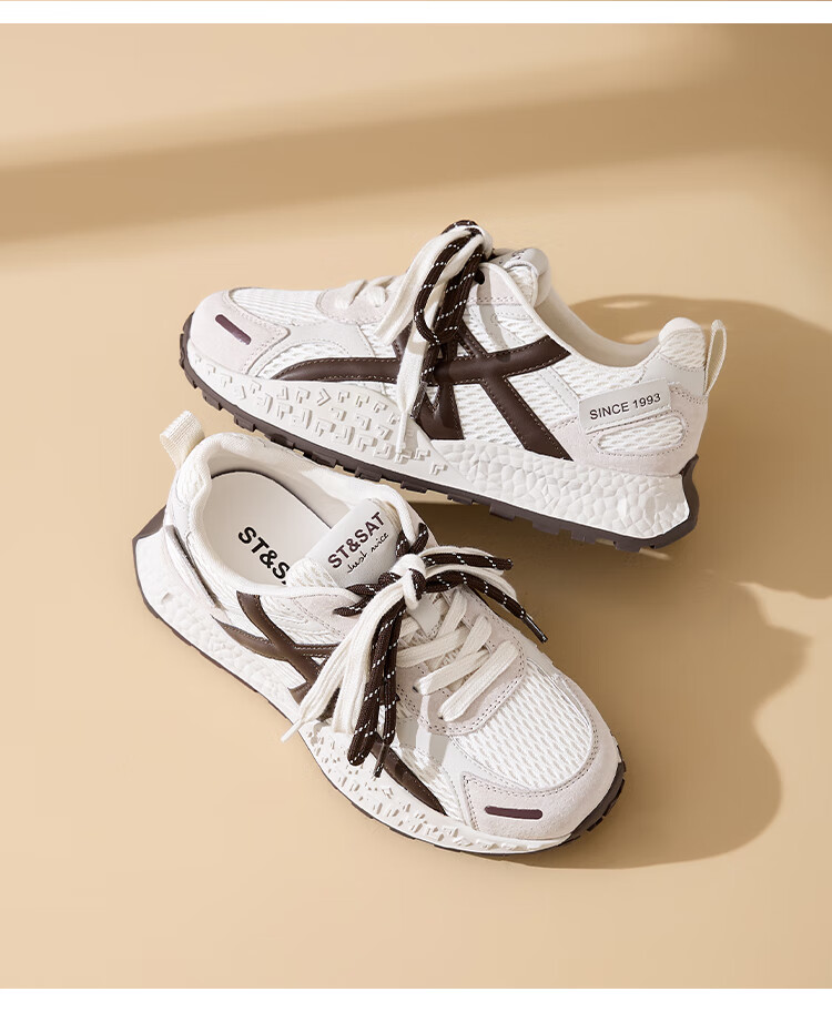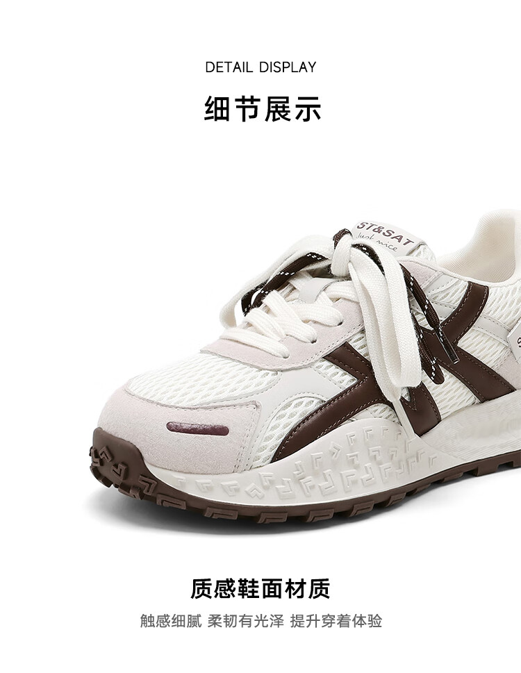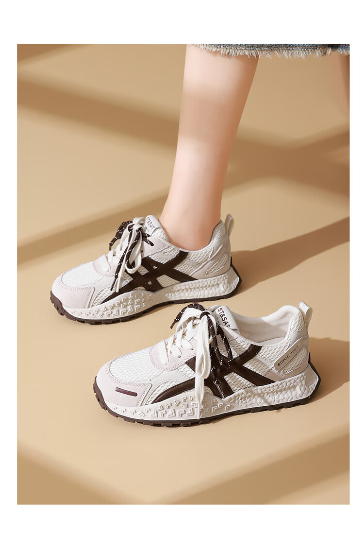 星期六时尚圆头厚底板鞋2025秋季新款百搭舒适女鞋MTSSD3112C6N 米/蓝 36