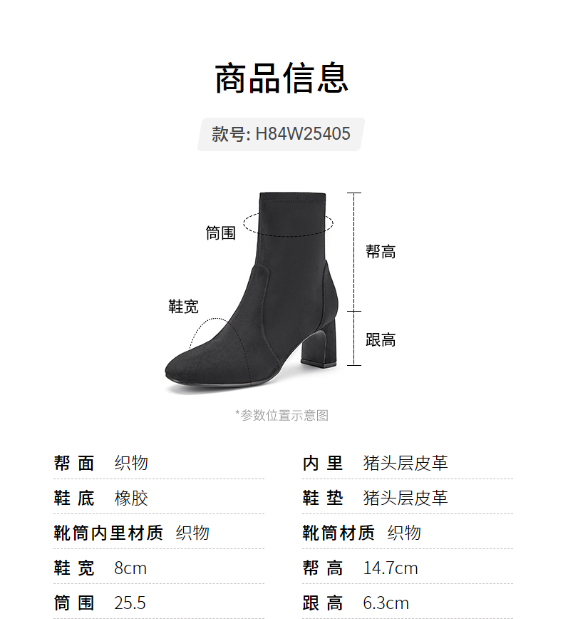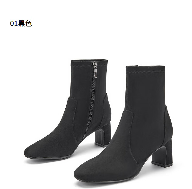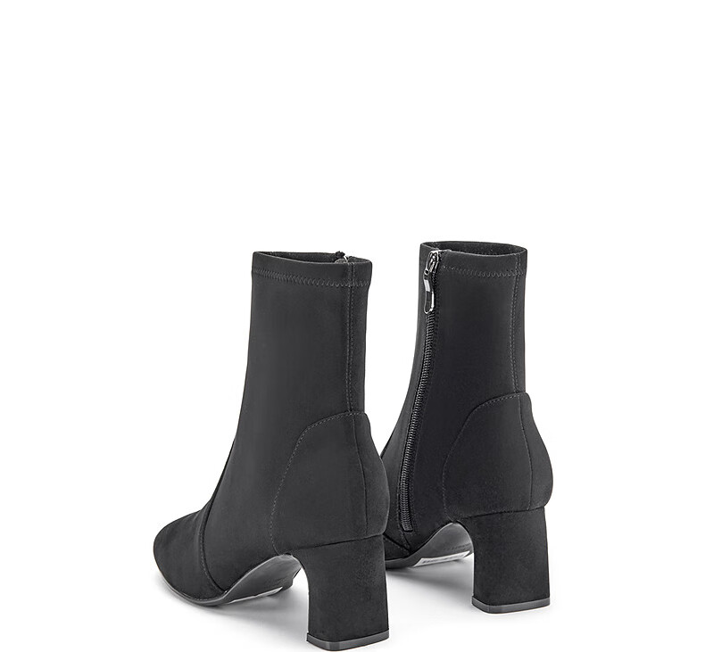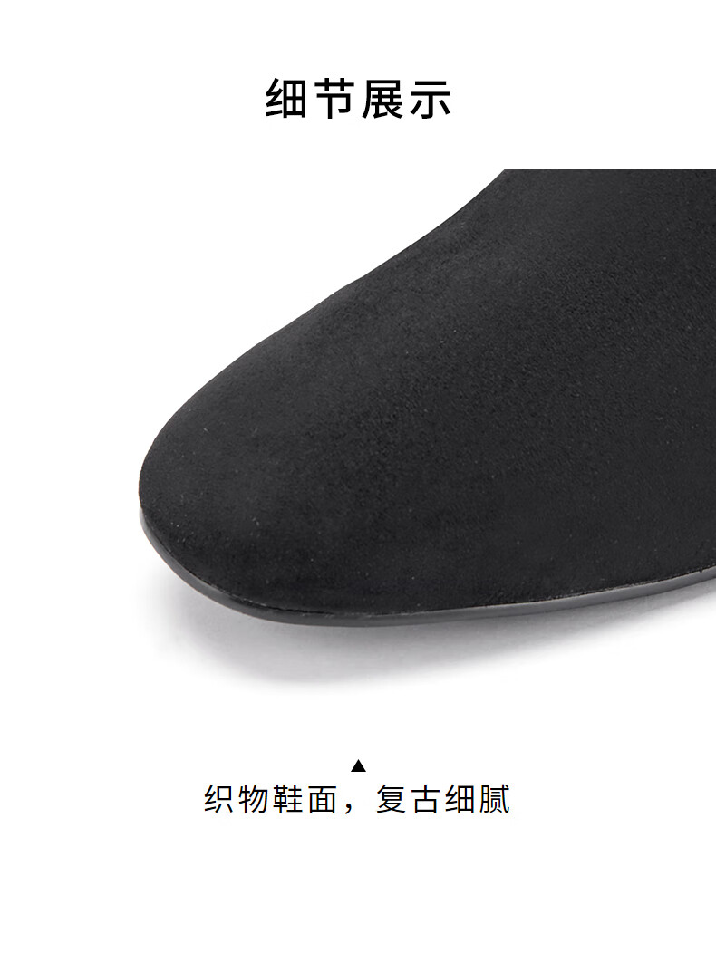 哈森(Harson)女靴2025冬季弹力靴运动靴牛皮织物袜靴迷你靴HA259021 黑色 34