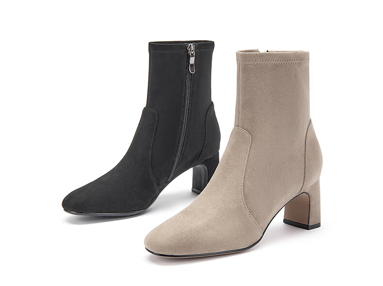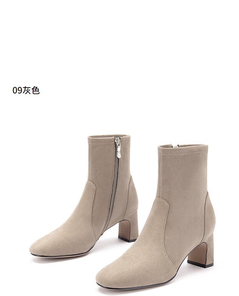 热风高跟时装靴女2025年冬季新款百搭增高瘦瘦靴休闲短靴子女鞋子 09灰色 35