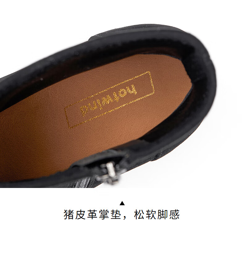 热风(Hotwind)【商场同款】男鞋2025年冬季新款时尚靴子厚底黑色马丁靴户外短靴 01黑色 牛头层皮革 39
