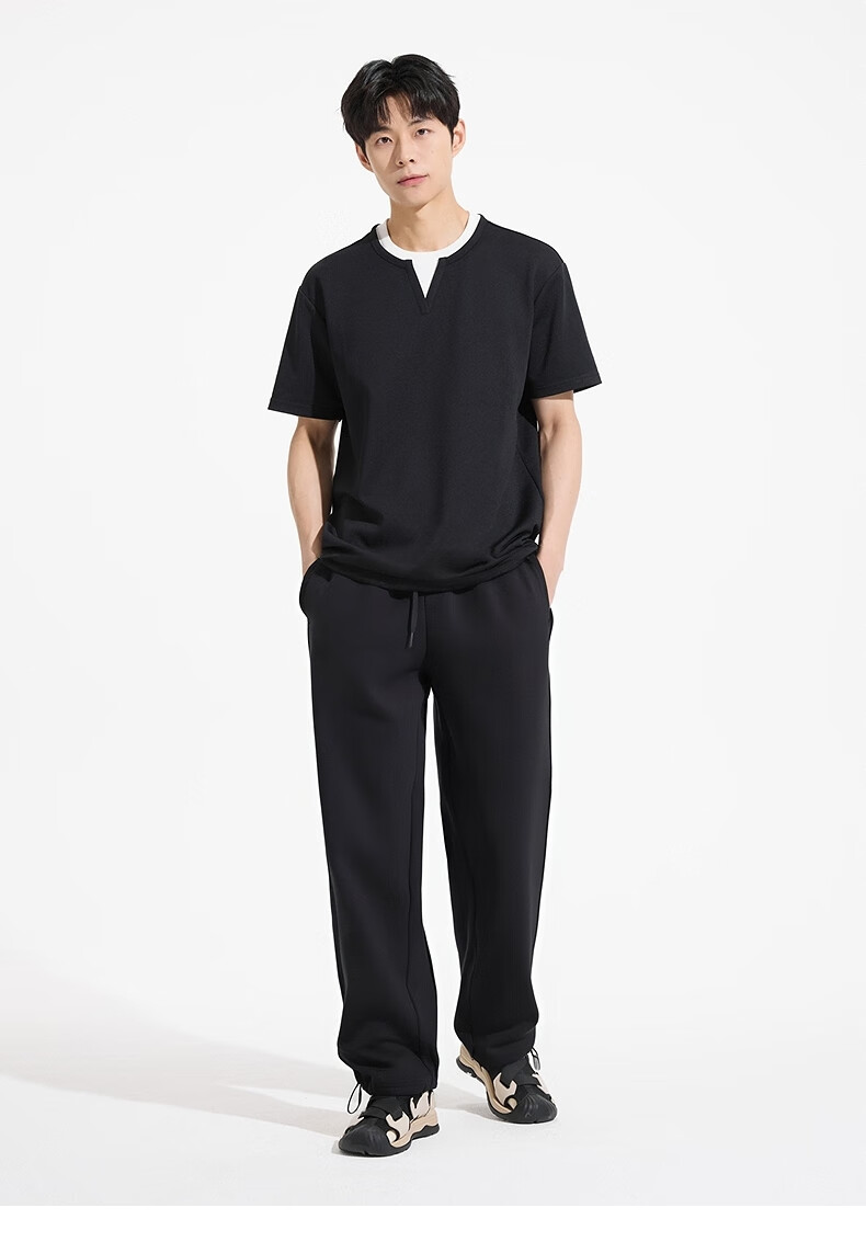 热风男士卫裤2025年秋季新款休闲直筒宽松卫裤户外通勤束脚休闲裤 01黑色 S