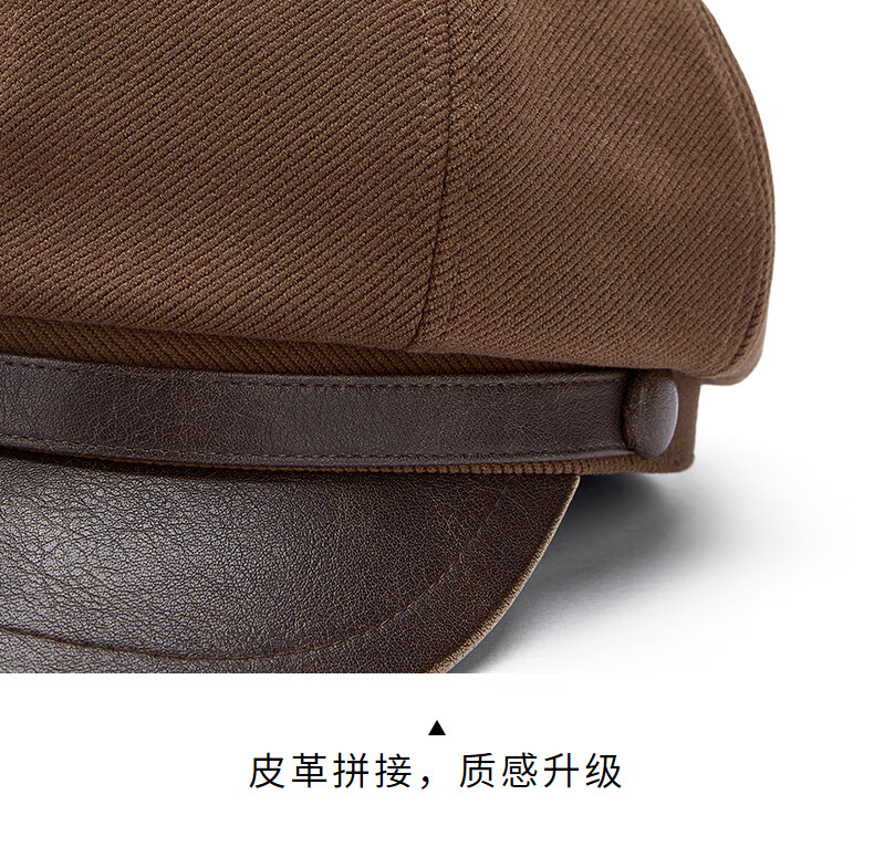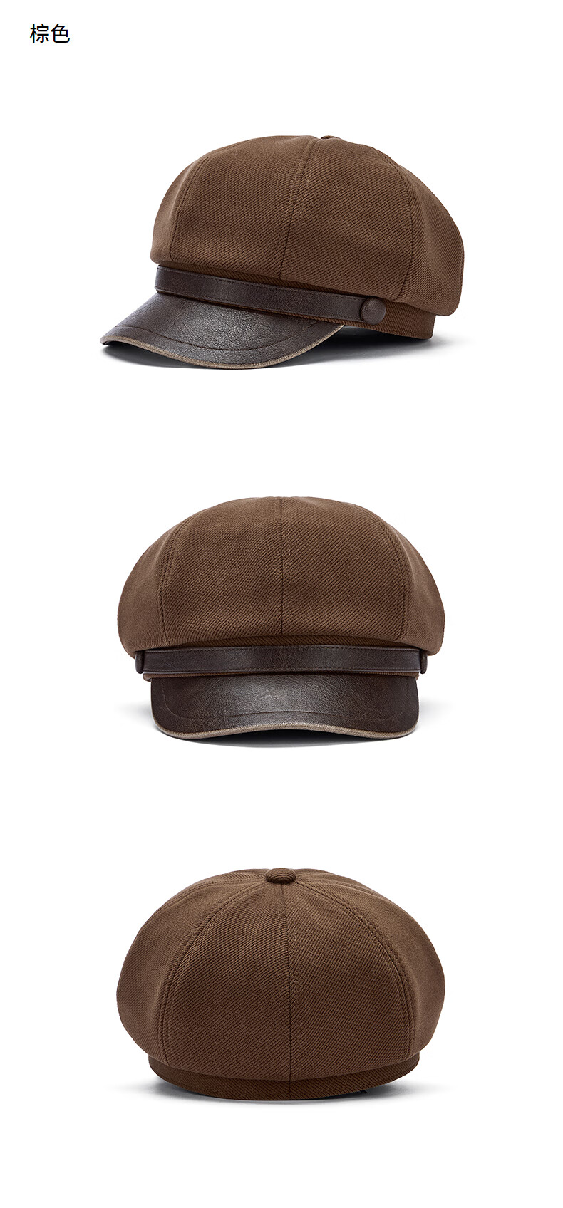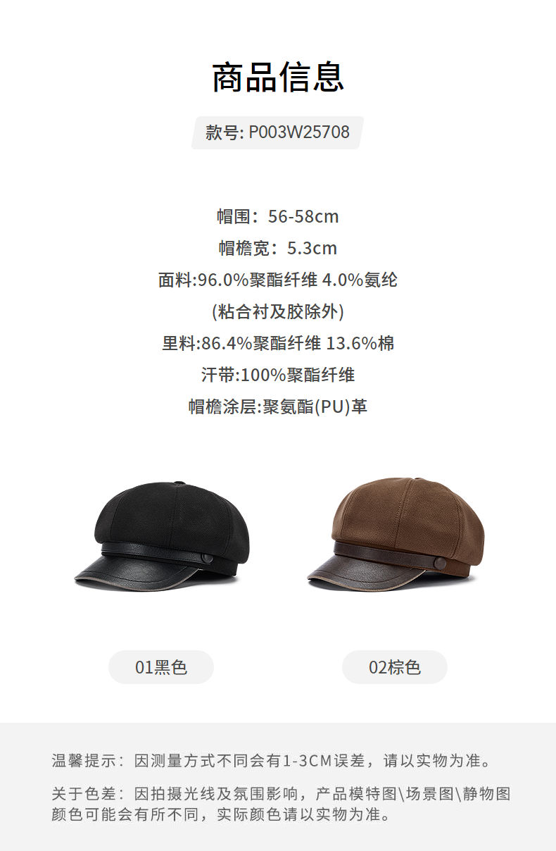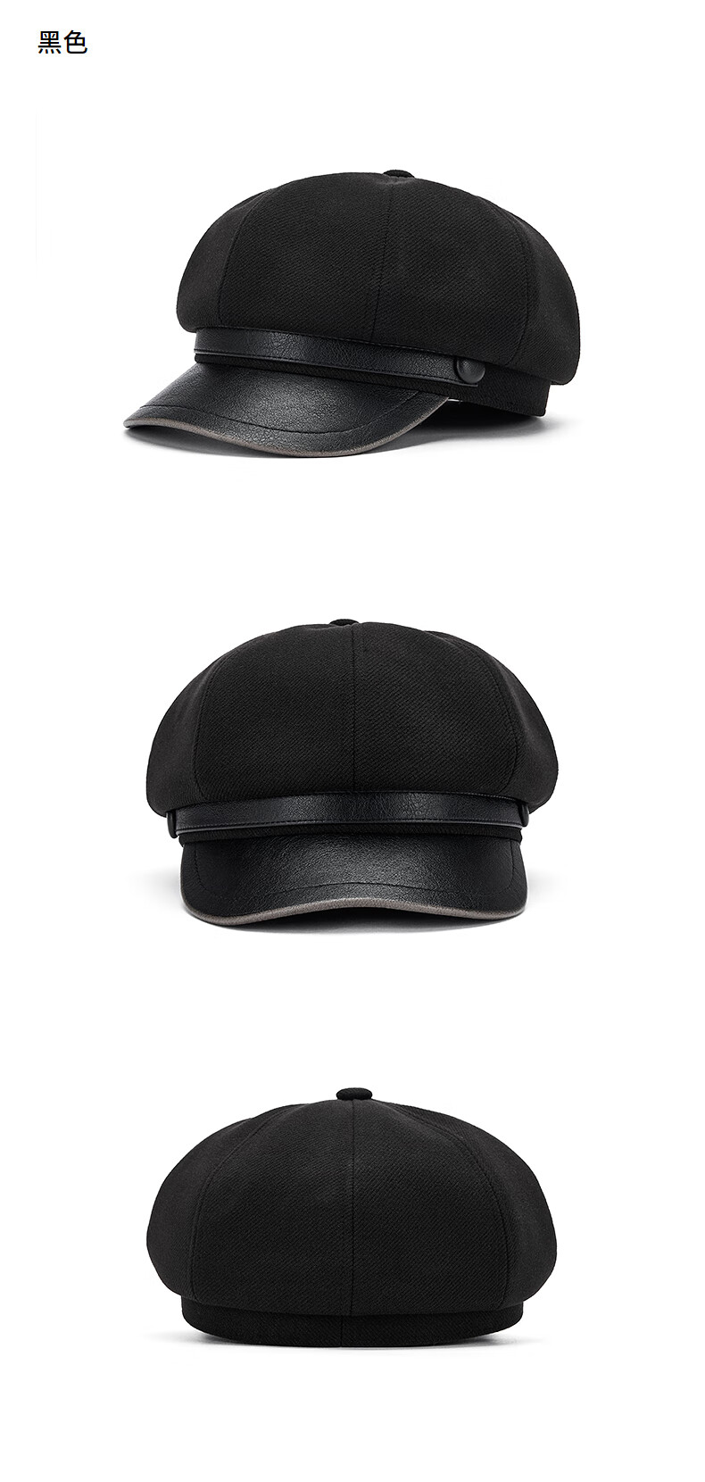 热风(Hotwind)女士八角帽2025年秋季新款气质显脸小鸭舌拼接八角帽百搭贝雷帽 01黑色 F