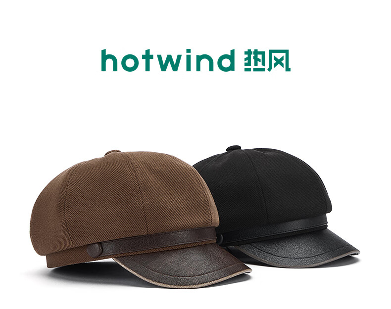 热风(Hotwind)女士八角帽2025年秋季新款时尚气质文艺美拉德显脸小百搭贝雷帽 01黑色 F