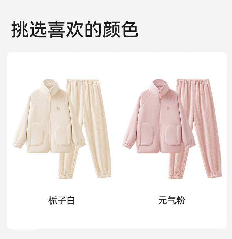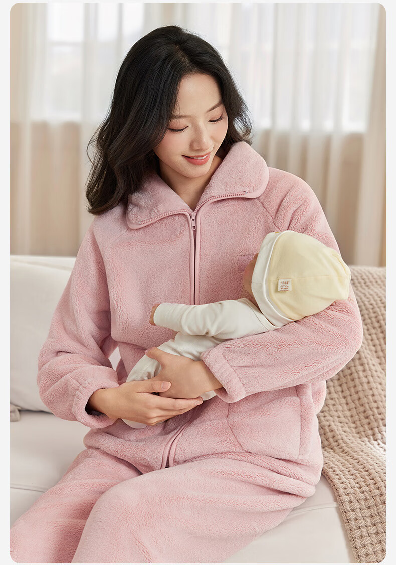 十月结晶双面绒家居服女士秋冬家居可外出服加厚蓬松抗静电不掉毛 【双面暖绒绒】黛月粉-推荐温度:-5-5℃ L(推荐体重120-140斤)