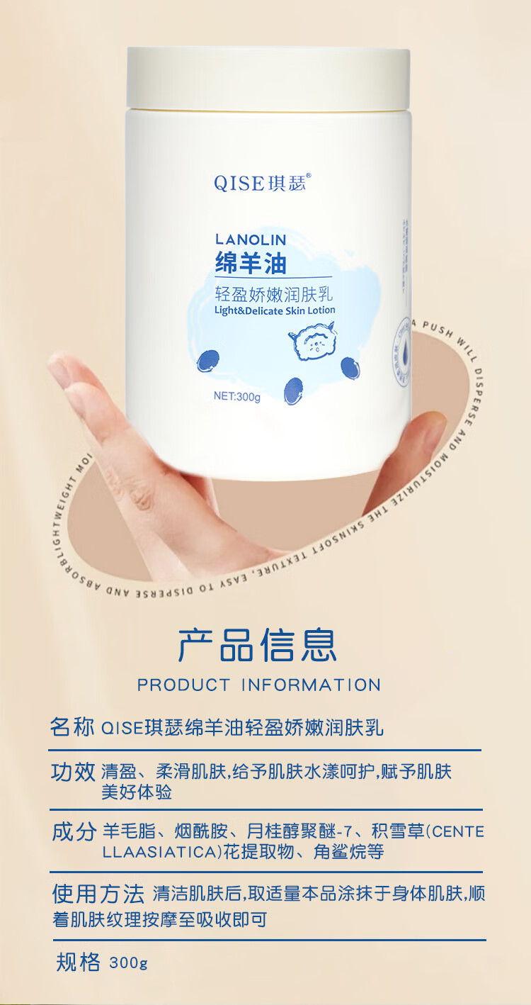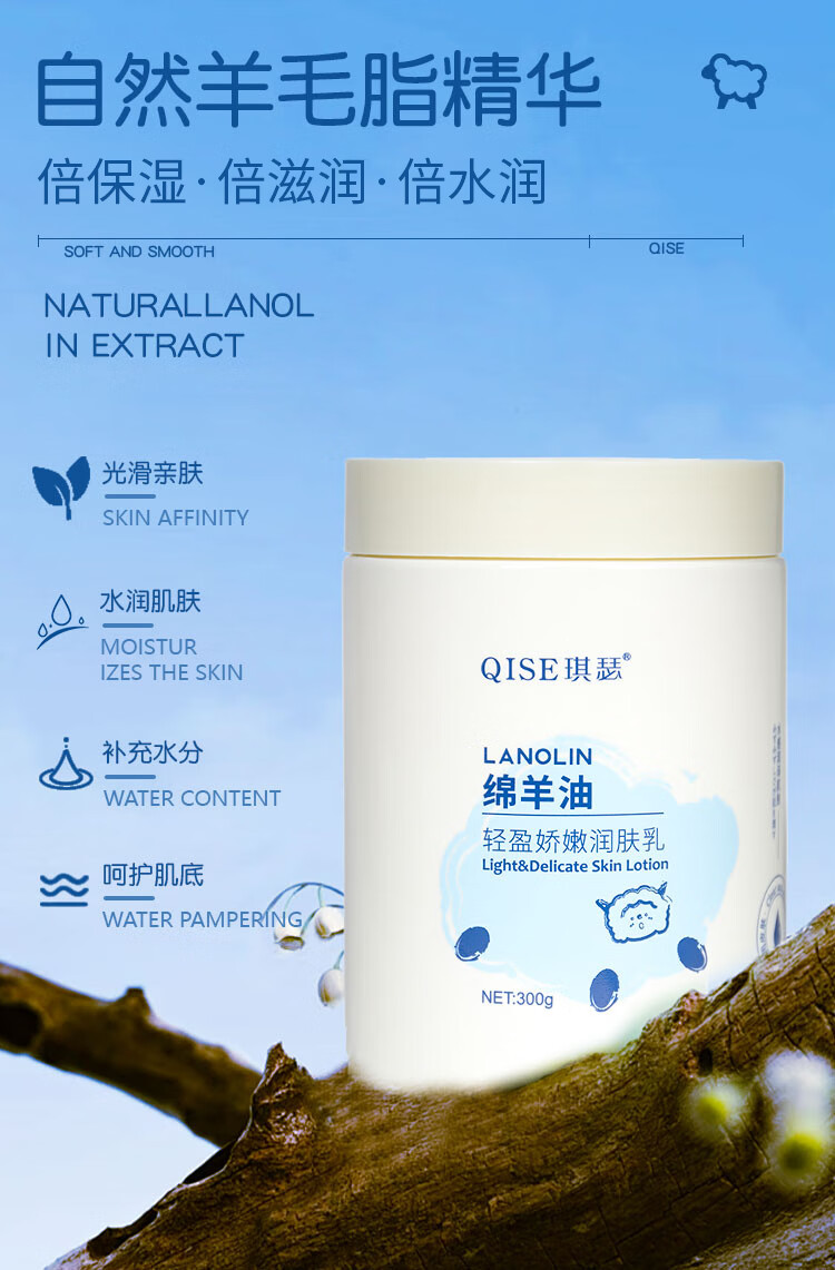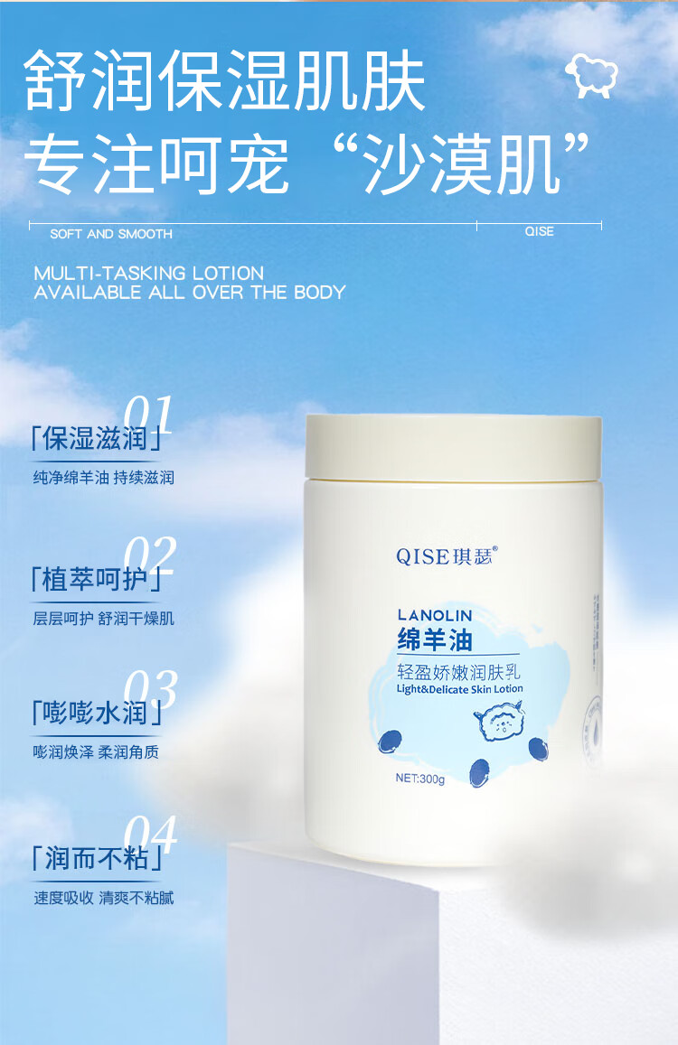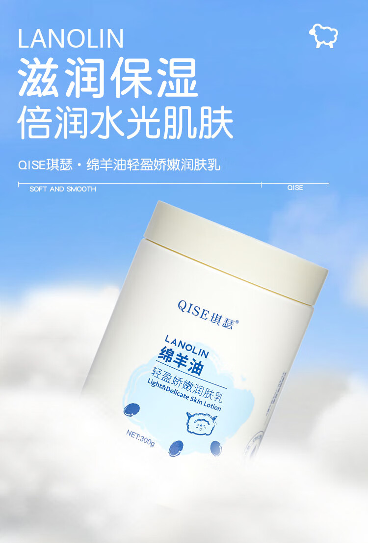 QISE绵羊油身体乳补水保湿润肤乳改善干燥粗糙持久留香秋冬季全身可用 绵羊油润肤乳300g*2瓶'