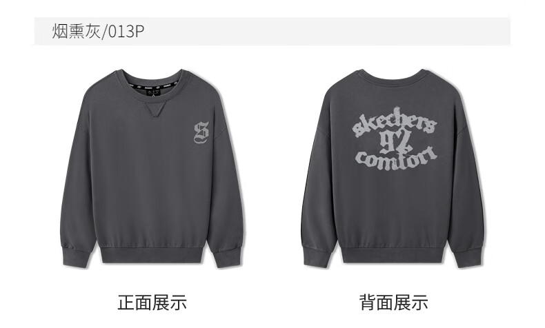 斯凯奇(Skechers)中性秋冬季宽松卫衣针织套头卫衣L325U048 烟熏灰/013P L