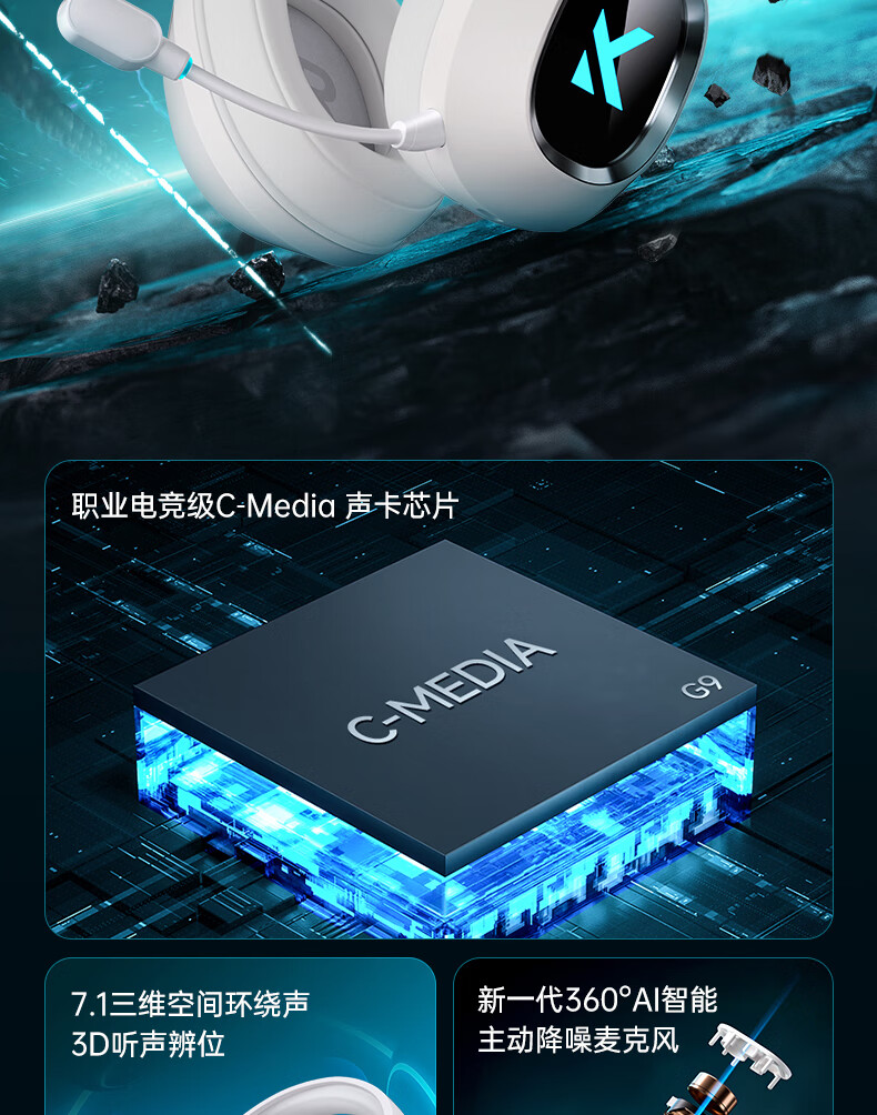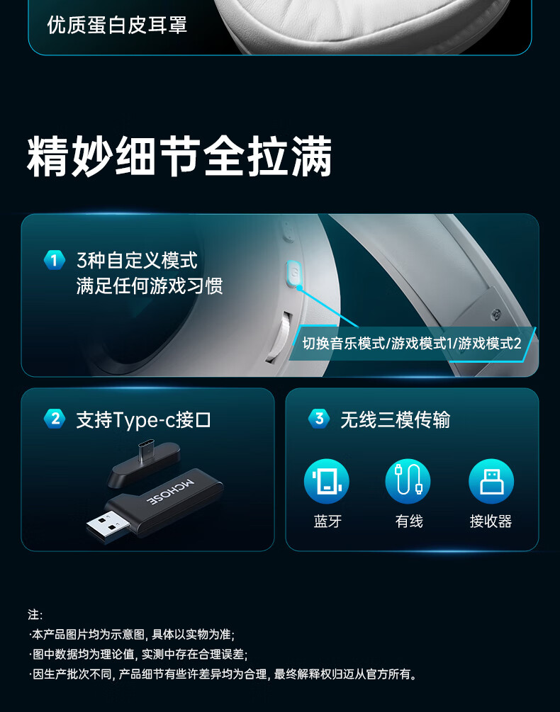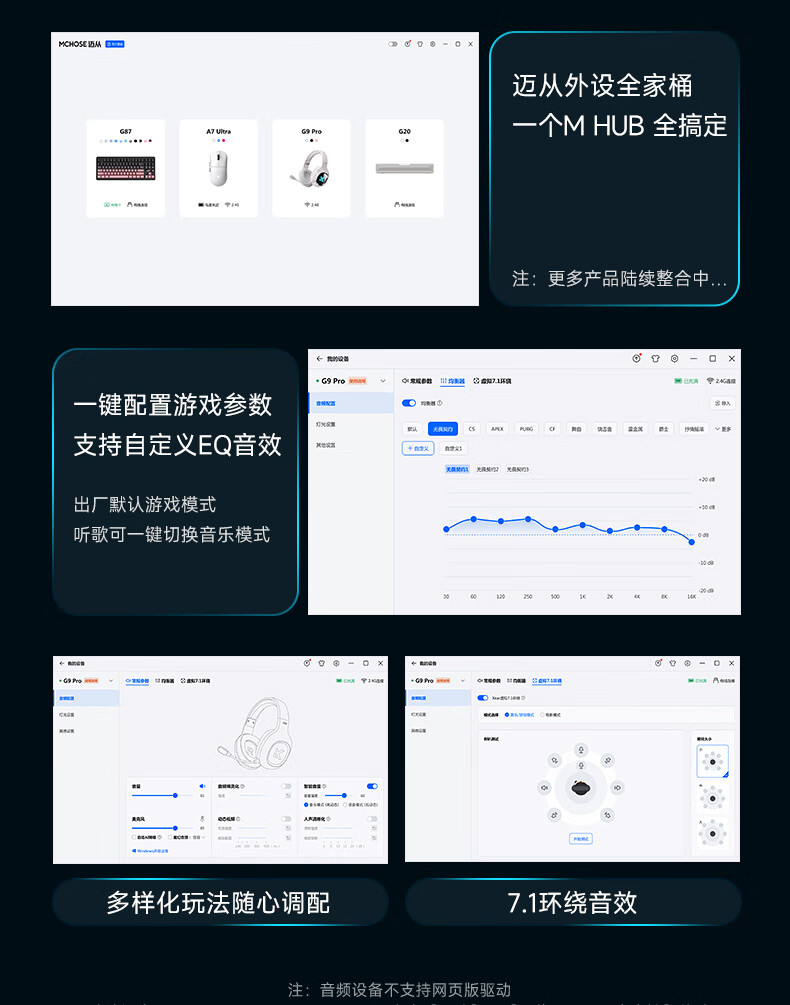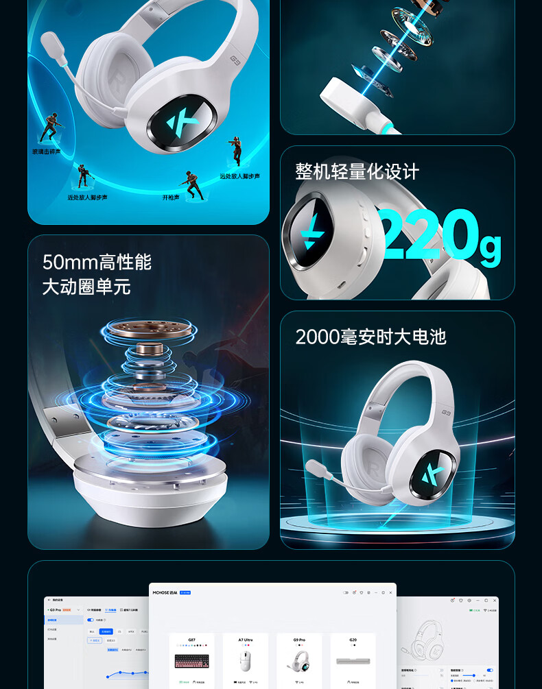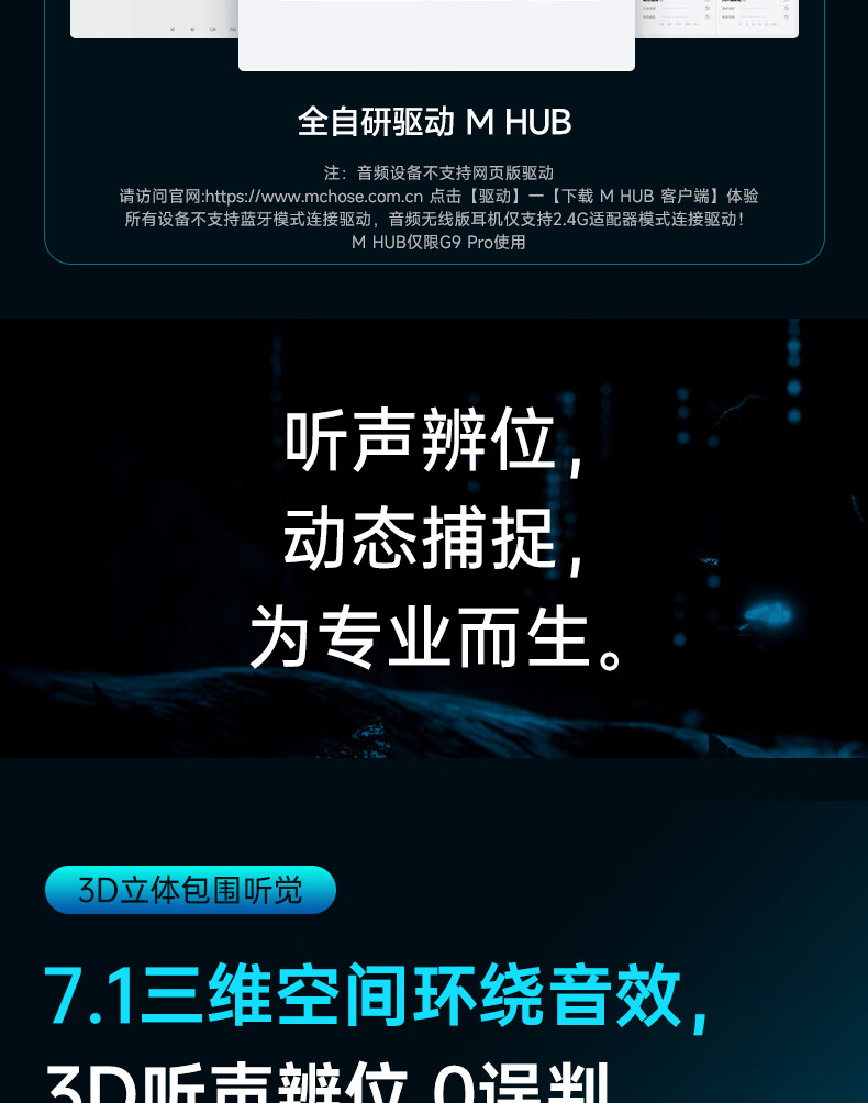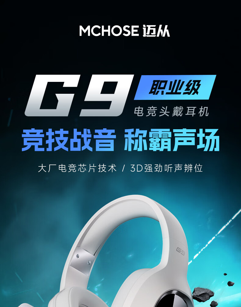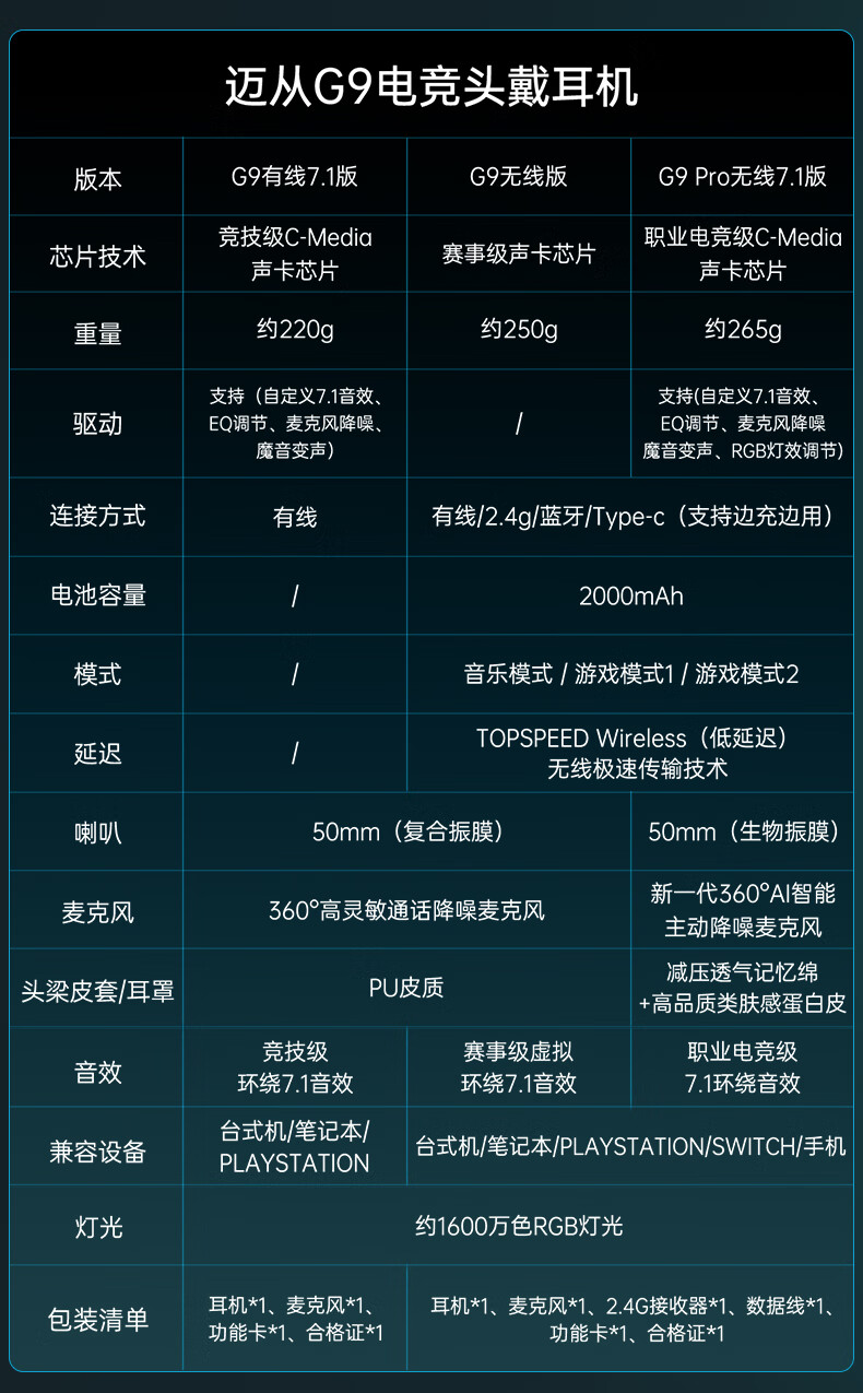 迈从(MCHOSE)G9Pro电竞游戏耳机头戴式电脑耳机电竞耳麦7.1声道三模蓝牙/有线/无线手机台式麦克风 G9 有线7.1版 黑色