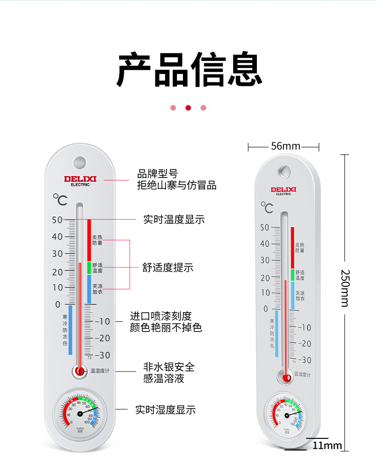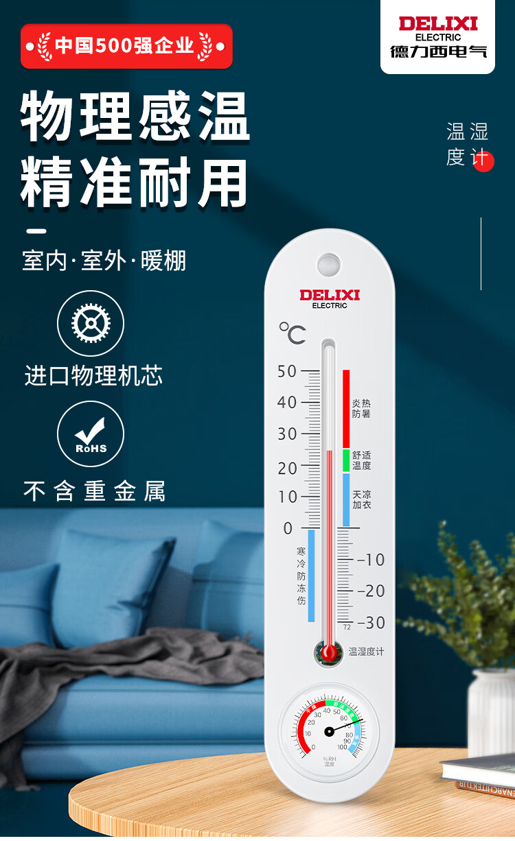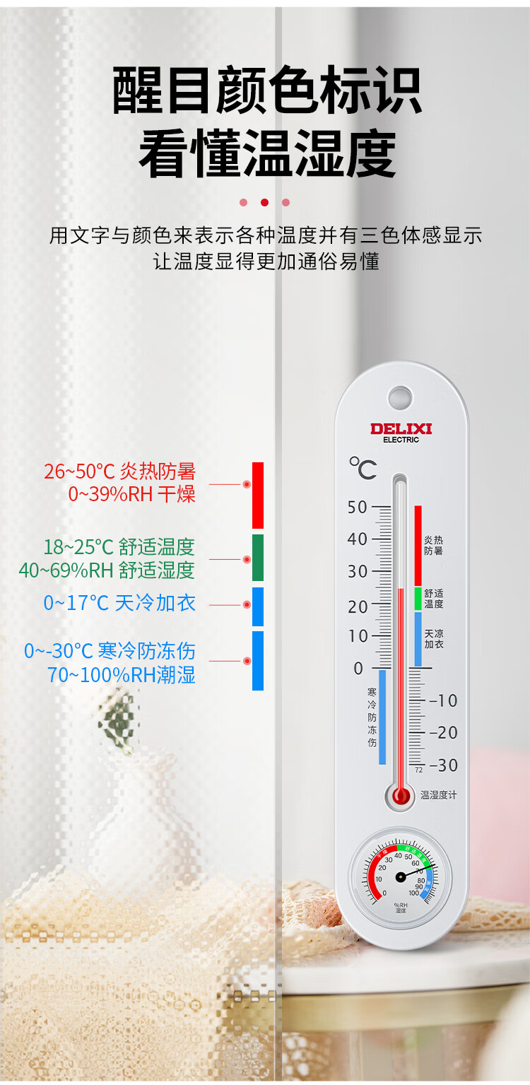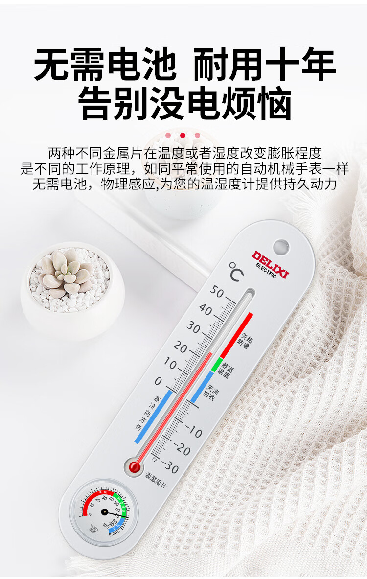 德力西电气(DELIXI ELECTRIC)温湿度计家用室内高精度物理温度计室内婴儿房立式干湿温度检测