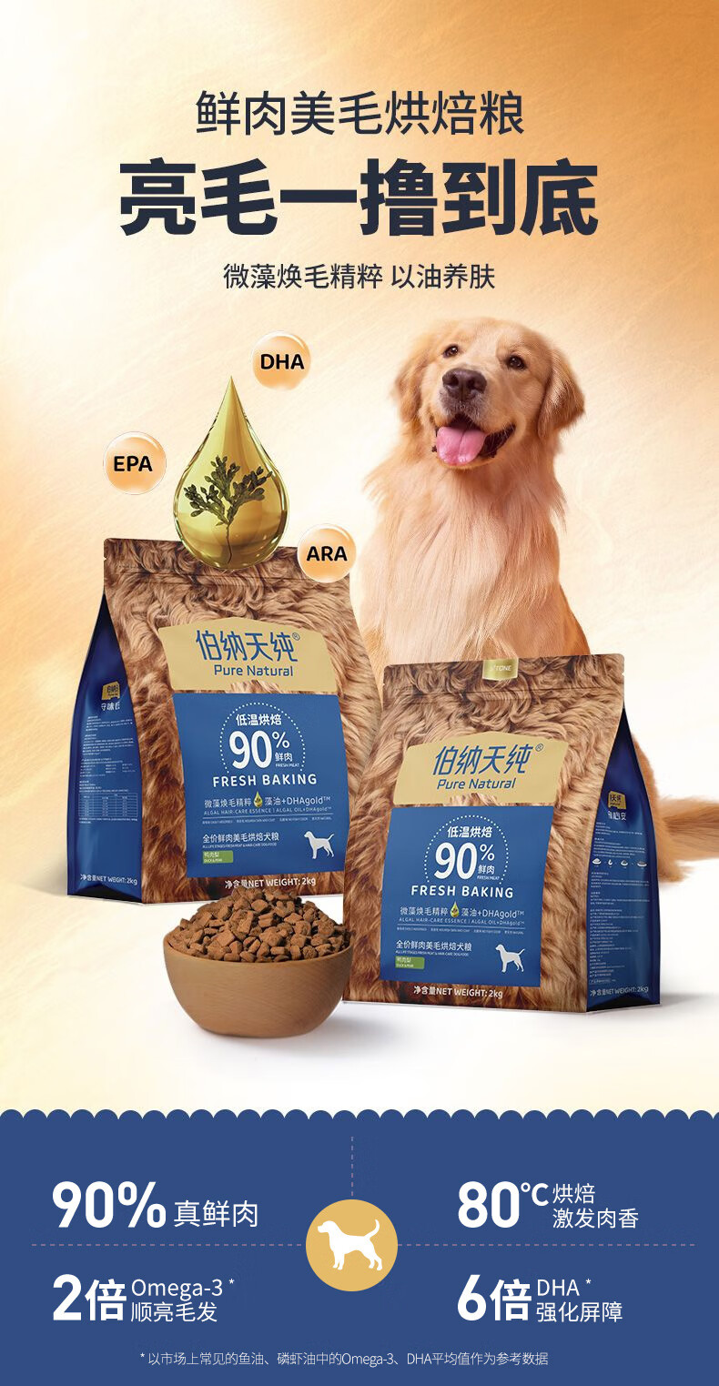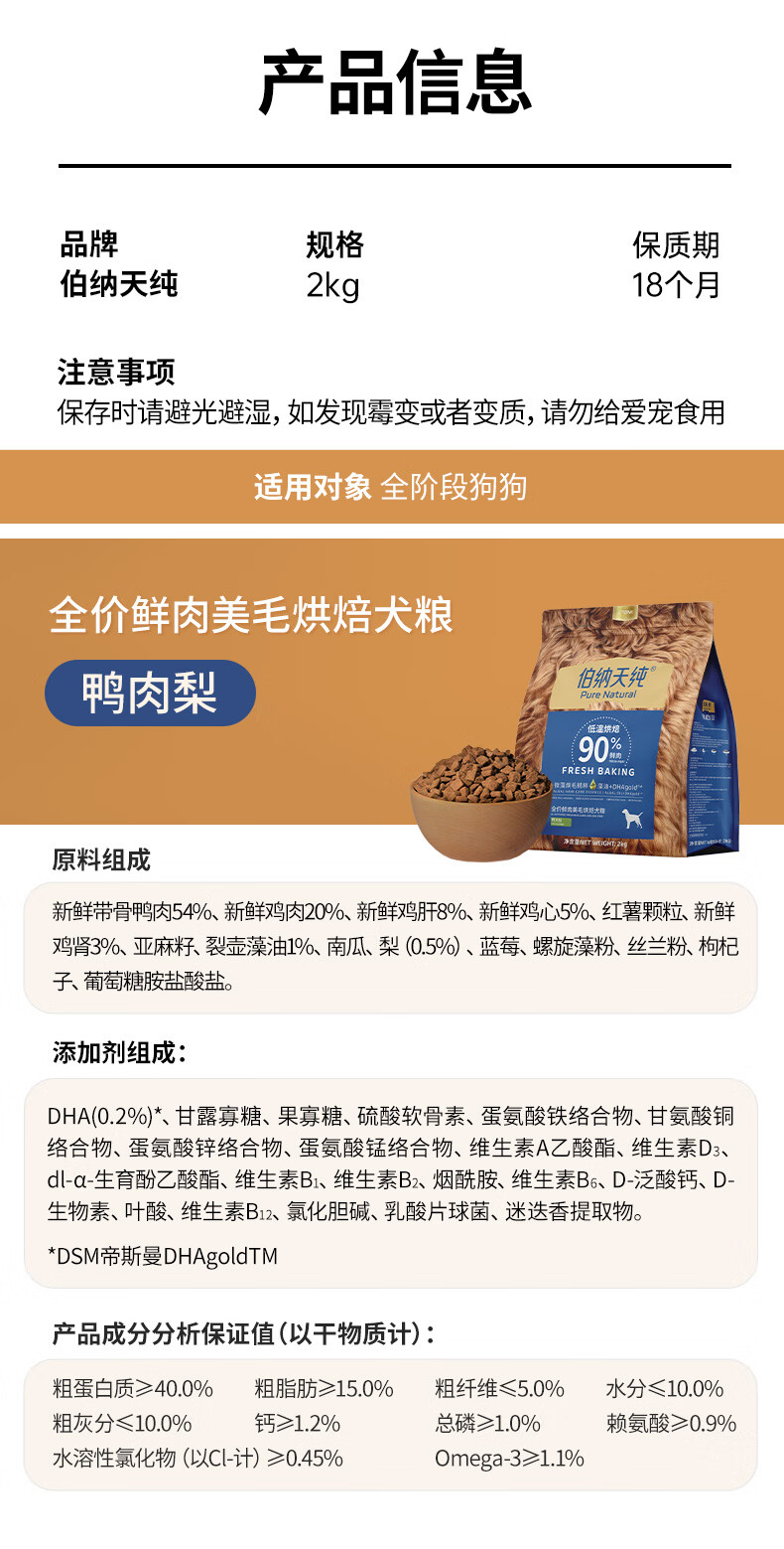伯纳天纯烘焙美毛狗粮鲜肉美毛犬粮鸭肉梨2kg/4斤