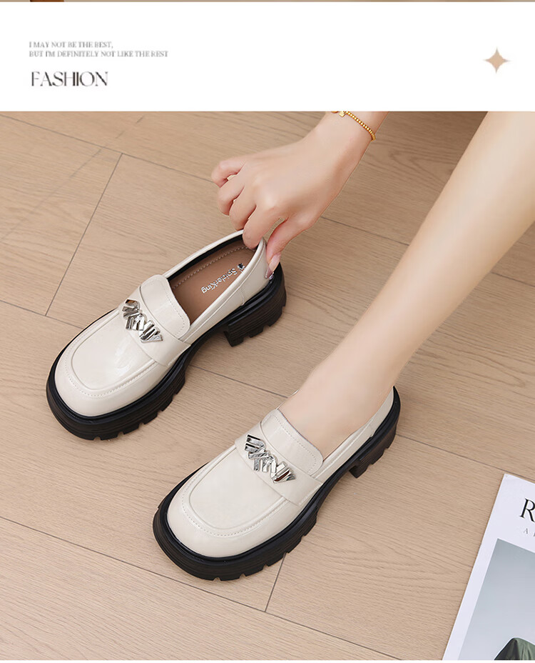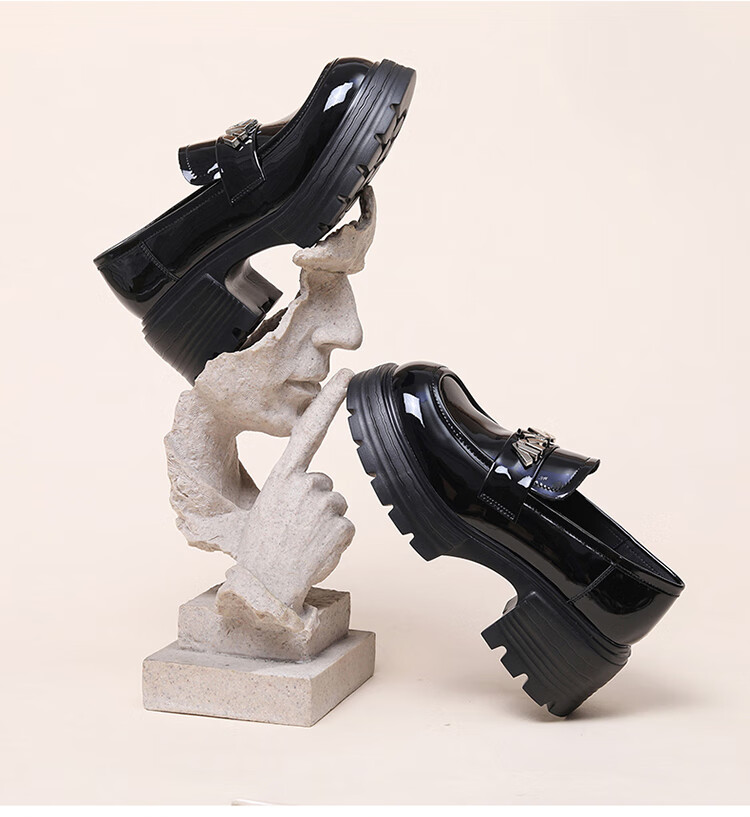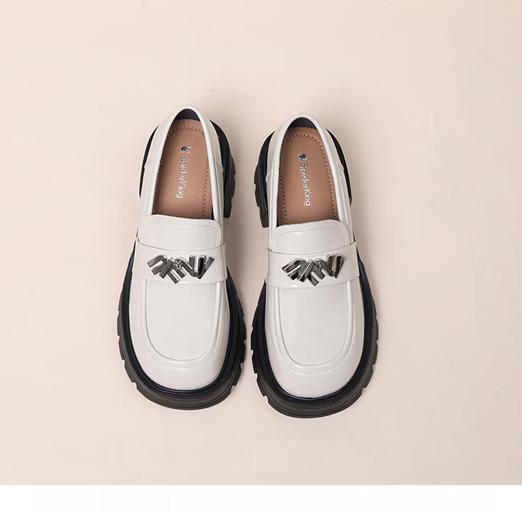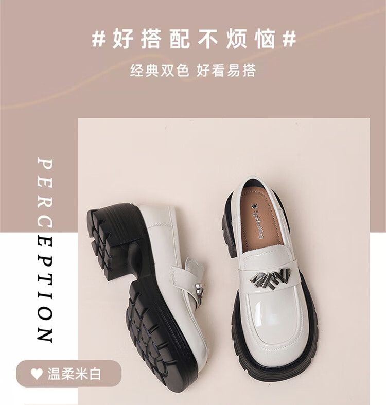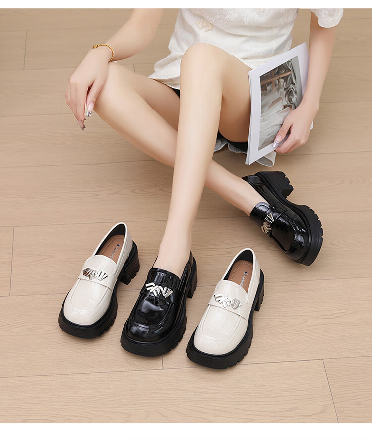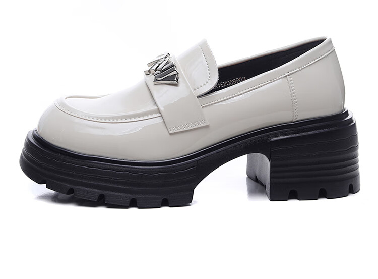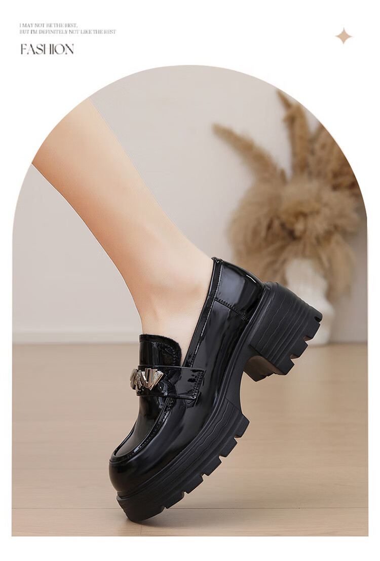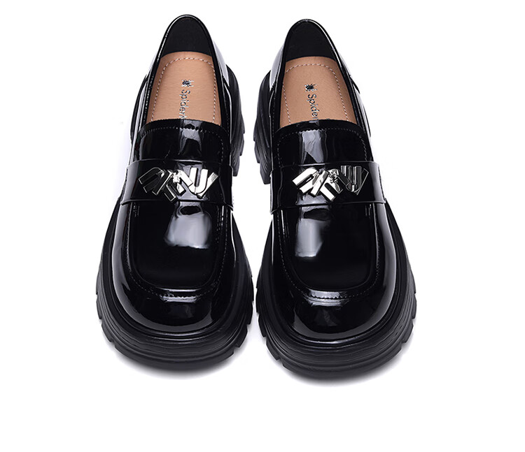 蜘蛛王厚底乐福鞋女鞋秋季漆皮粗跟增高单鞋英伦风小皮鞋 黑色 37