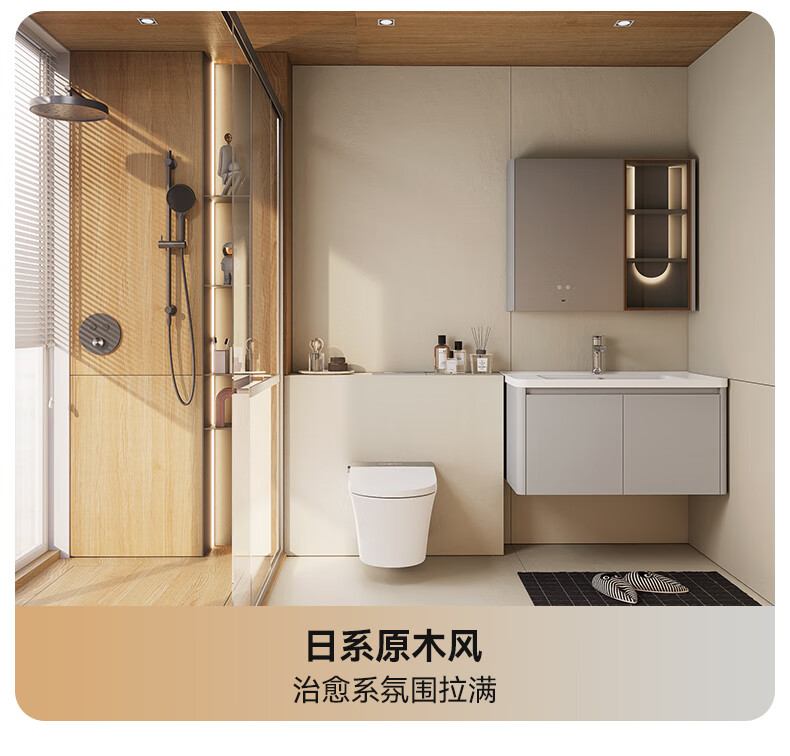 瑞尔特(R&T)2025年新款浴室柜组合法式铝框玻璃门卫生间洗脸洗漱台盆柜 Y1060-90cm【法式铝框玻璃门+触摸感应氛围灯+除雾】
