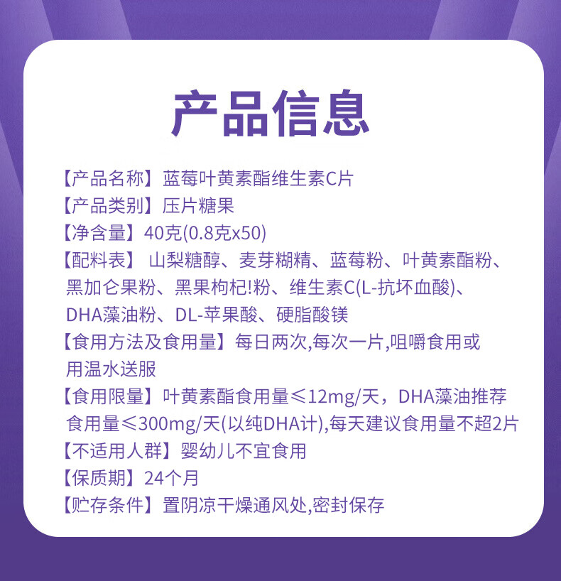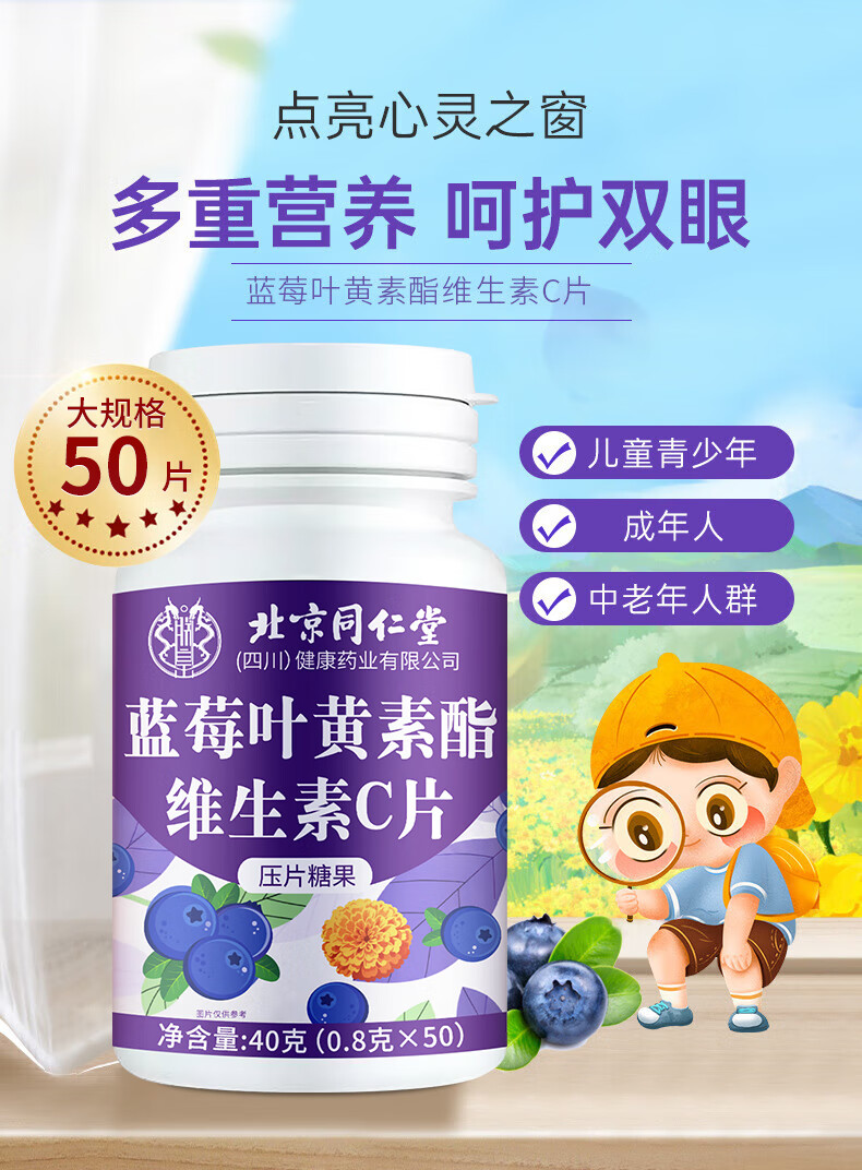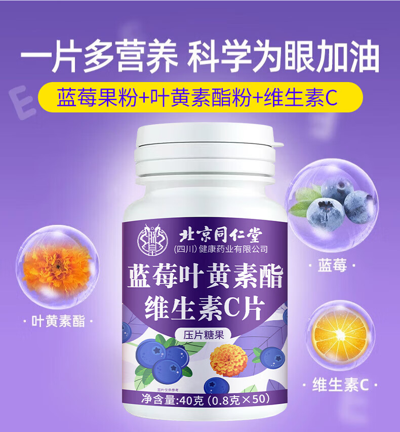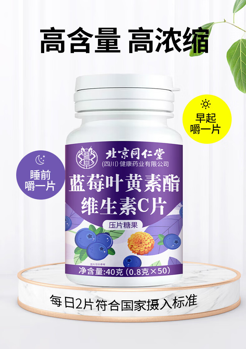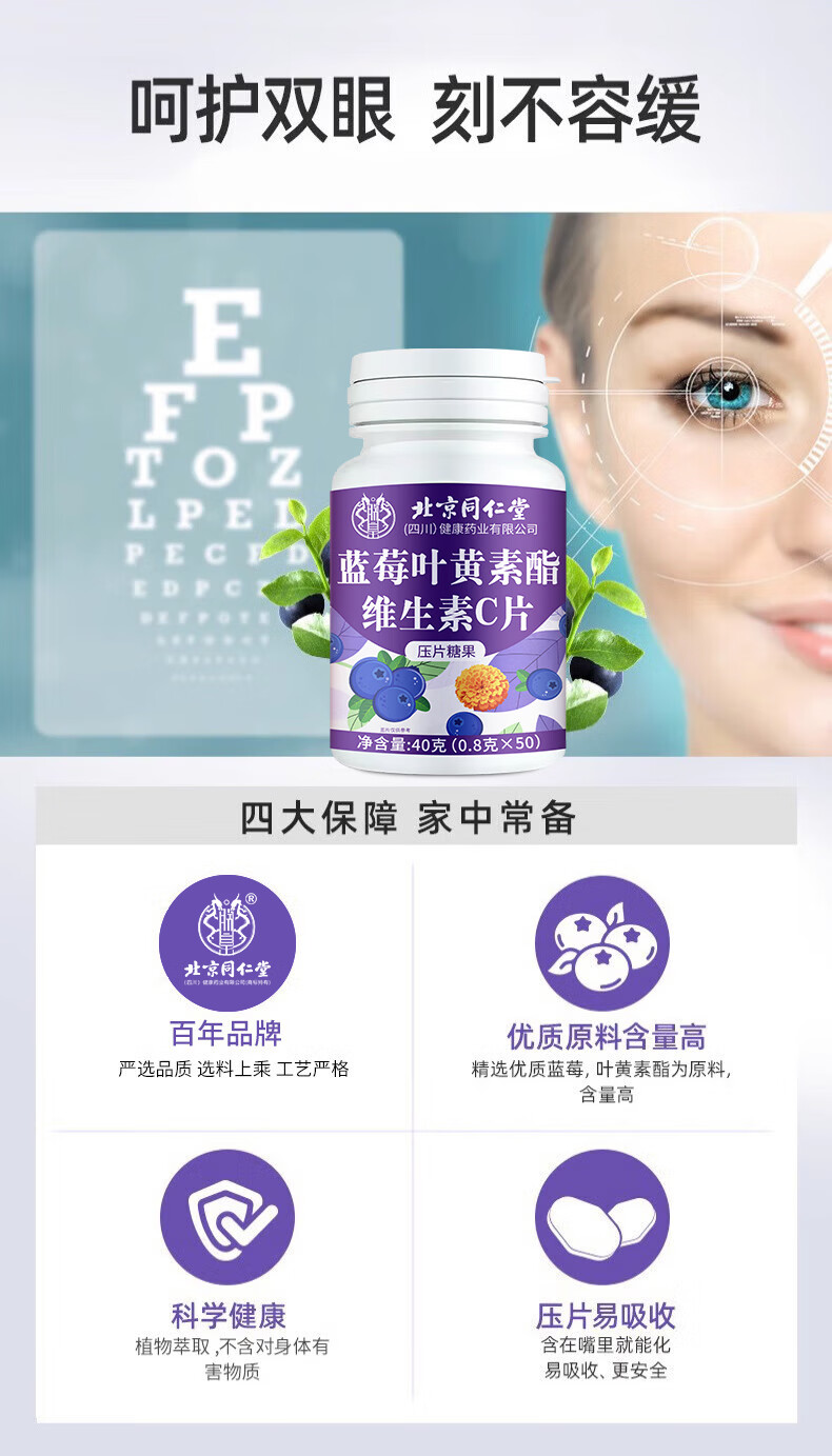 朕皇北京同仁堂蓝莓叶黄素维生素C片中老年视力模糊不清眼睛疲50粒