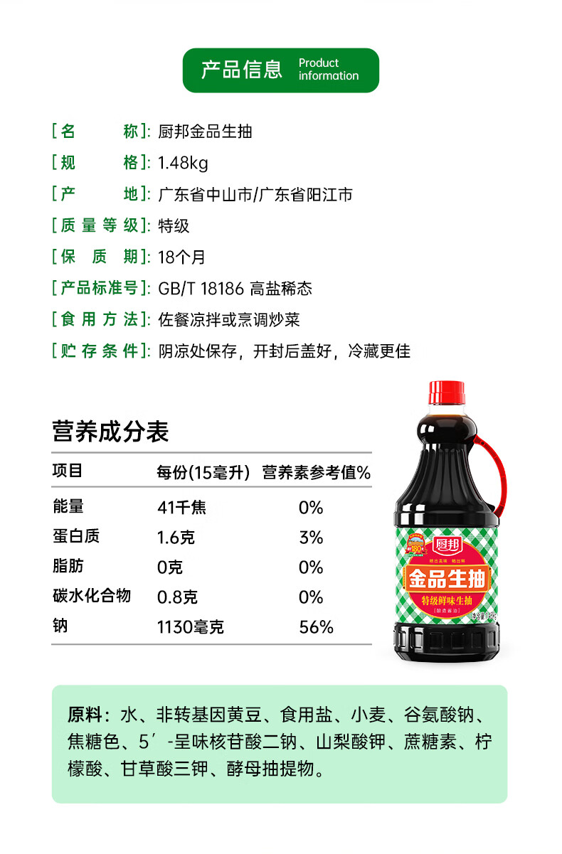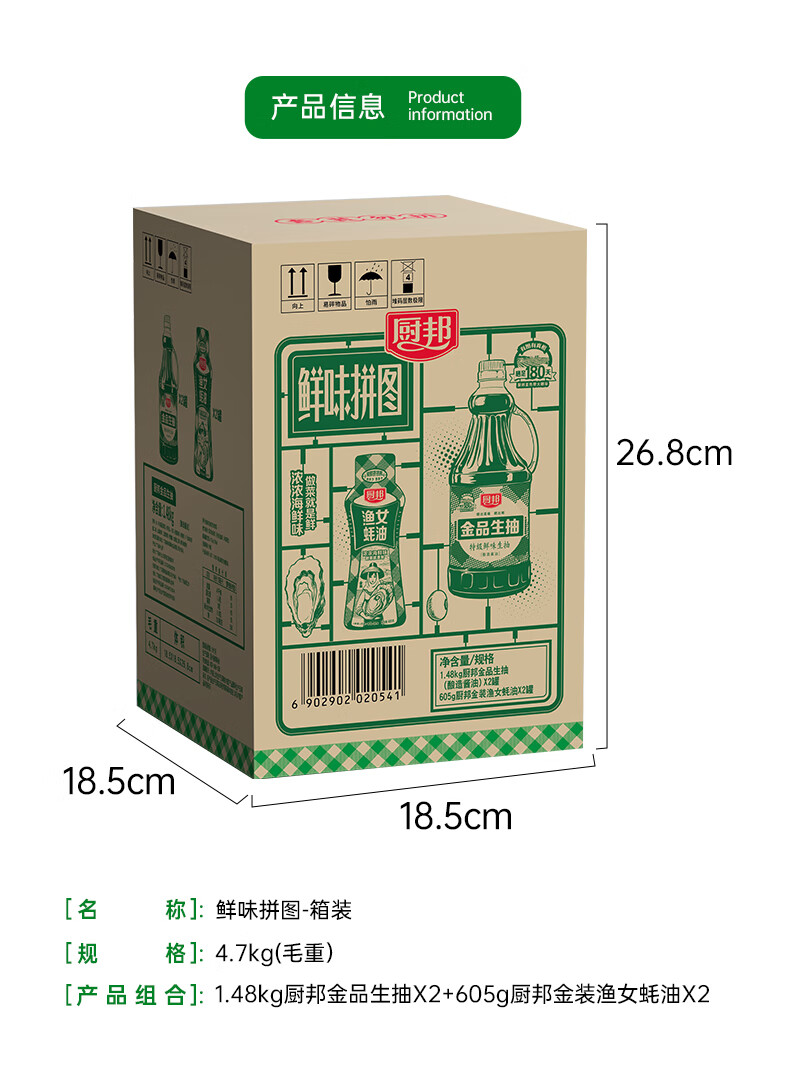 厨邦酱油 金品系列 生抽 酱油1.48kg*2+渔女蚝油605g*2 调料套装礼盒