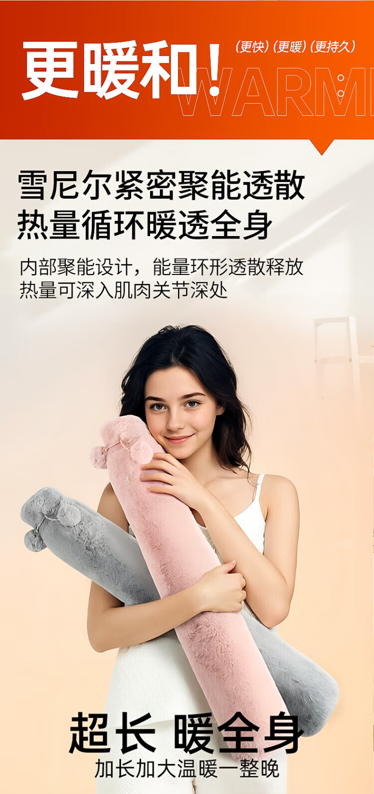 WCZ德国热水袋加超长款特大注水长条形暖水袋被窝专用女生神器大姨妈 兔绒灰色 大号80CM(可拆洗无异味亲肤不掉毛)