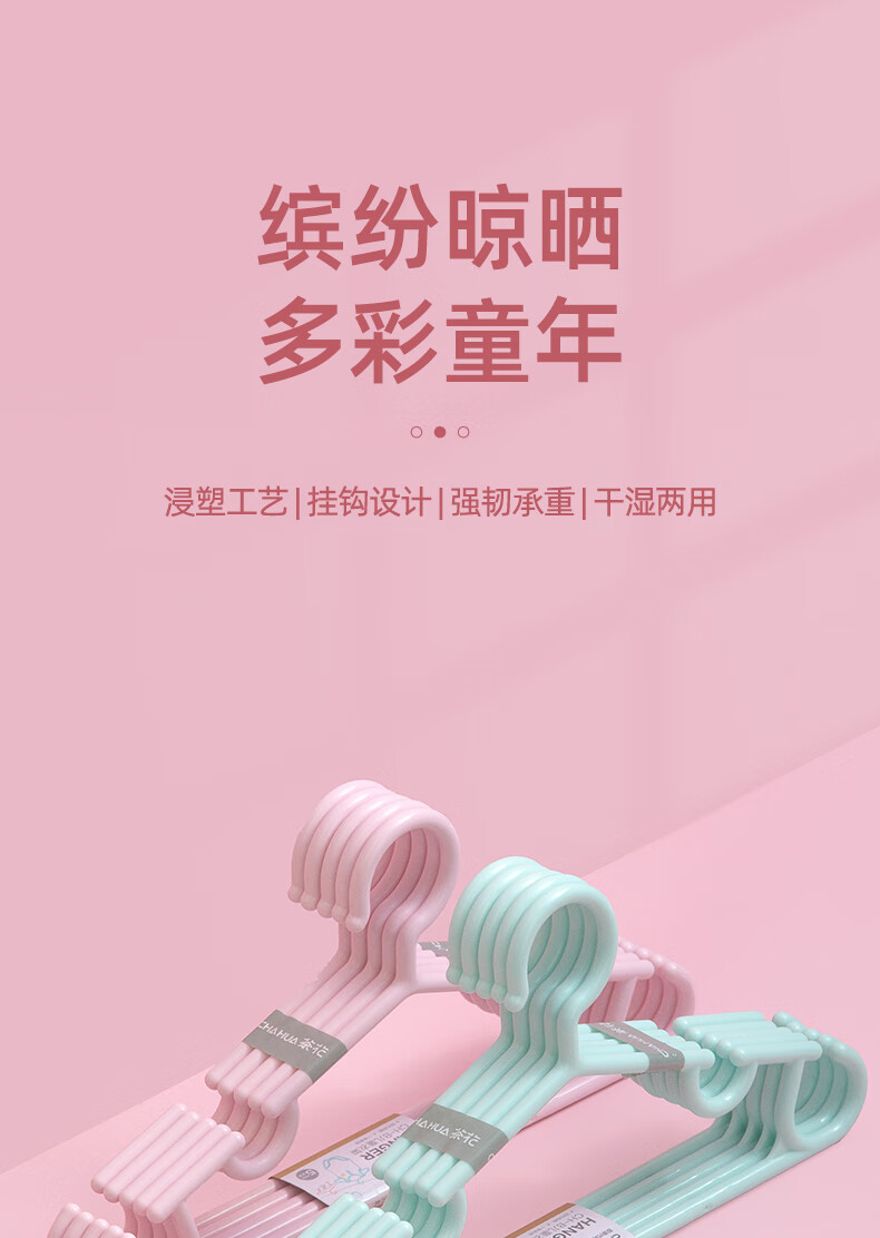 茶花儿童衣架宿舍家用婴儿宝宝撑子小孩学生小衣架塑料婴幼儿挂衣 儿童衣架【米色】安全无异味 10个装