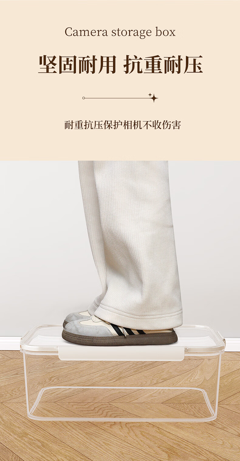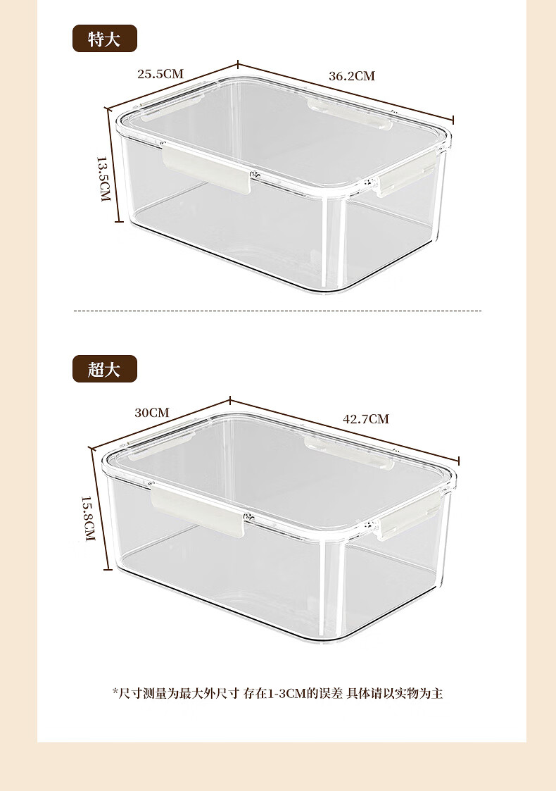 沃尊衣服收纳箱透明窄长型收纳盒夹缝衣物储物盒牛津布衣柜收纳整理箱 米色-大号49L【47*35*30cm】