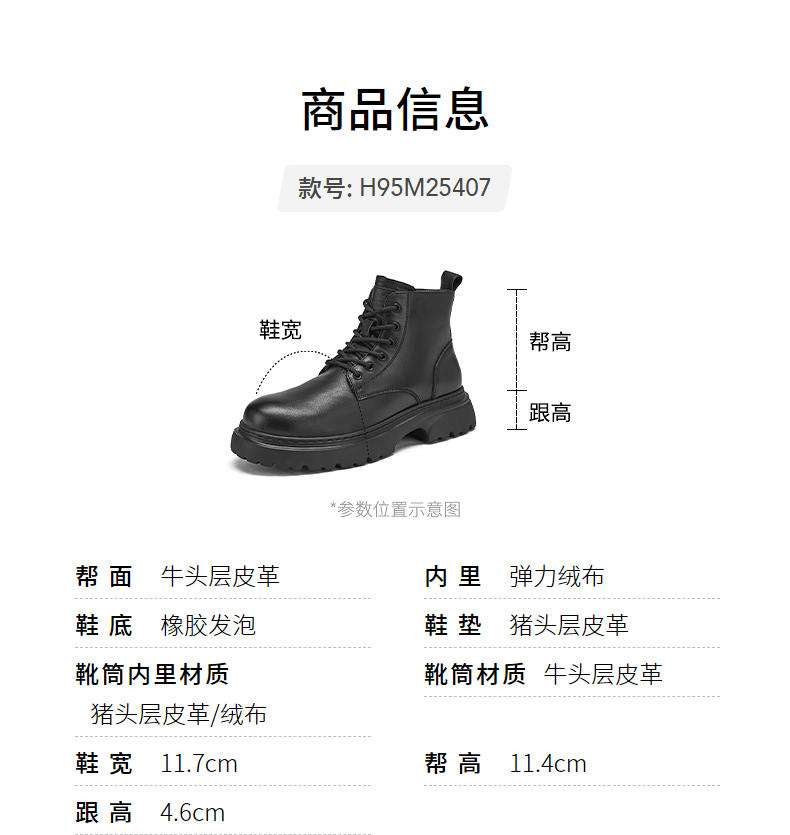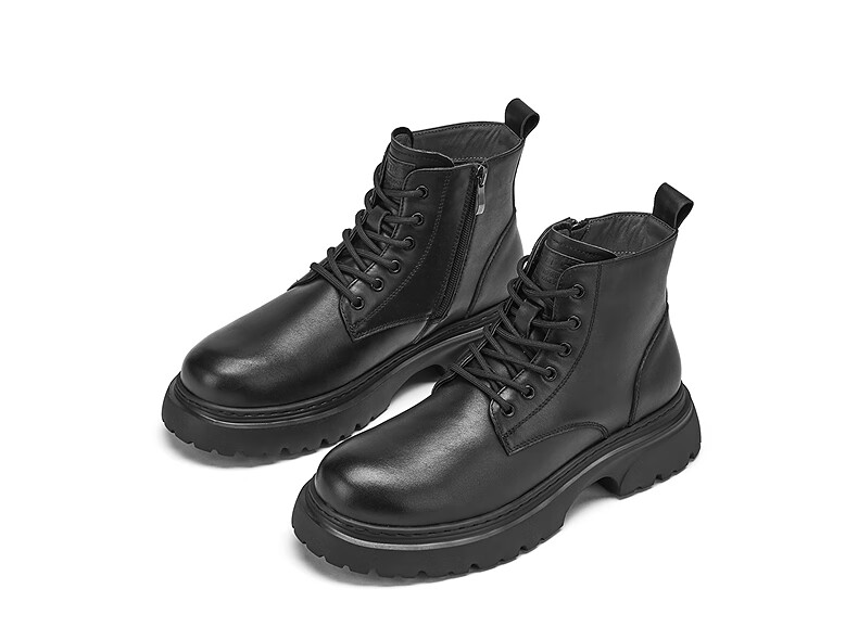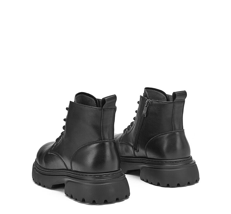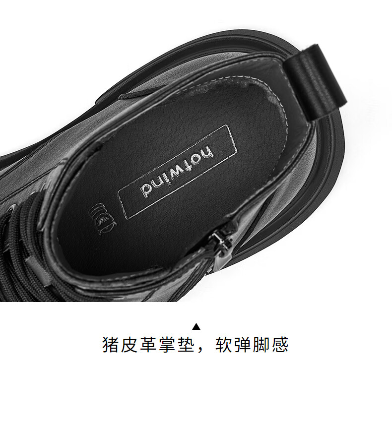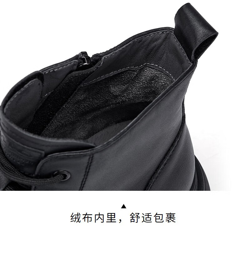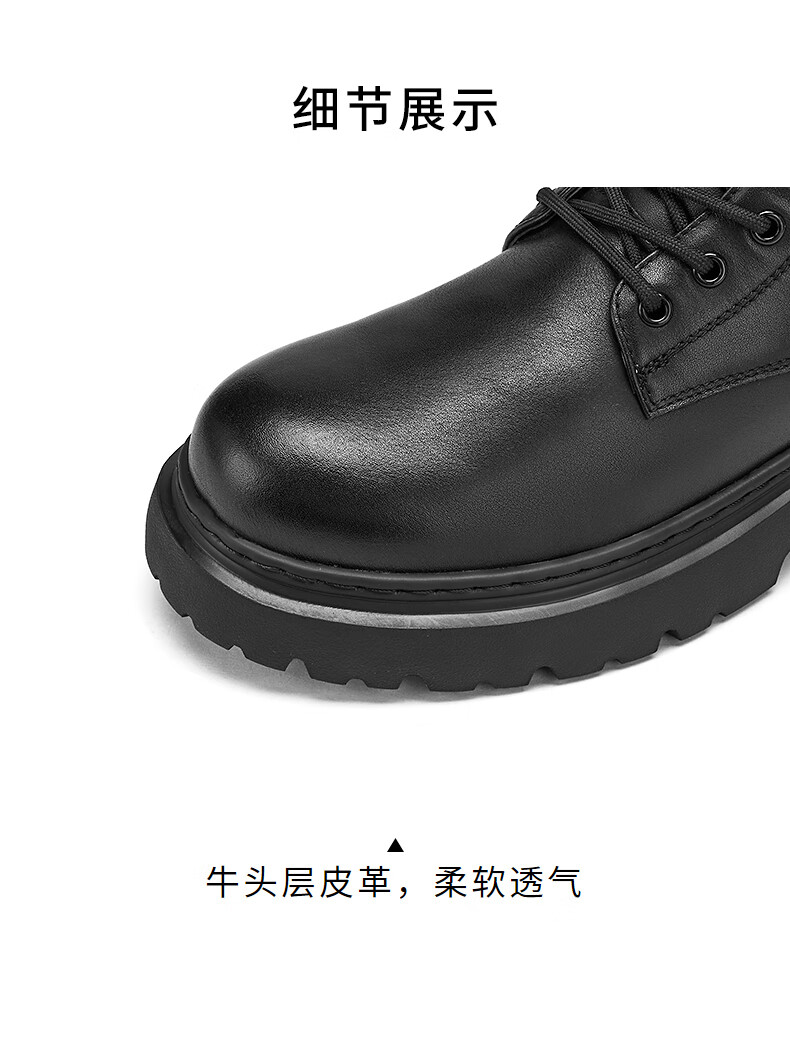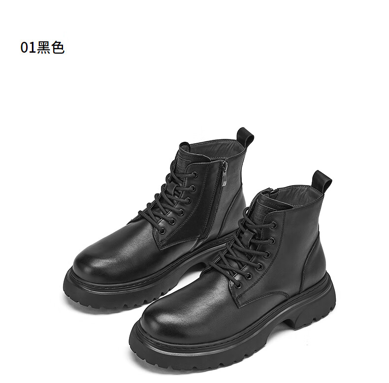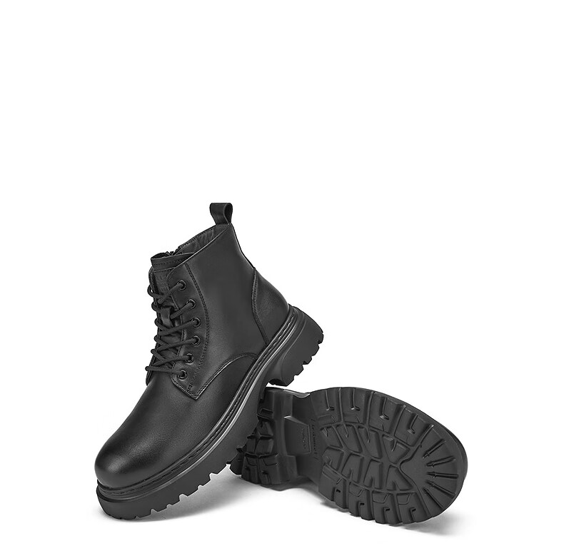 热风(Hotwind)男鞋2025年冬季新款男士英伦风厚底马丁靴百搭户外黑色休闲靴 01黑色 (牛头层皮革) 42