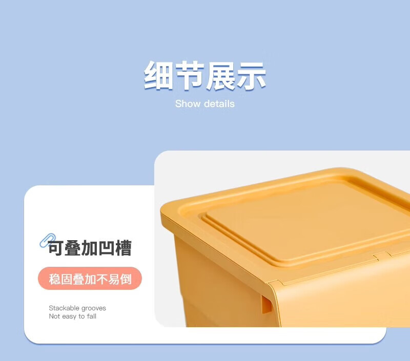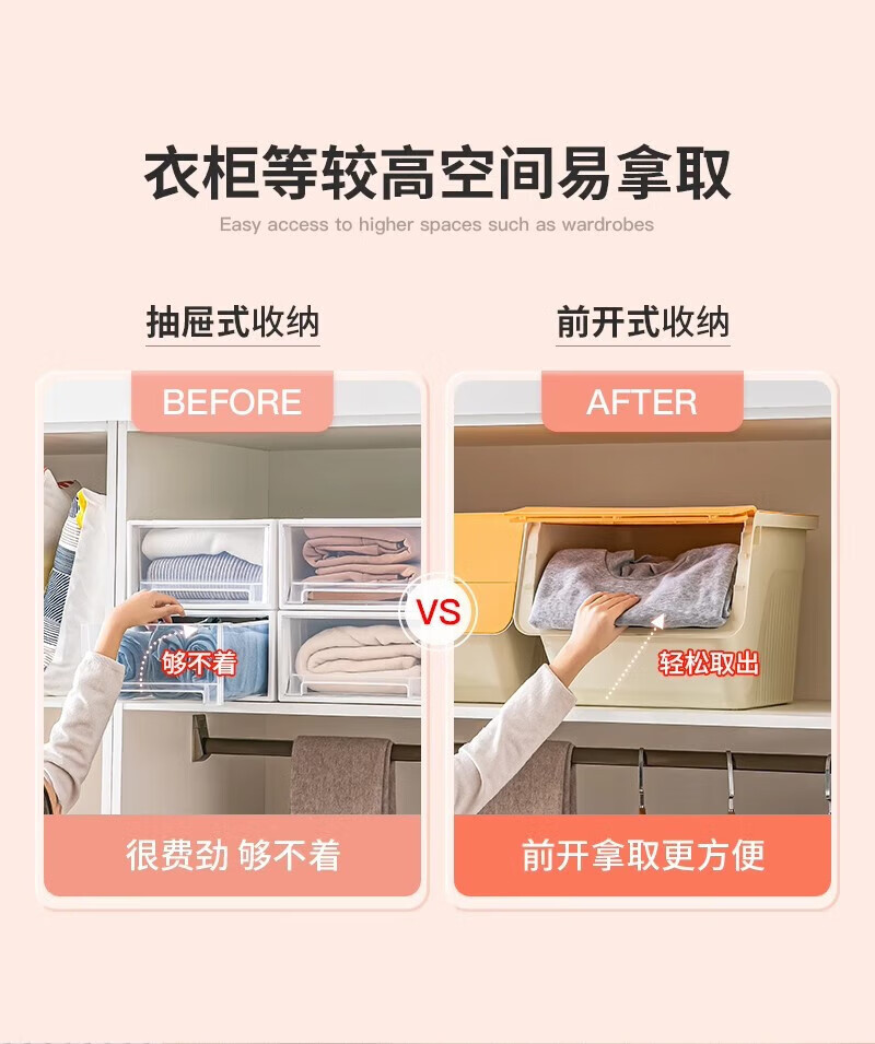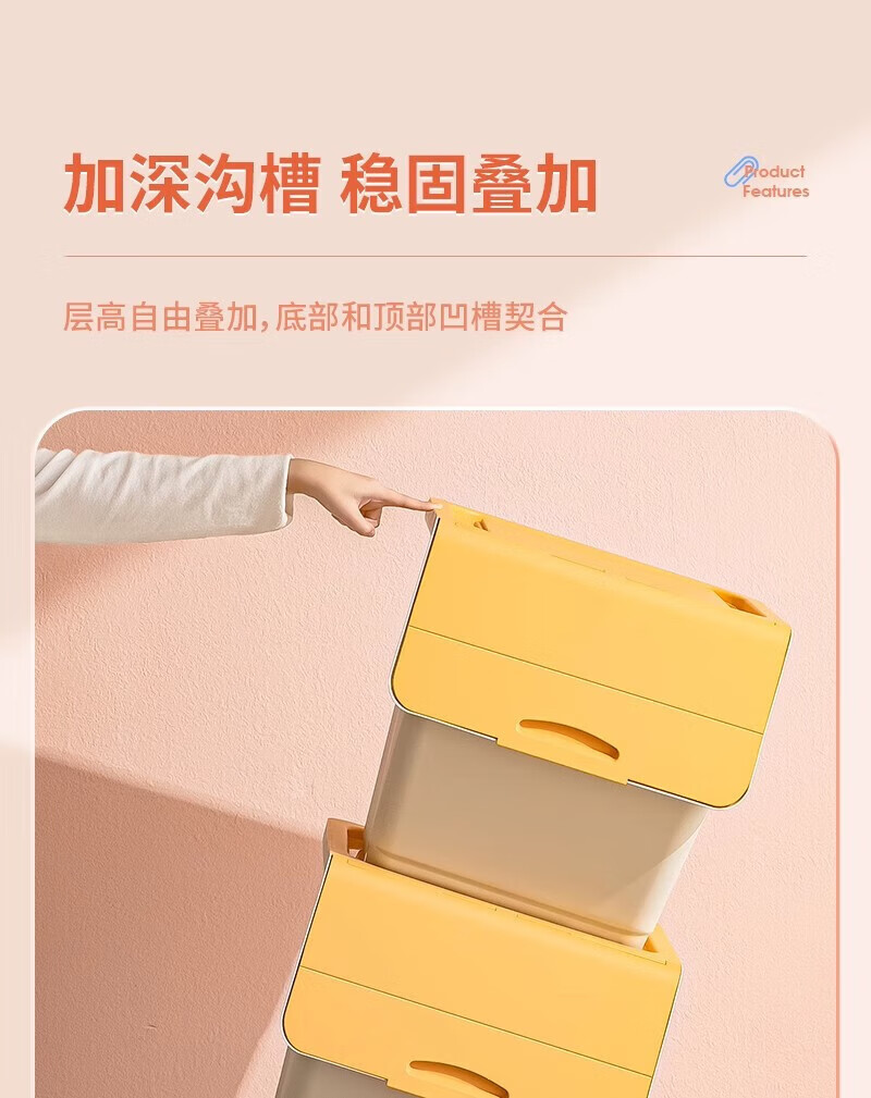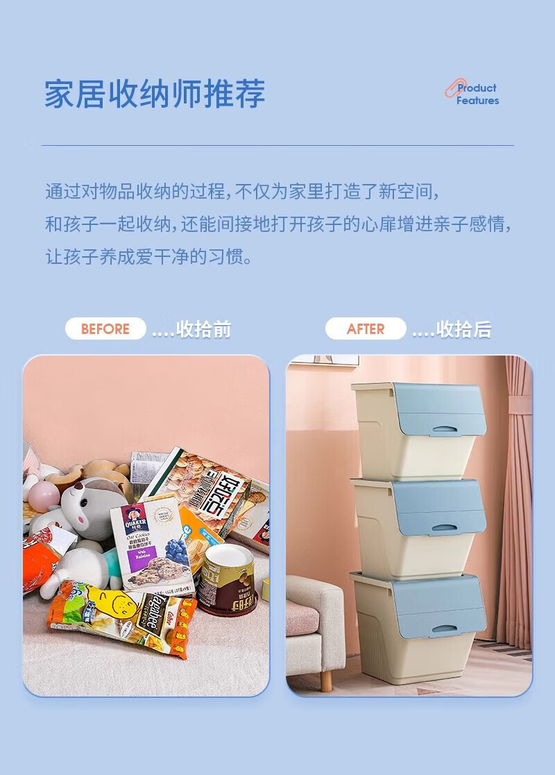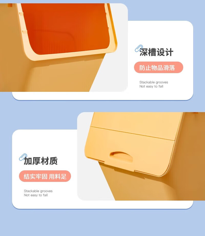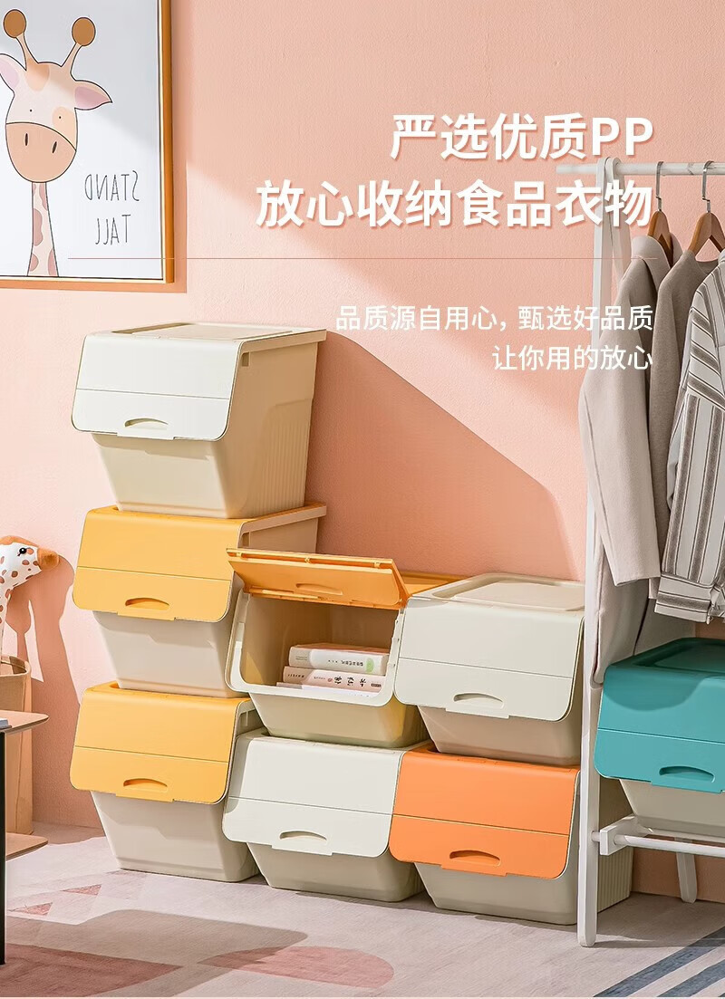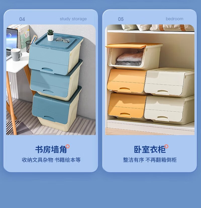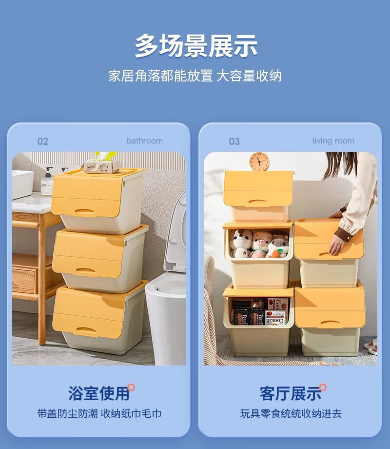 星优前开式收纳箱儿童玩具家用翻盖储物箱衣服整理箱装书本零食 【大号】定制黄-4个装