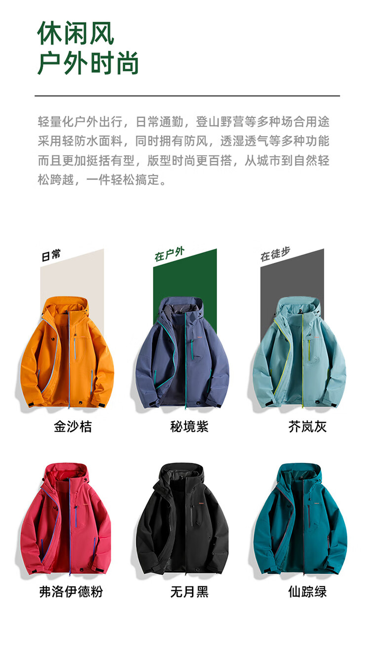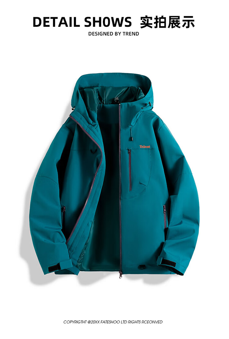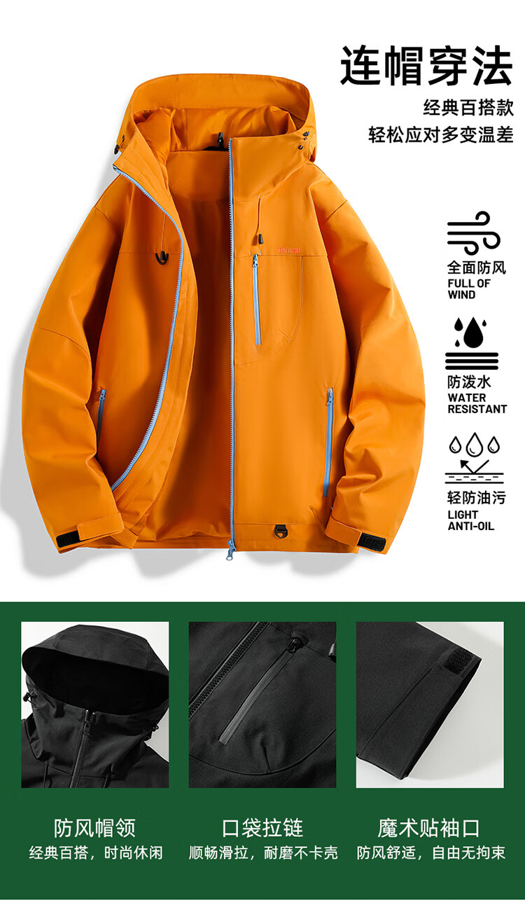 天伦天(Telent)冲锋衣男秋冬夹克上衣户外防风防水运动透气登山服 金沙桔 M
