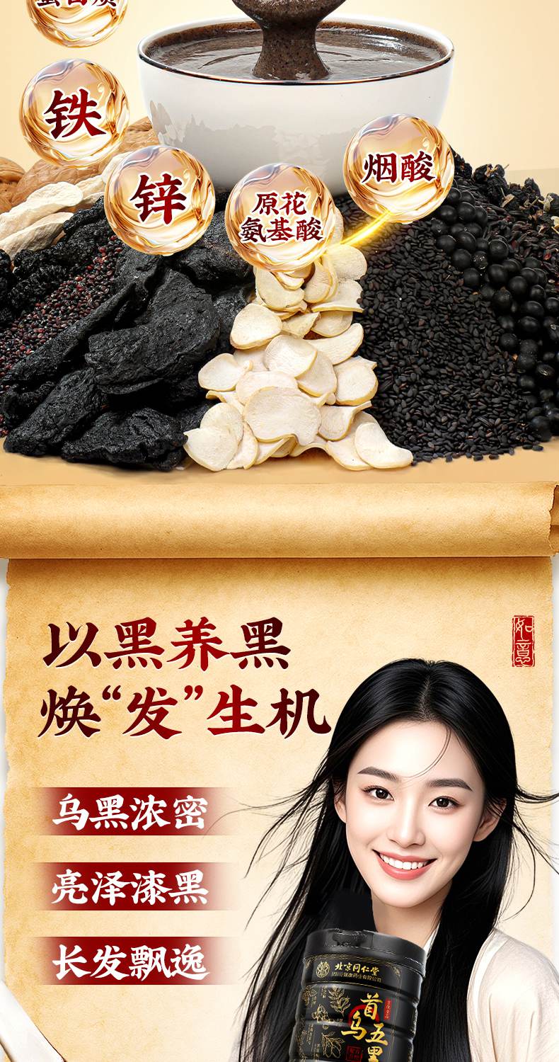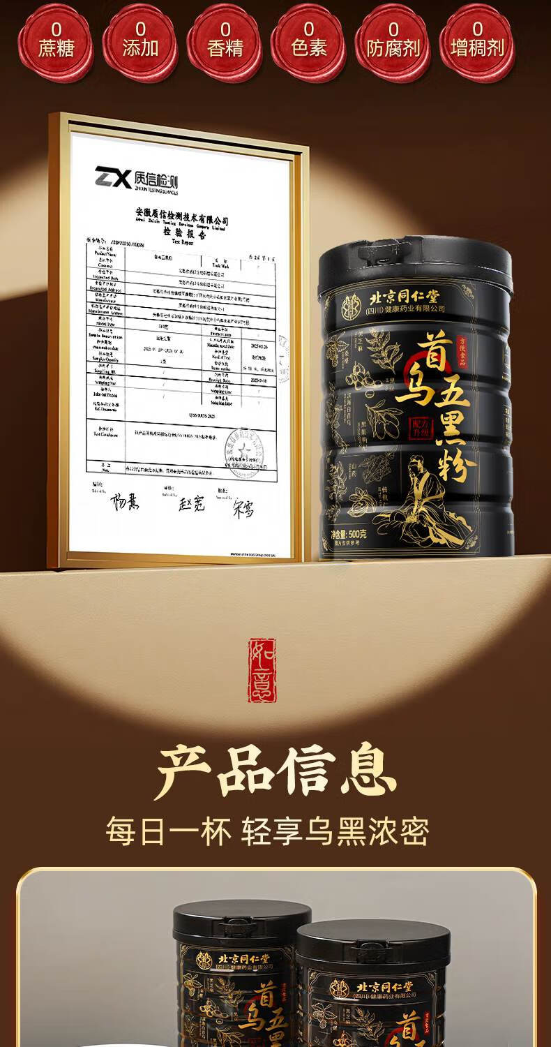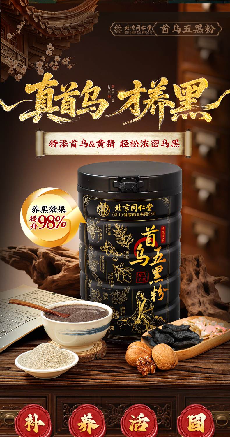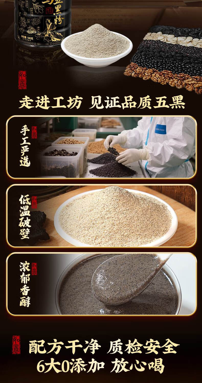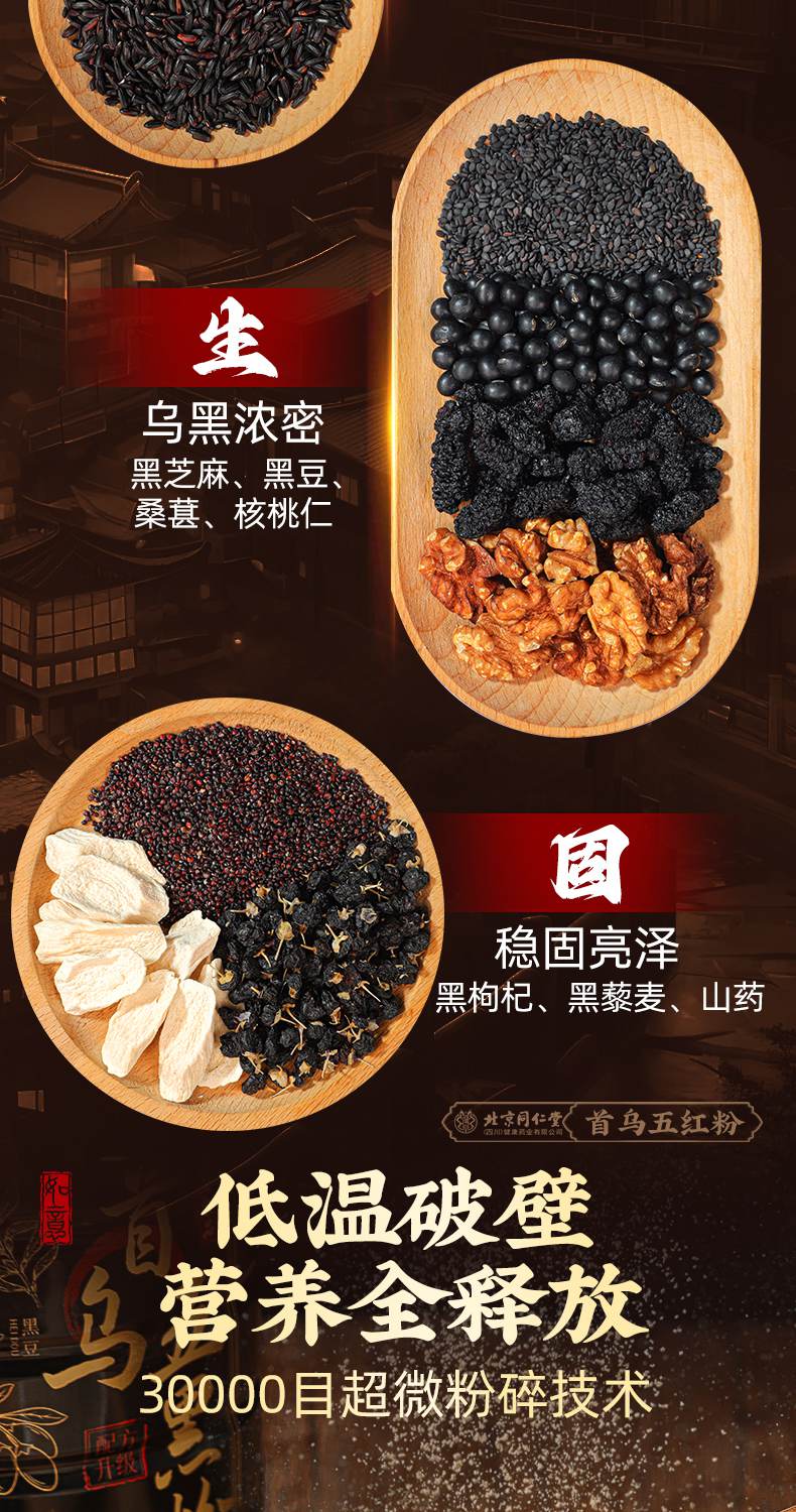 同仁堂首乌五黑粉500g黑芝麻豆藜麦枸杞桑葚黄精山药核桃生养发早代餐粉