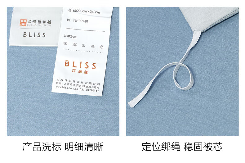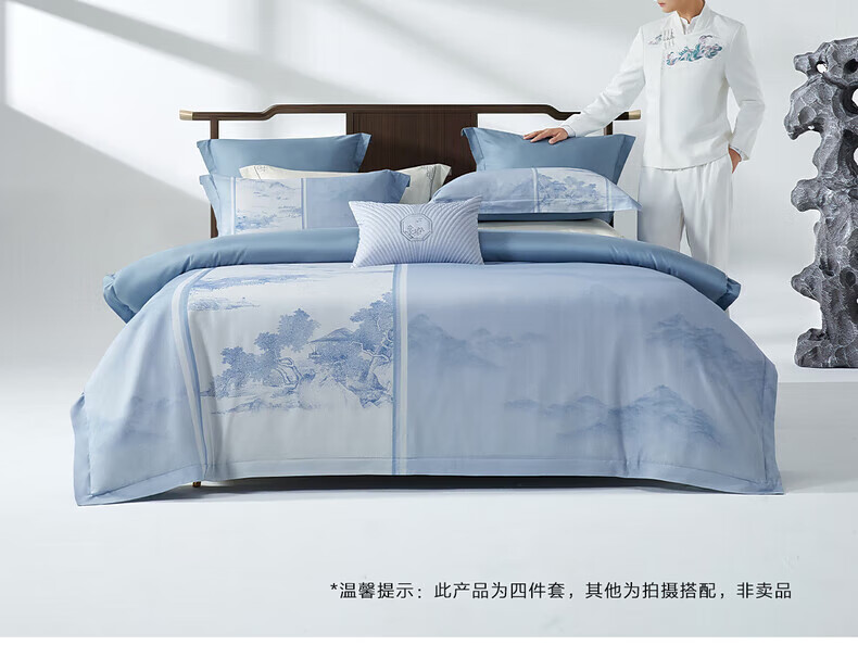 百丽丝四件套苏博联名款100纯棉新疆棉新款床上四件套透气可机洗 禾庭山隐·霁蓝 床单款 (被套200*230cm)