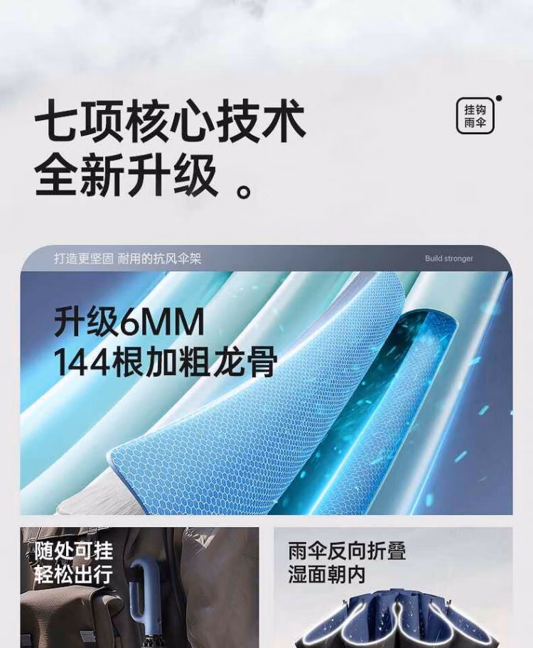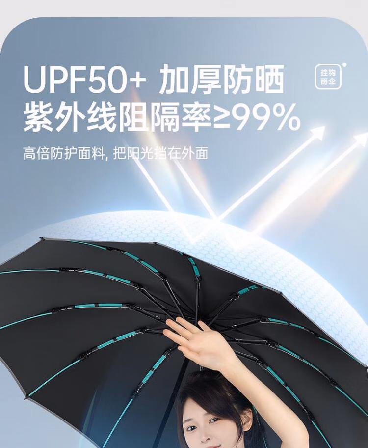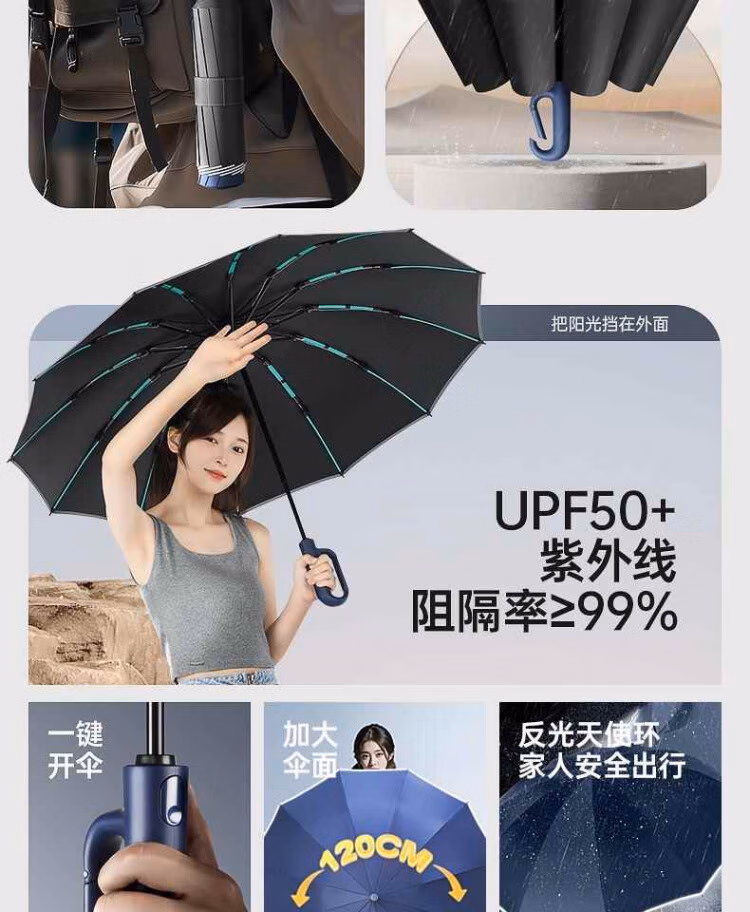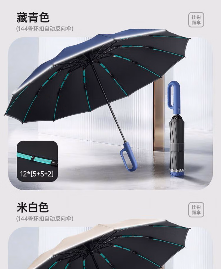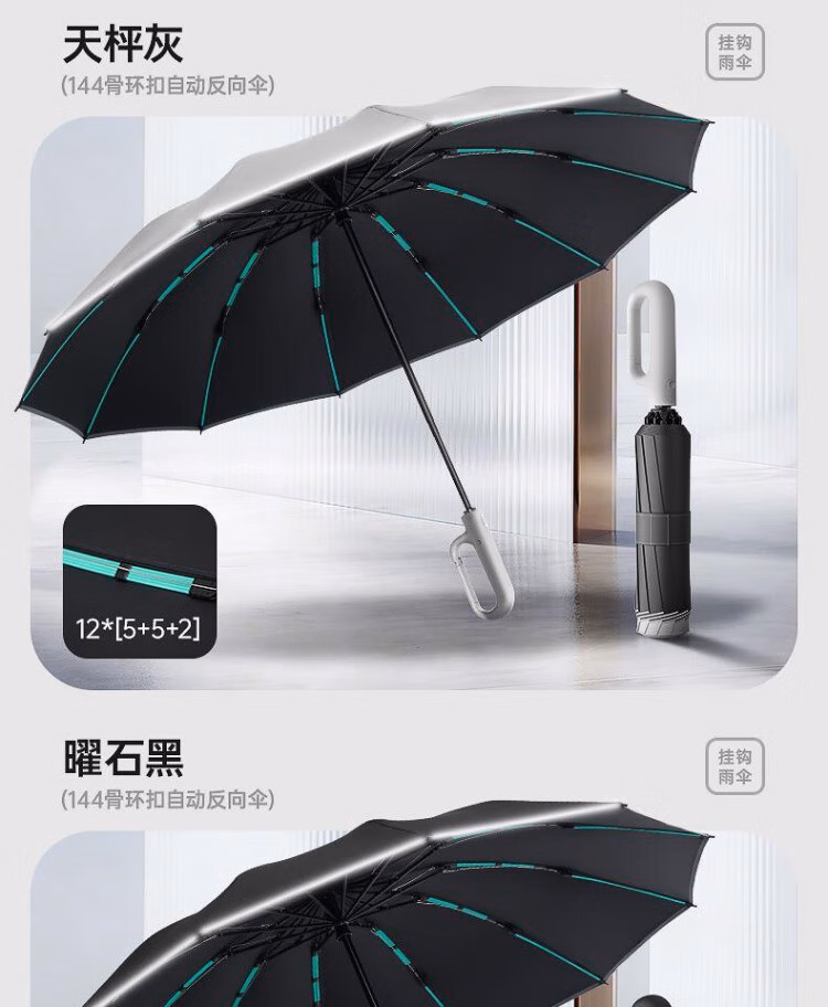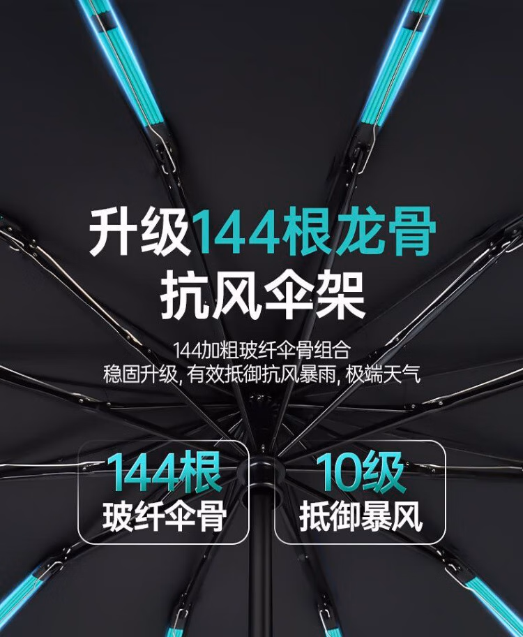 DEATKN德国全自动雨伞加大号加固加厚男士女晴雨两车载反向折叠 全自动【144根抗风伞骨】曜石黑