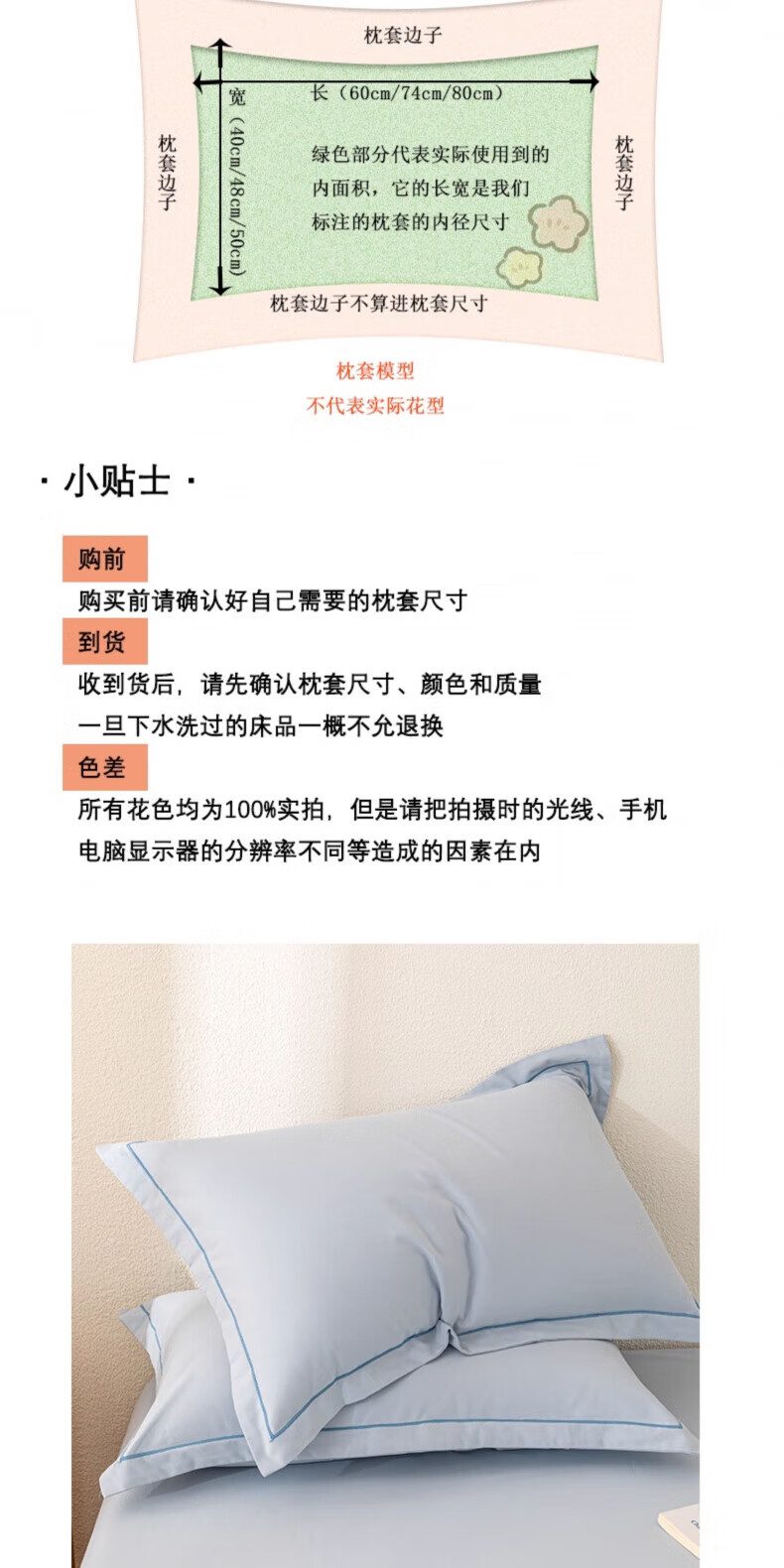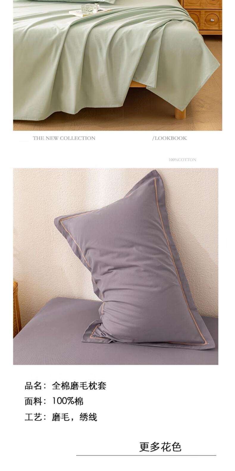 DEATKN德国枕头套2025新款棉全棉单个48cmx74cm大号50cmx80cm枕套一对装 薄荷绿【装】加厚全棉磨毛枕套 1支 48cmX74cm