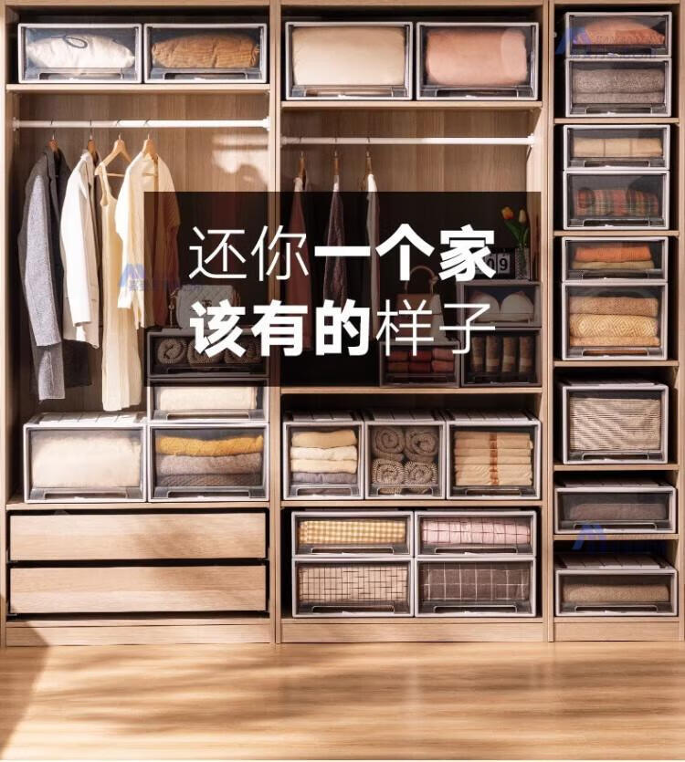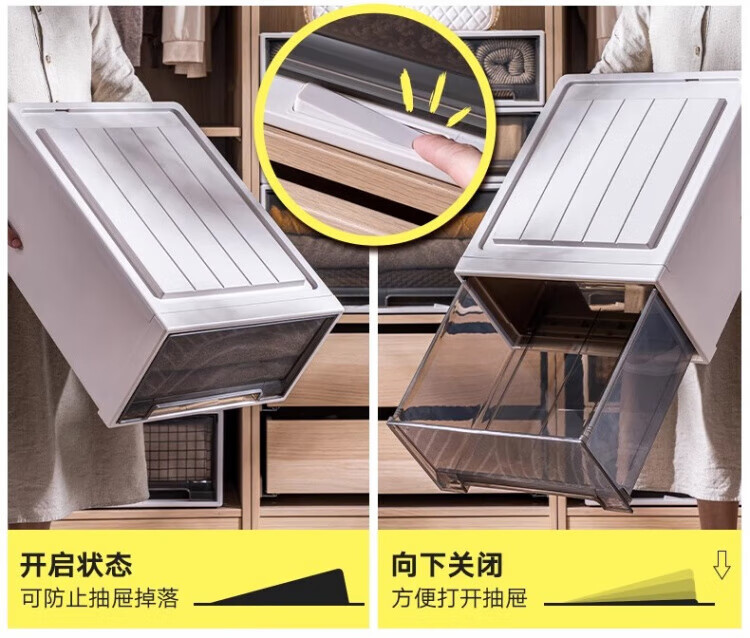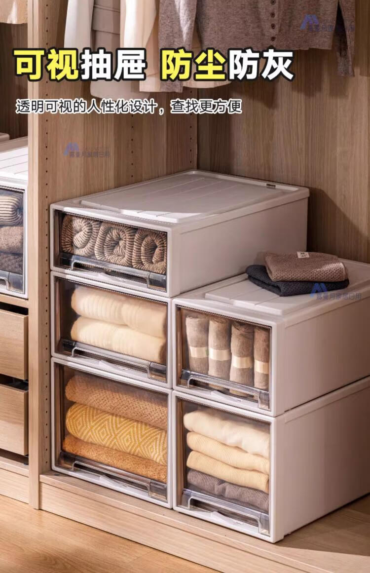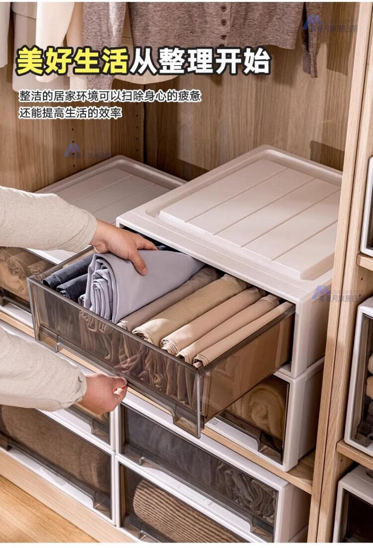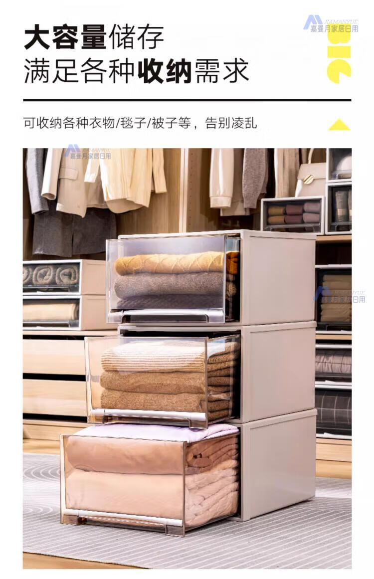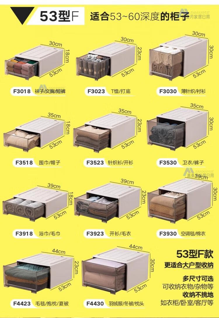 DEATKN德国收纳箱抽屉式衣服整理盒透明塑料衣物储物箱衣柜分层神器收纳 F4423[深] 53*44*23cm
