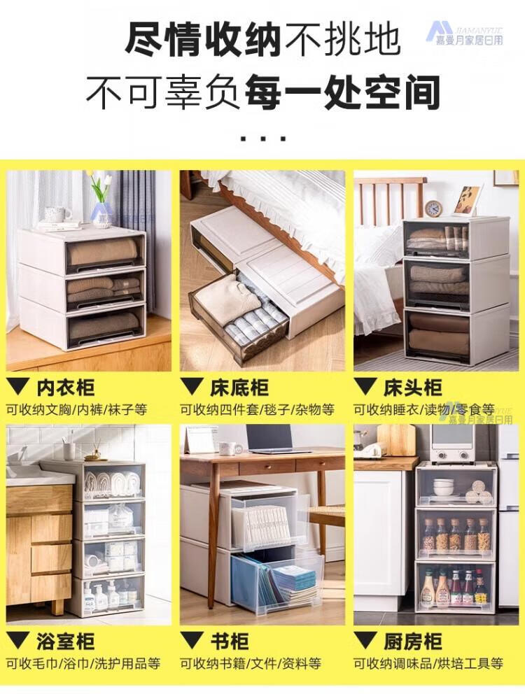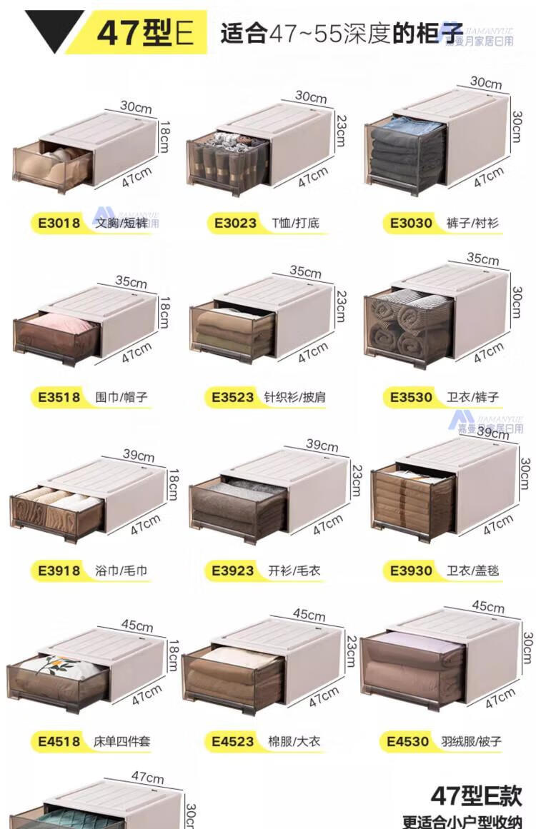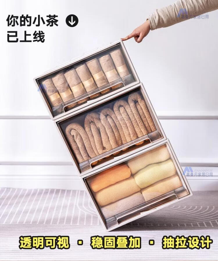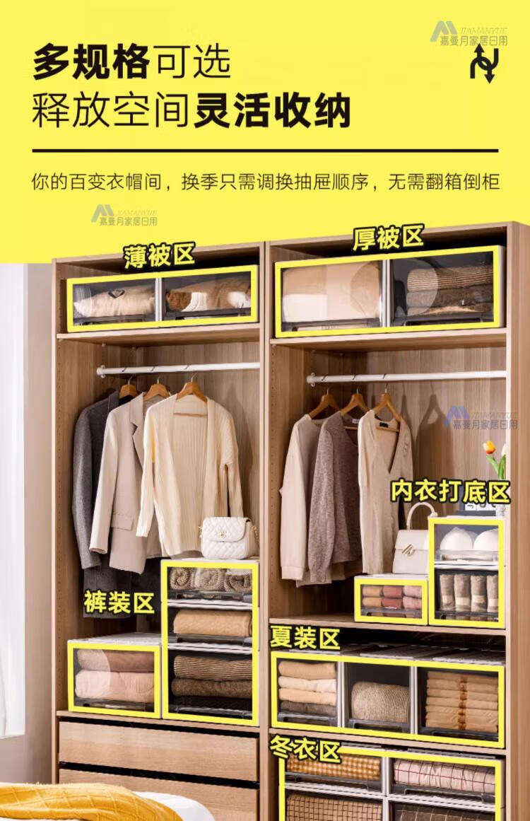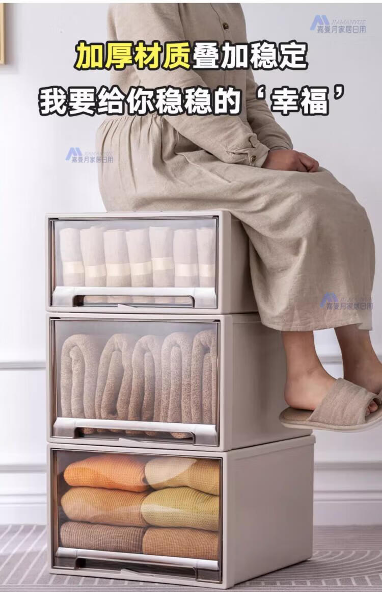 DEATKN德国收纳箱抽屉式衣服整理盒透明塑料衣物储物箱衣柜分层神器收纳 F4423[深] 53*44*23cm